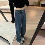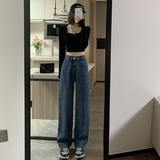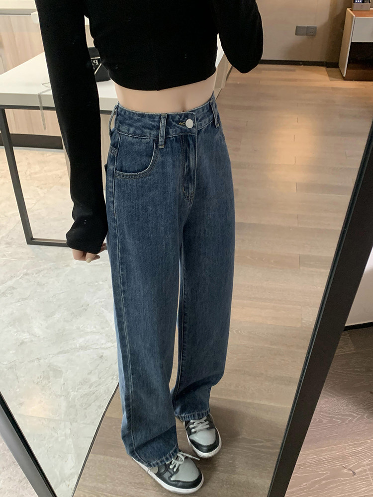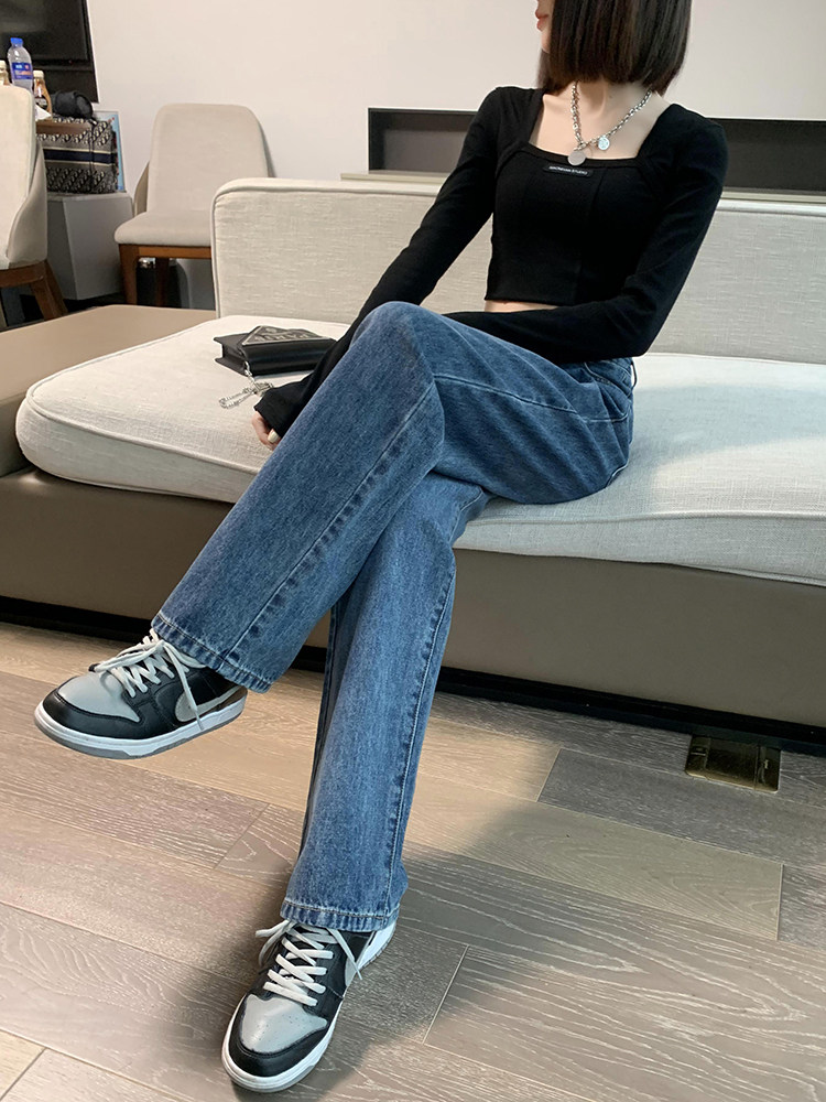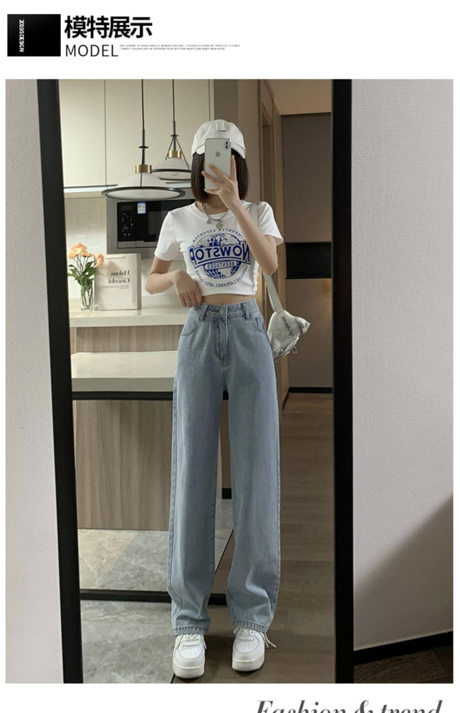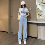 Весенние джинсы, штаны, высокая талия, свободный прямой крой