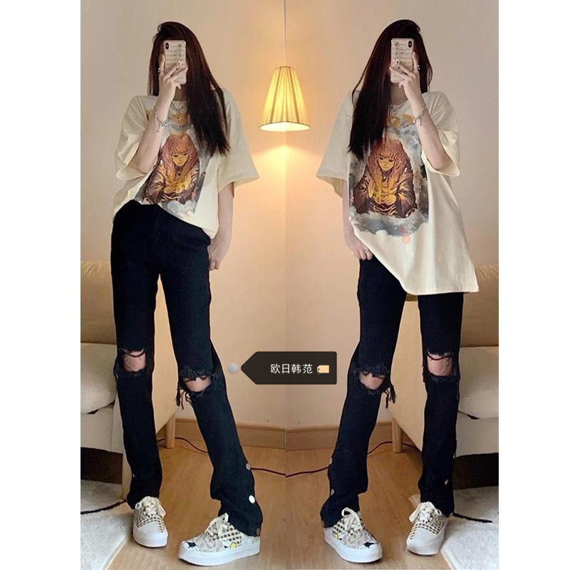 Джинсы, летние штаны, подходит для полных девушек, большой размер, высокая талия, свободный прямой крой