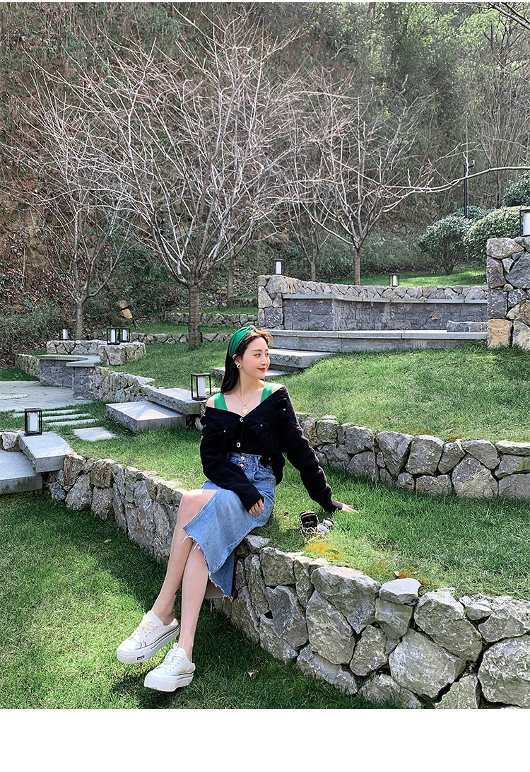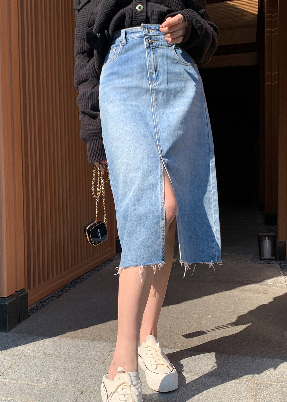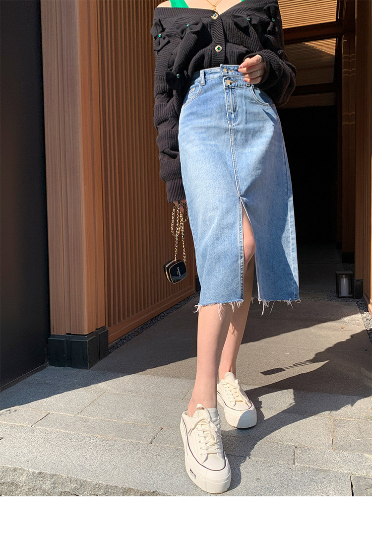 烈儿 Модная джинсовая джинсовая юбка, по фигуре