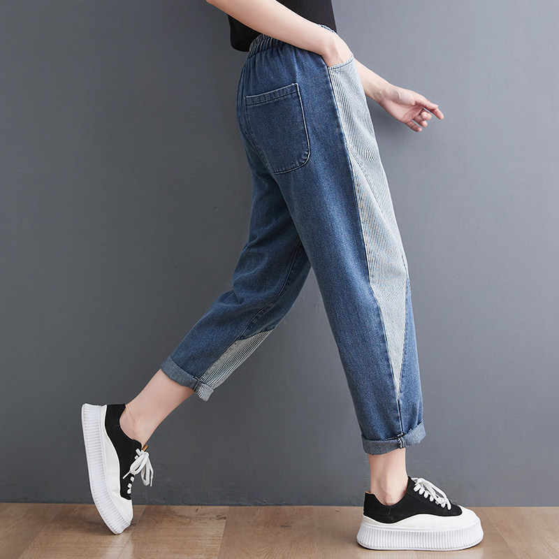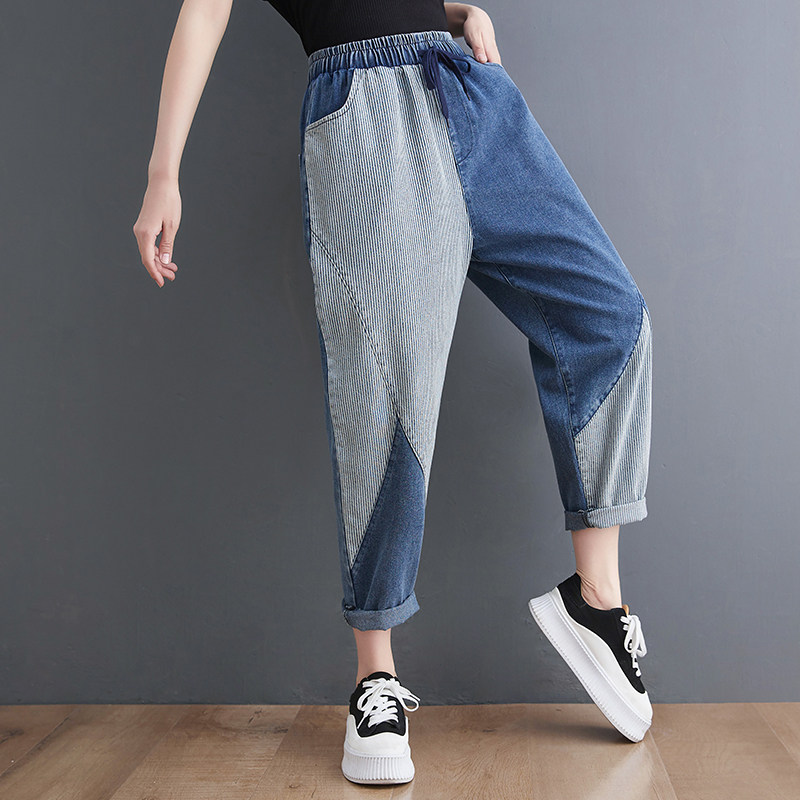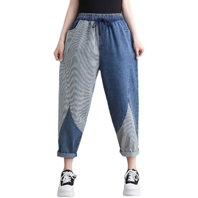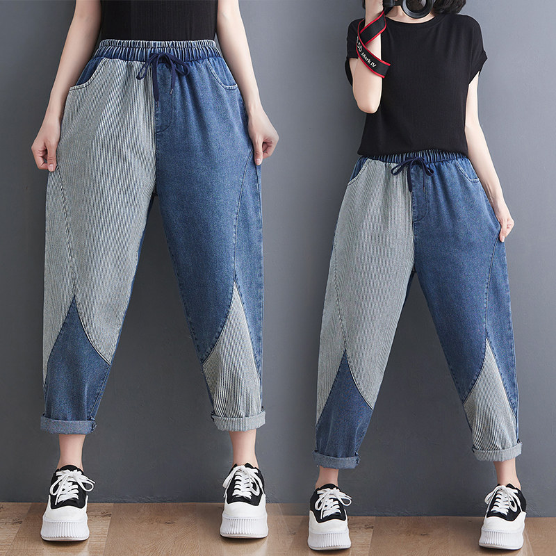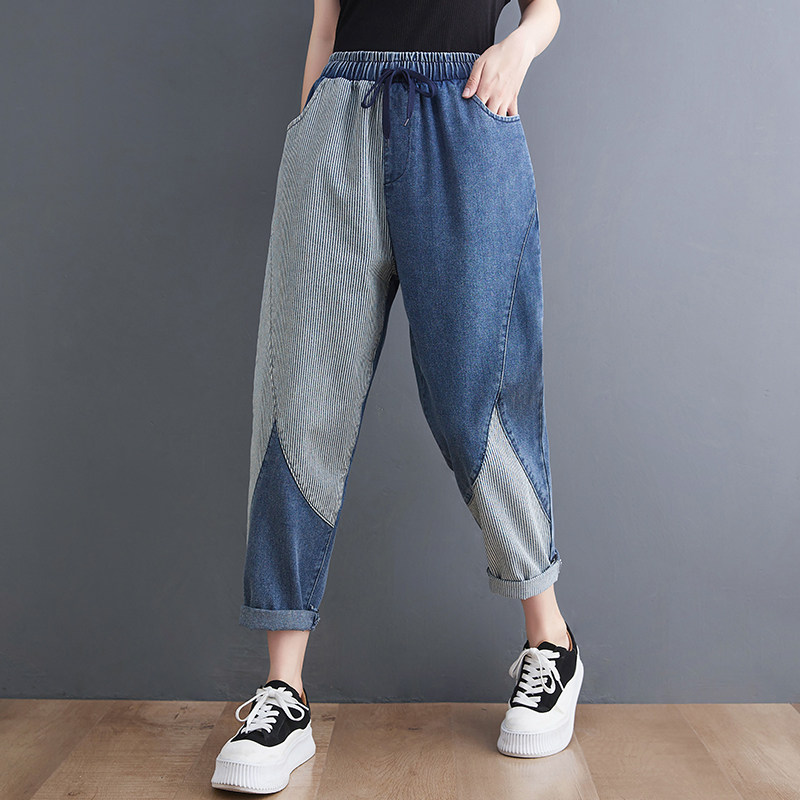Летние джинсы, штаны, свободный крой, по фигуре, эластичная талия, на шнурках