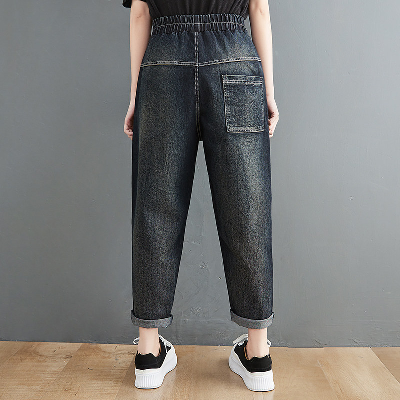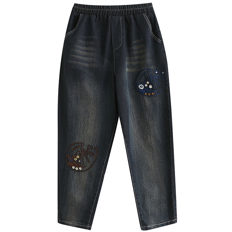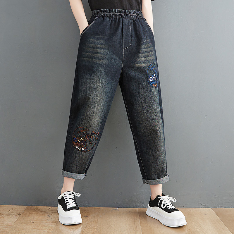 Летняя летняя одежда, джинсы, штаны, большой размер, в корейском стиле, с вышивкой, эластичная талия