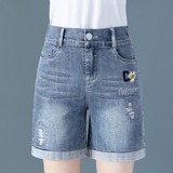 Летняя джинсовая юбка, шорты, приталенные штаны, пирсинг, в корейском стиле, высокая талия, с вышивкой