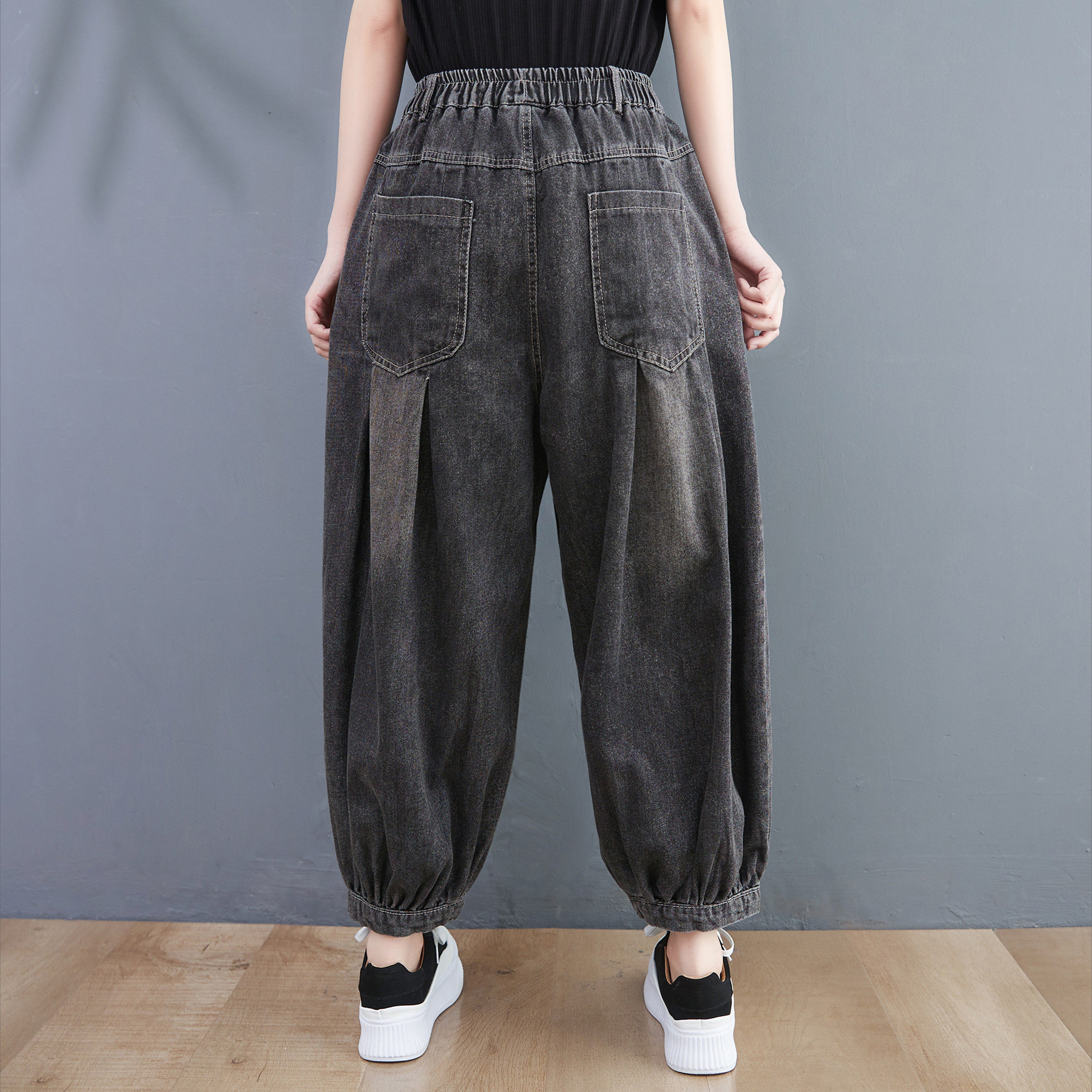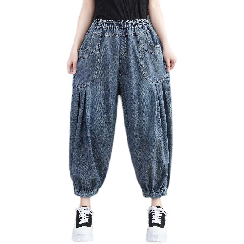 Весенние летние джинсы-шаровары, штаны, приталенная лампа для продуктов, фонарь, оверсайз, эластичная талия