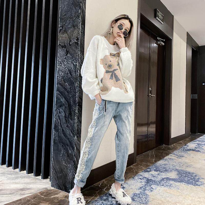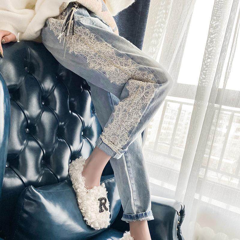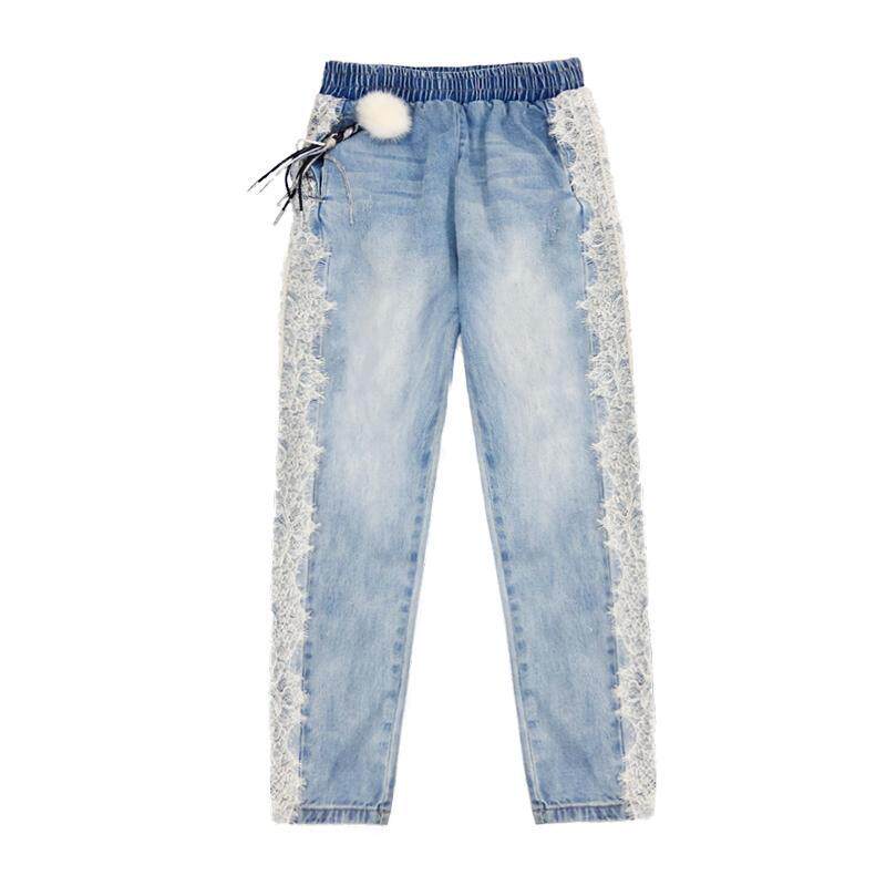 Джинсы, летние кружевные штаны, высокая талия, европейский стиль, свободный крой