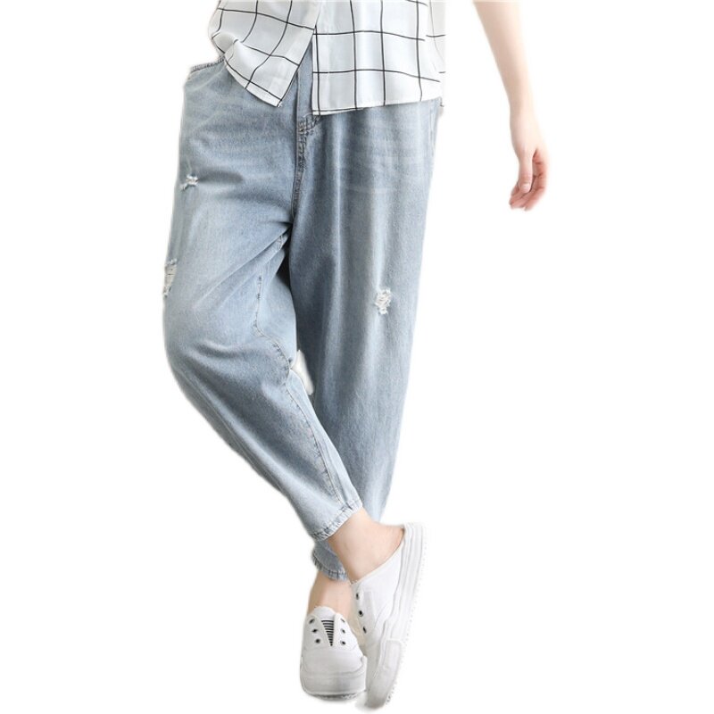 Джинсы, штаны для отдыха, большой размер, свободный крой, по фигуре
