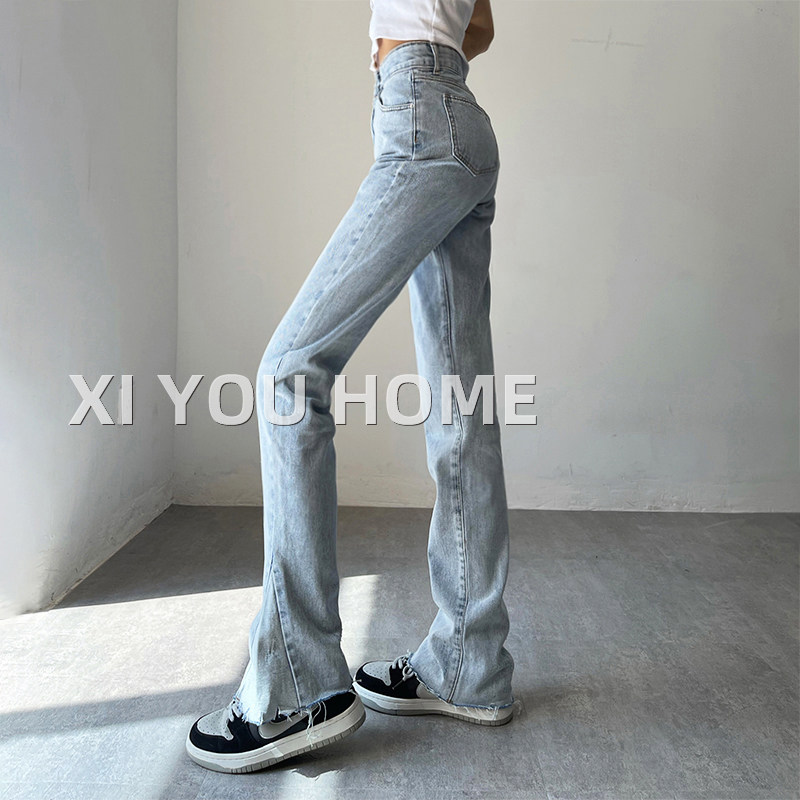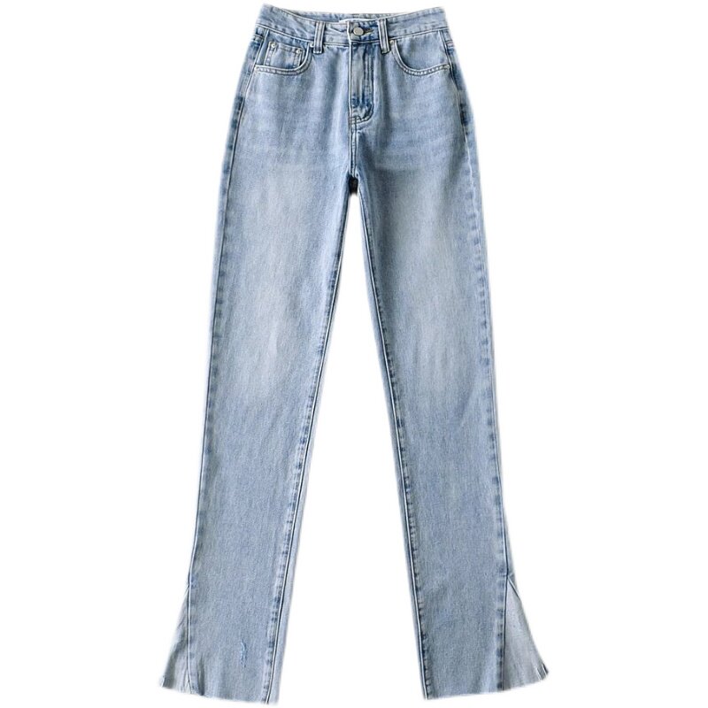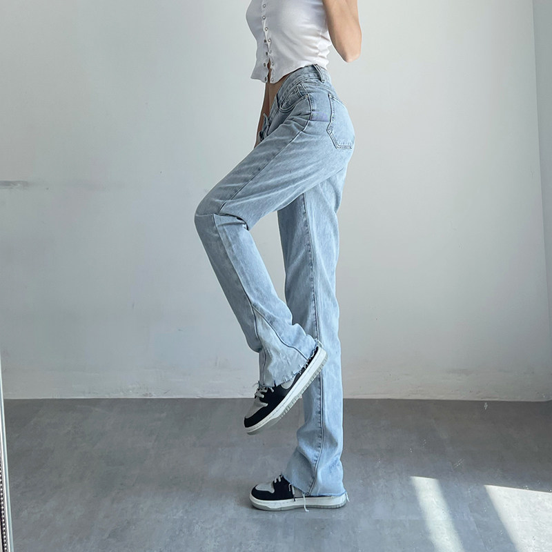 Дизайнерский мегафон, джинсы, приталенные универсальные штаны, тренд сезона, высокая талия, свободный прямой крой