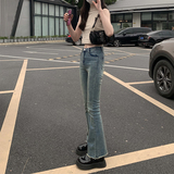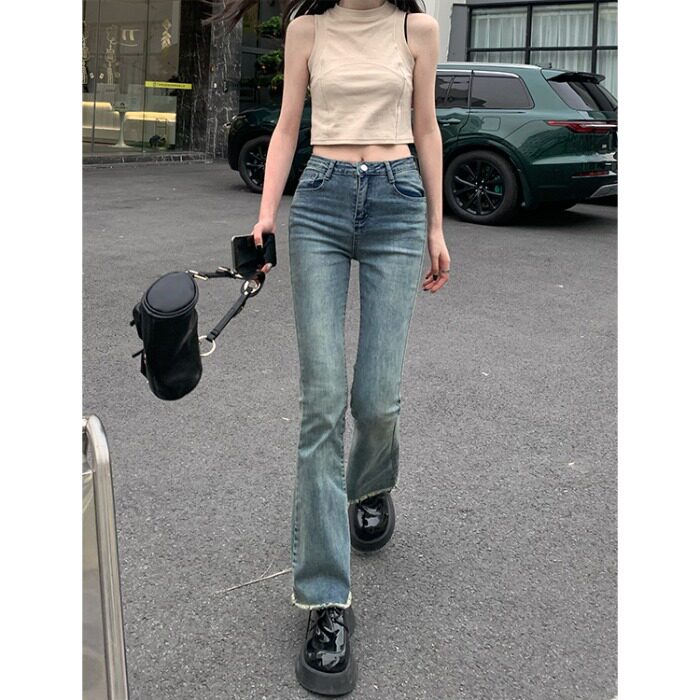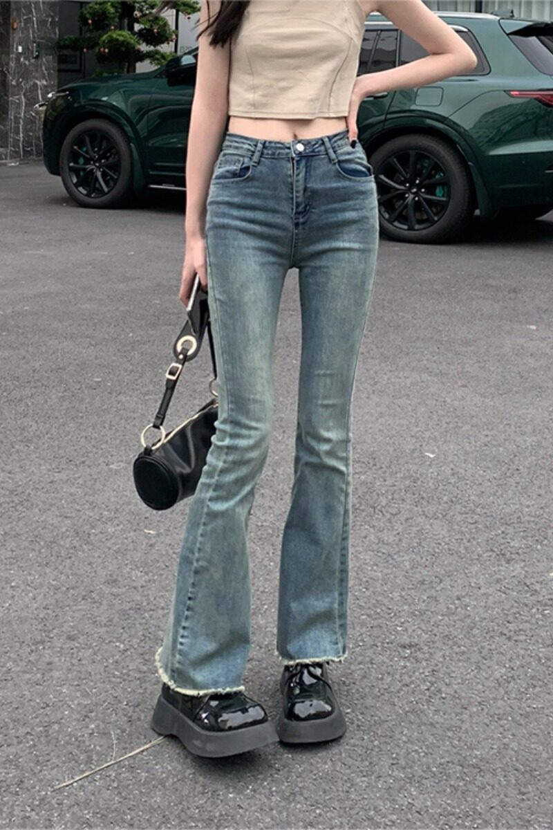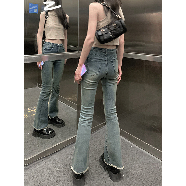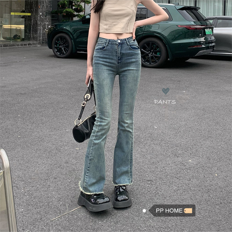 Pphome носить длинные ноги ~ Горячая девушка ретро важно, чтобы сделать старые края волос, подирающие тонкие микроэлементы джинсы