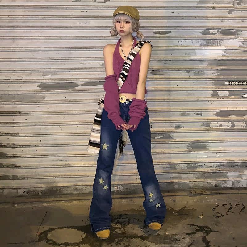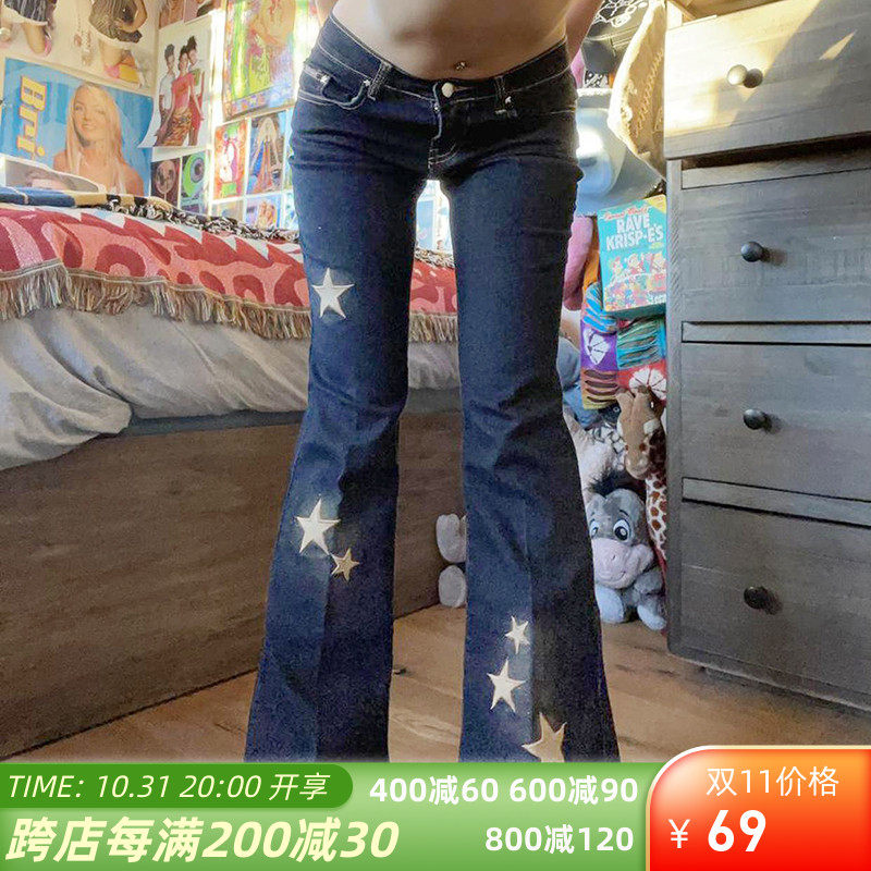 Rockmore Supermodel Leg Girl Pentagram Printing Sluender Flinks Model сделает старую атмосферу с низким джинсовым брюками.