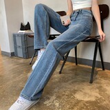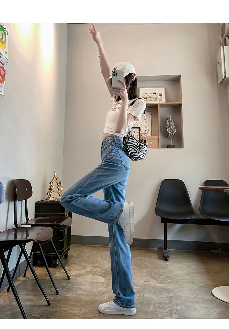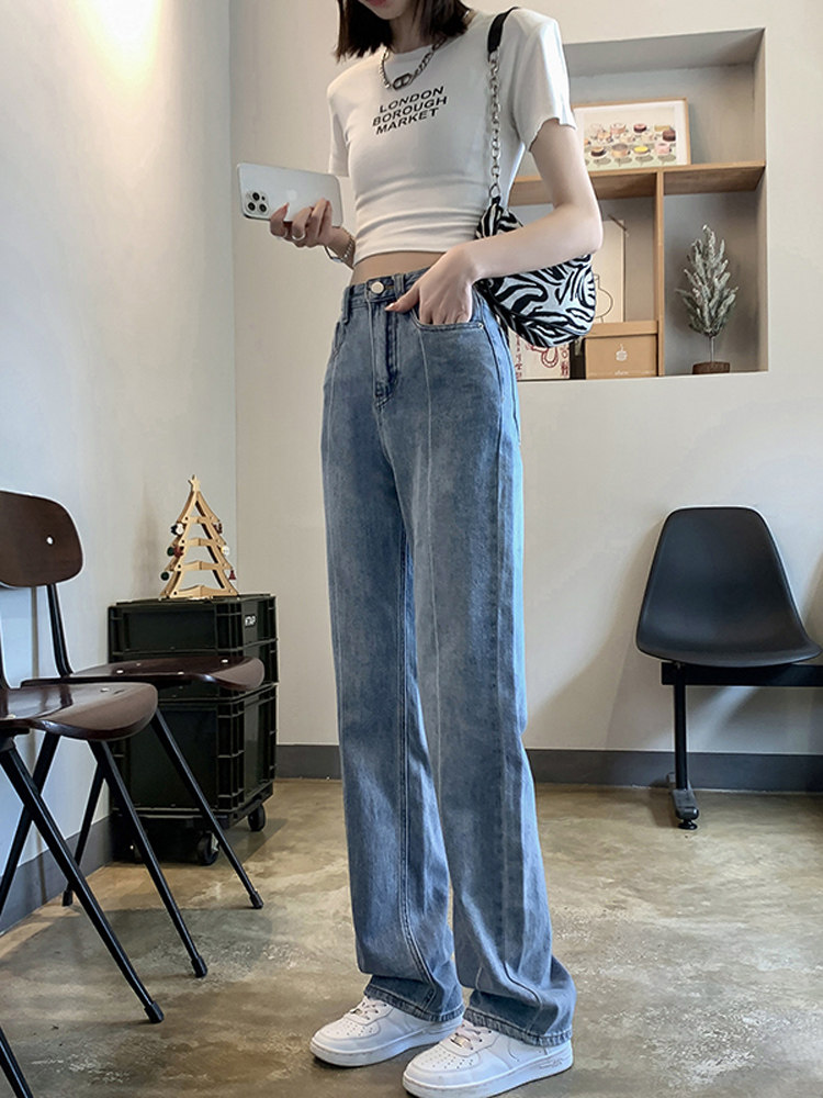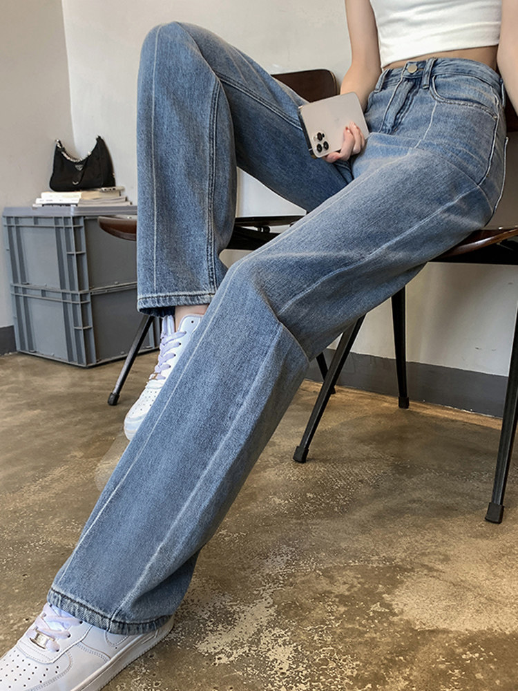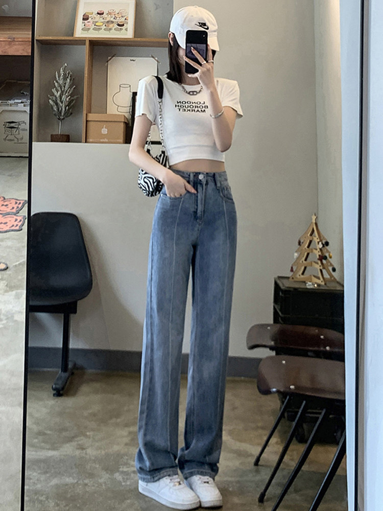 Тонкие джинсы, приталенные штаны, 2024 года, высокая талия, свободный прямой крой