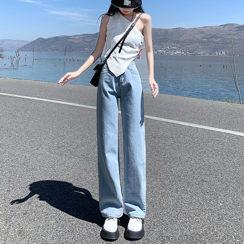 Весенние прямые свободные джинсы, летние светлые штаны, высокая талия, коллекция 2022, подходит для подростков, свободный крой