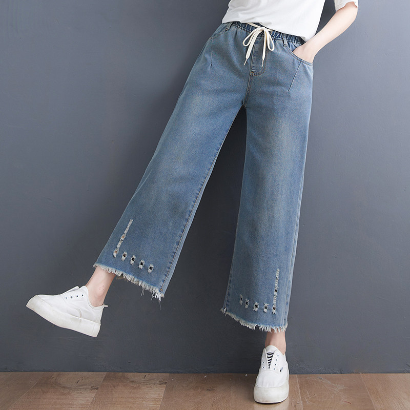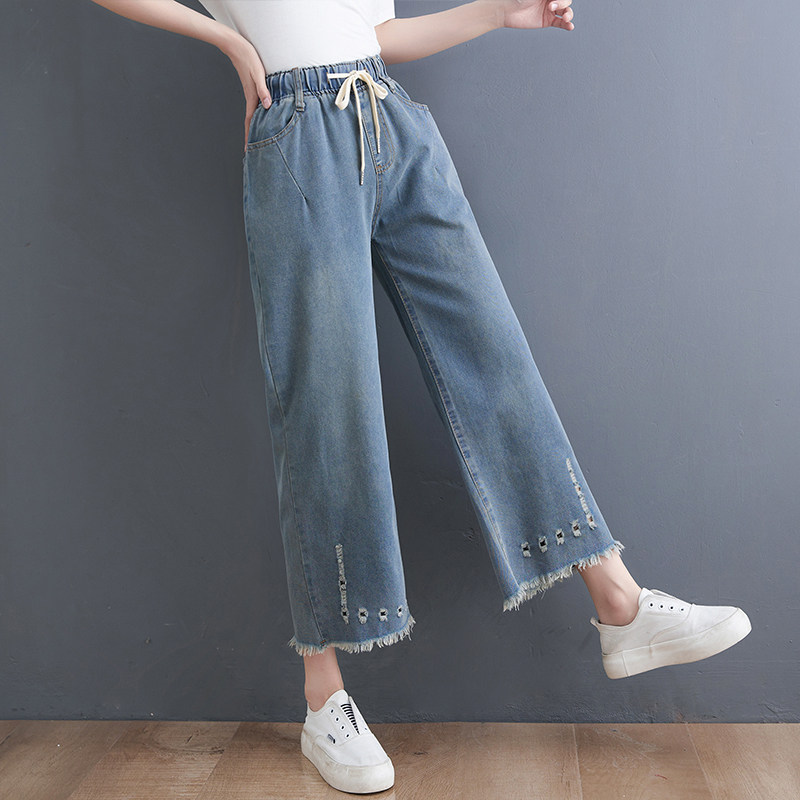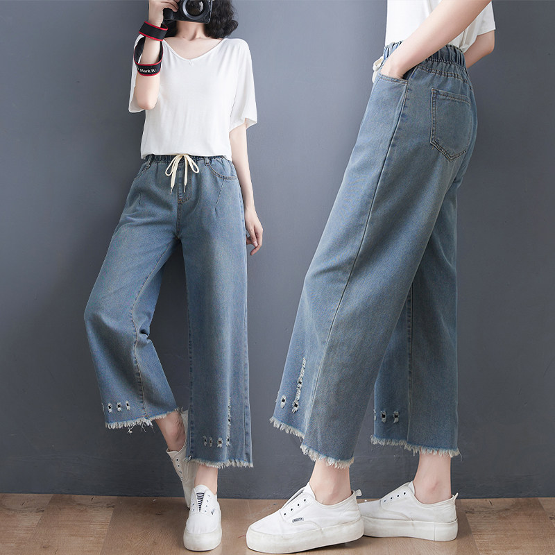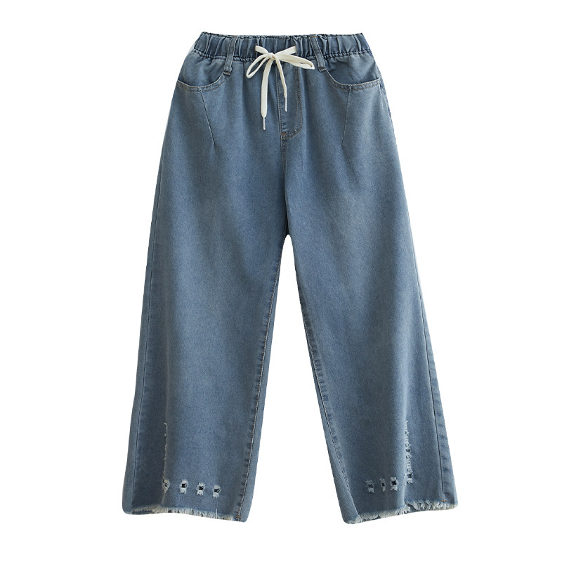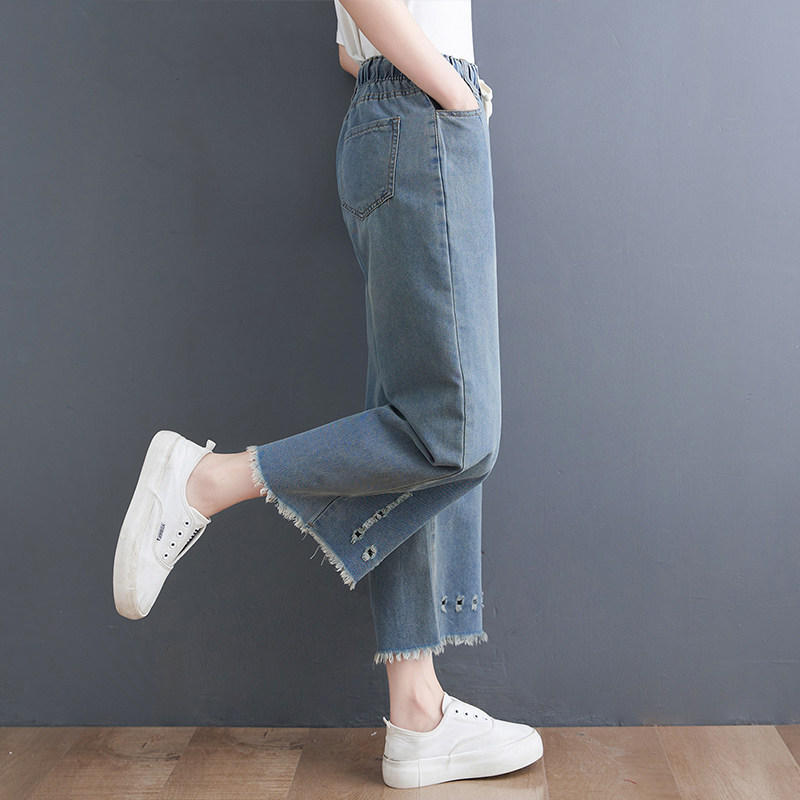 Летние джинсы, штаны, в корейском стиле, большой размер, эластичная талия, свободный прямой крой