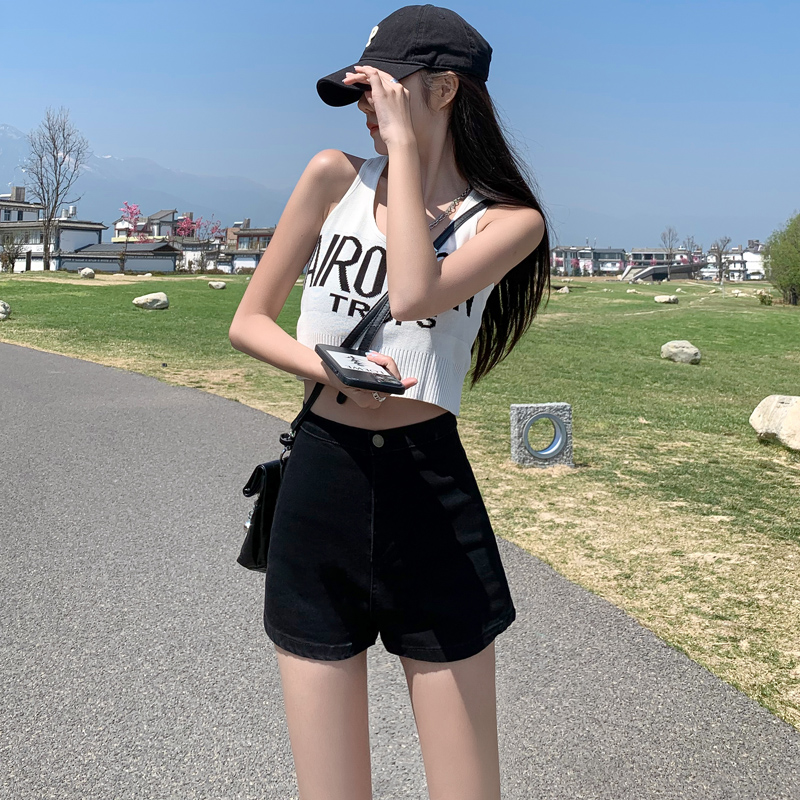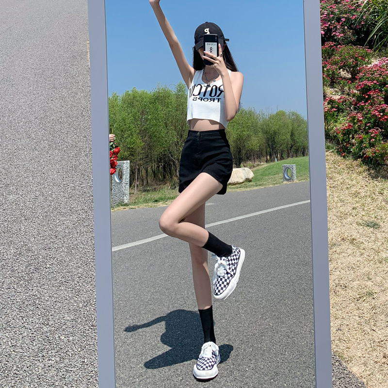 Черная джинсовая юбка, шорты, летние эластичные штаны, в обтяжку, высокая талия, большой размер, А-силуэт, облегающий крой