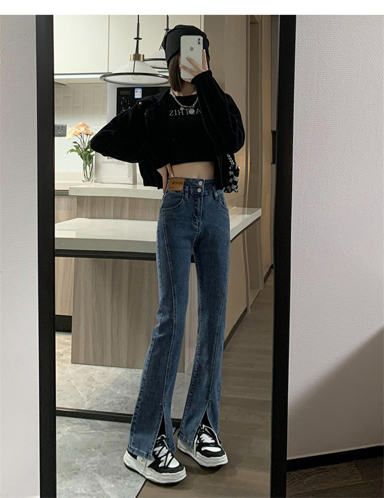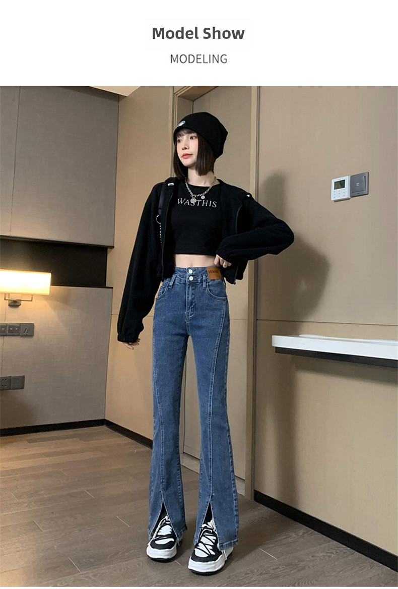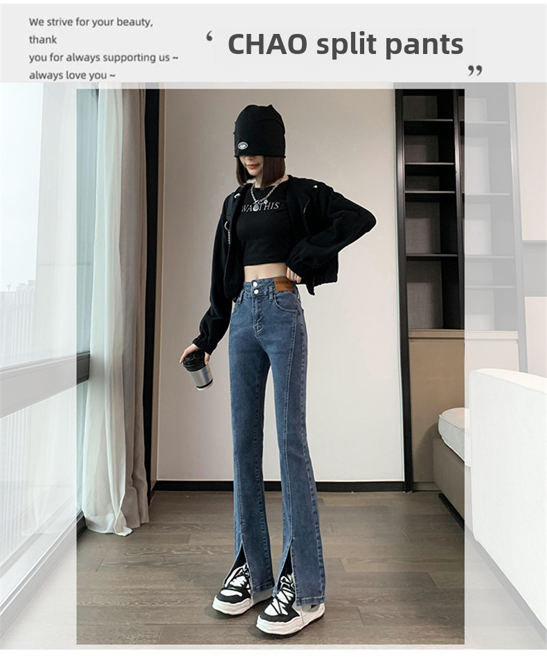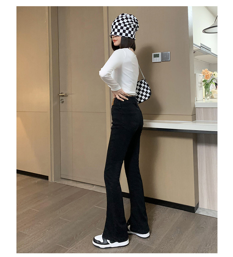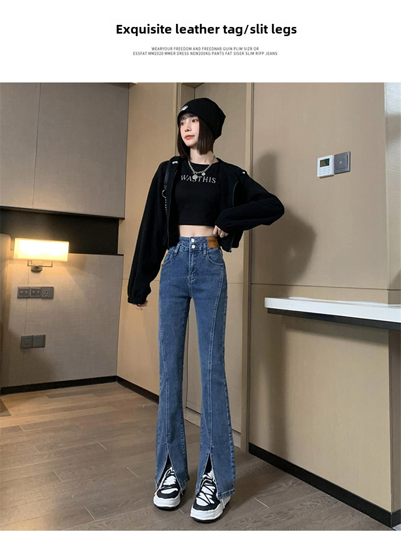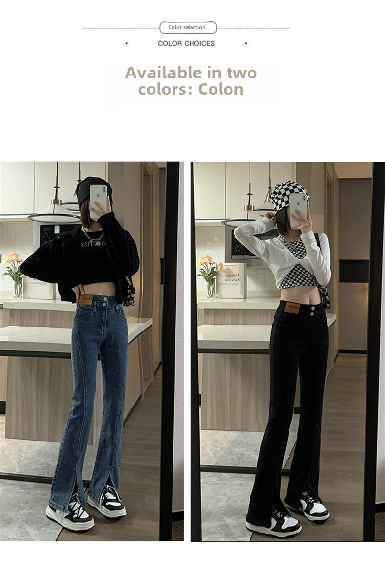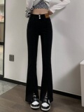 Черные джинсовые осенние джинсы, штаны, штаны-клёш, 2025 года, новая коллекция, высокая талия, в обтяжку, по фигуре