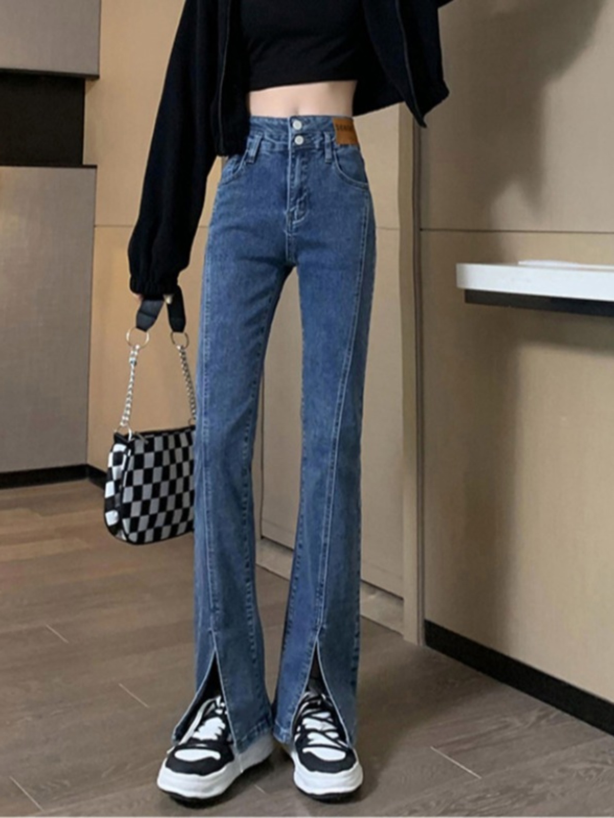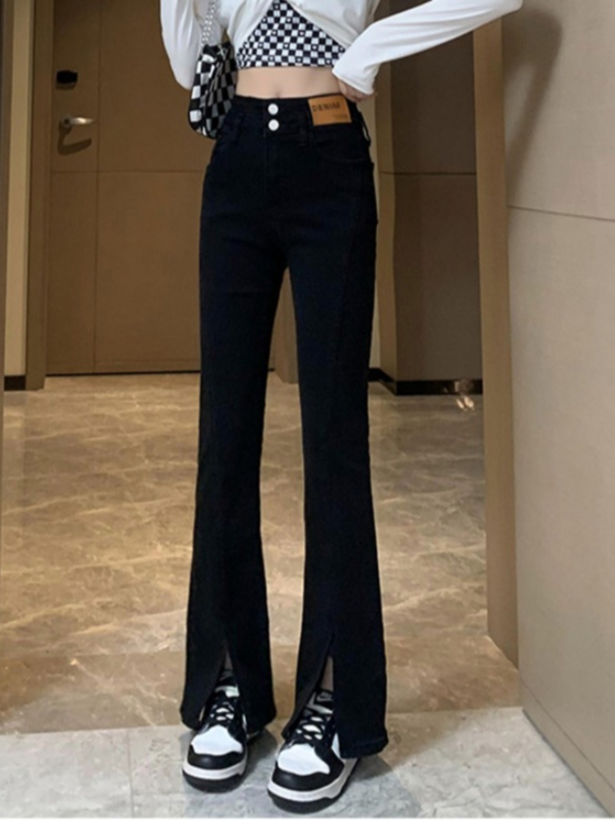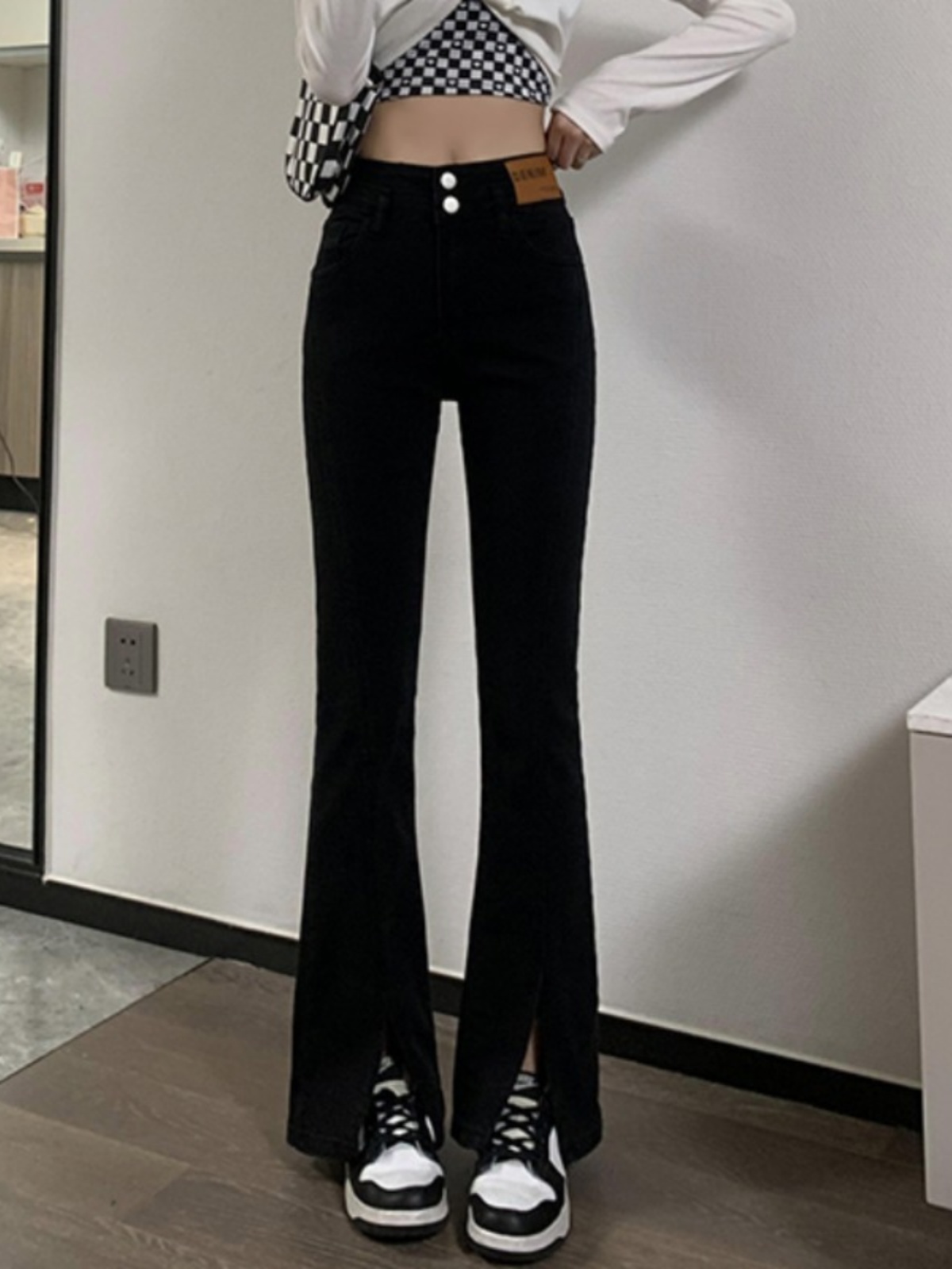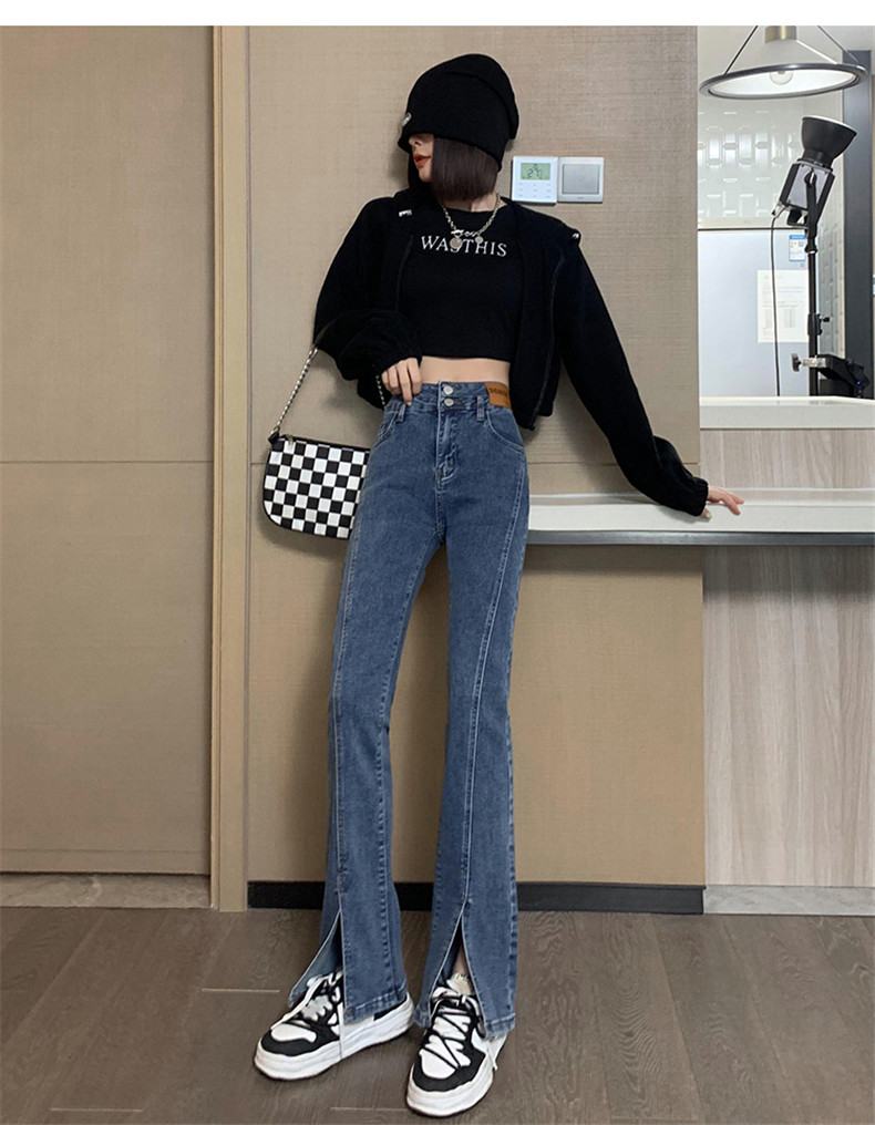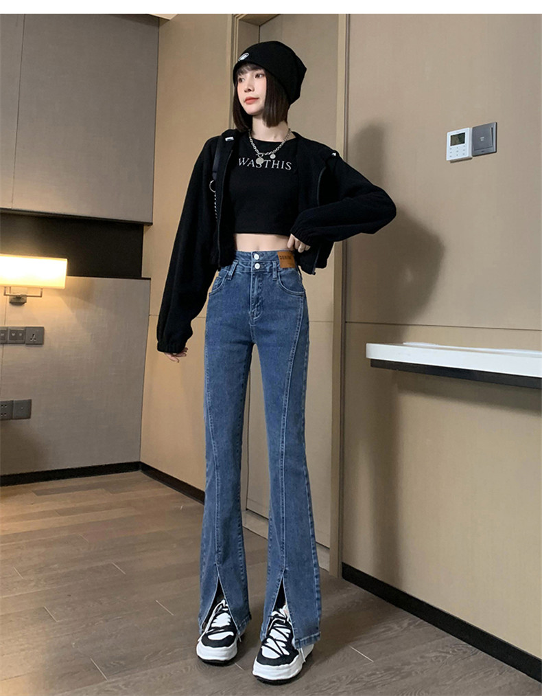 Черные джинсовые осенние джинсы, штаны, штаны-клёш, 2025 года, новая коллекция, высокая талия, в обтяжку, по фигуре