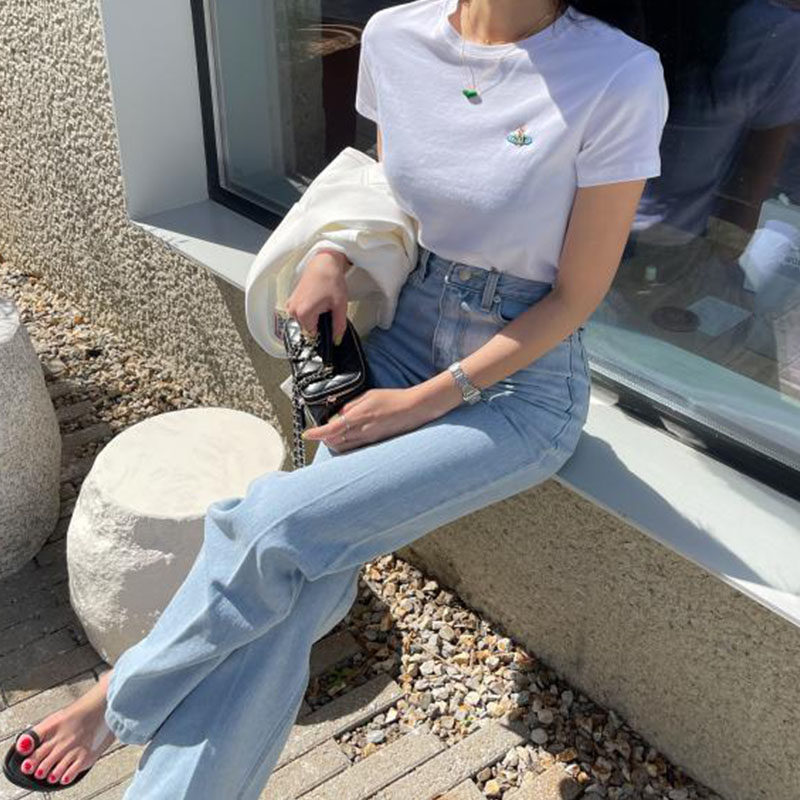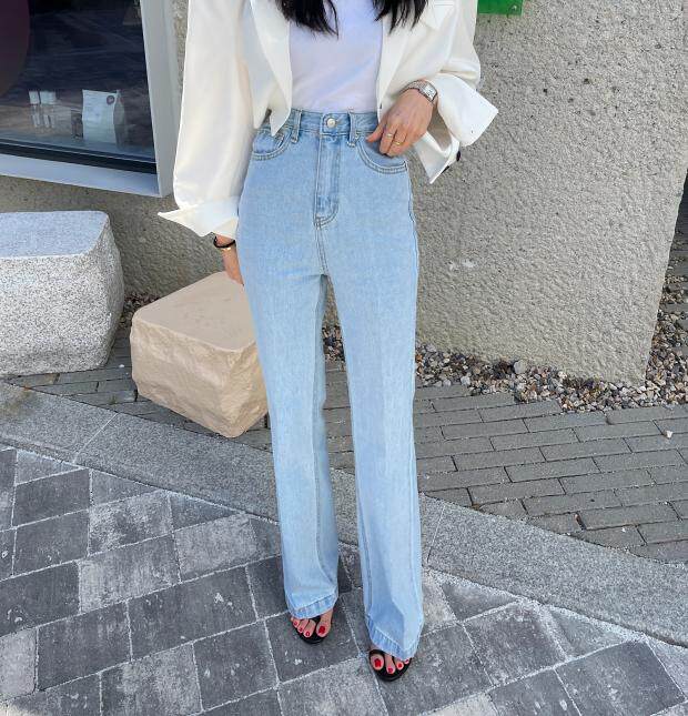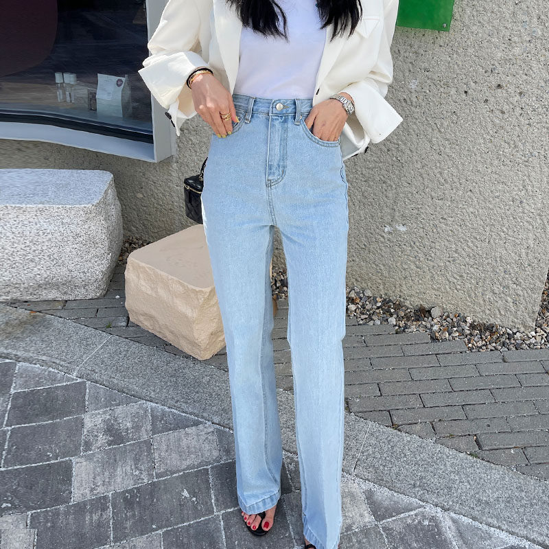 Летние приталенные дизайнерские прямые свободные джинсы, штаны, в корейском стиле, высокая талия, тренд сезона, свободный крой
