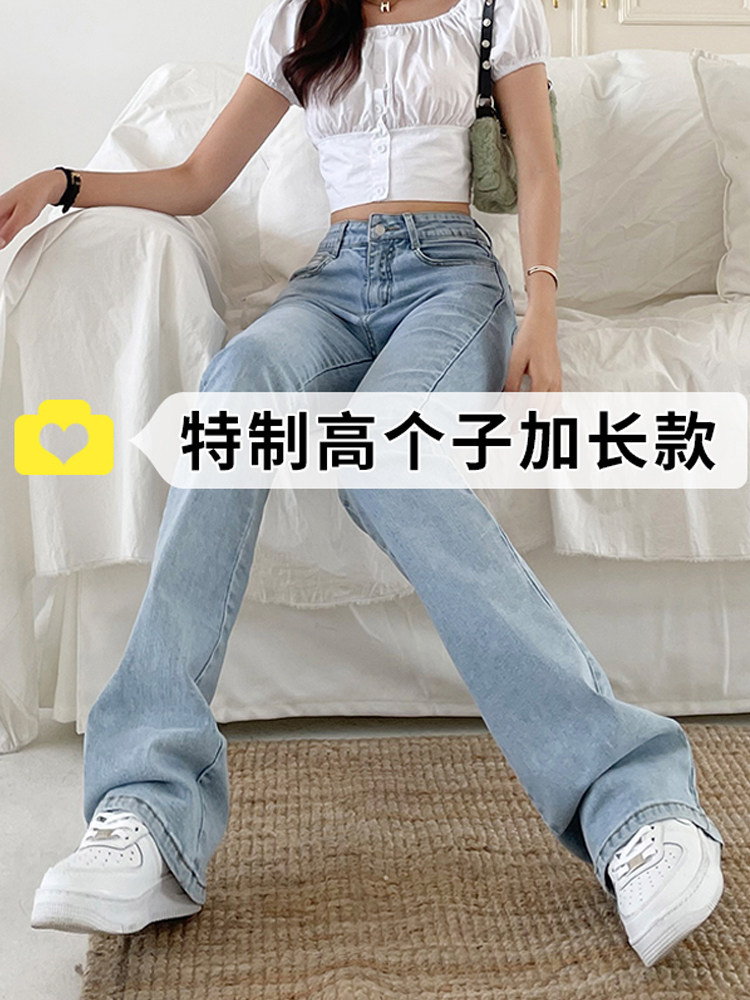 Синие длинные приталенные джинсы, штаны, сверхдлинные штаны-клёш