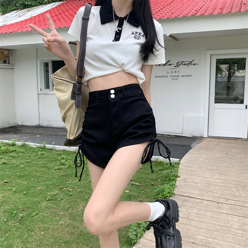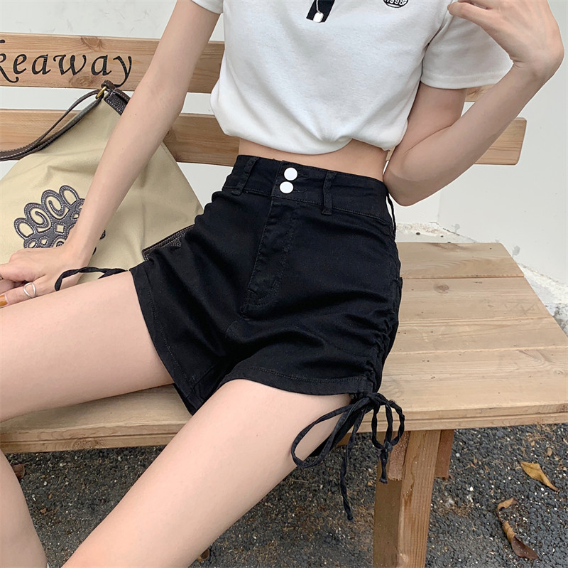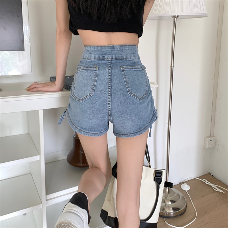 Джинсовая юбка, летние шорты, штаны, дизайнерский ремень, высокая талия, на шнурках, тренд сезона, А-силуэт, с акцентом на бедрах