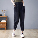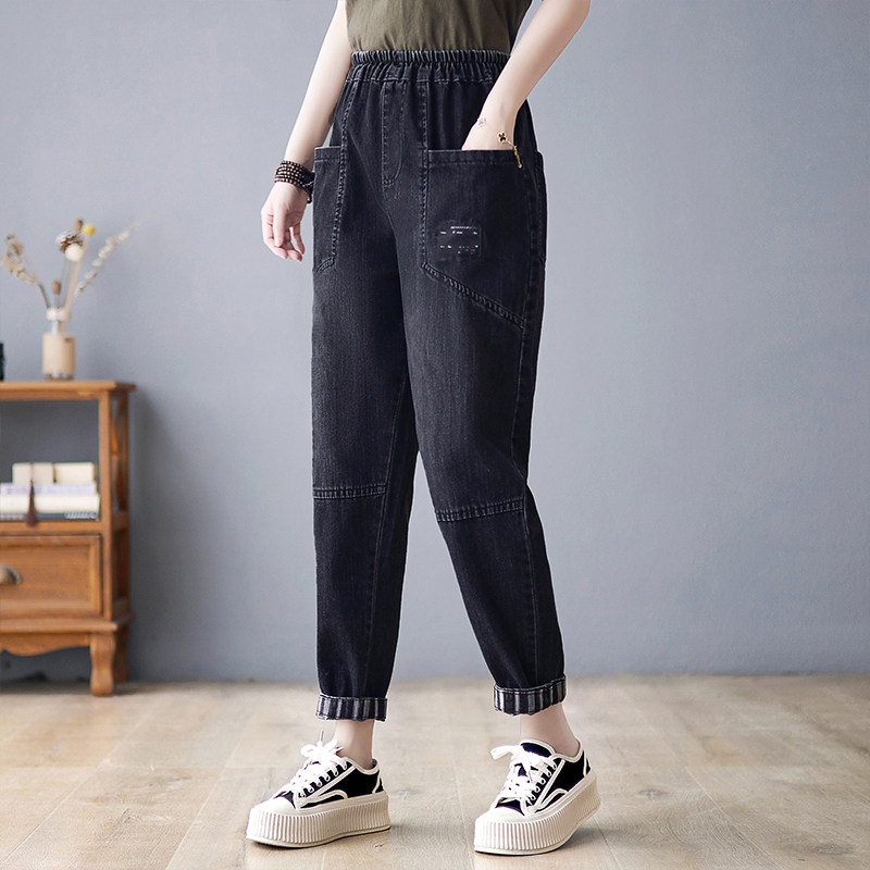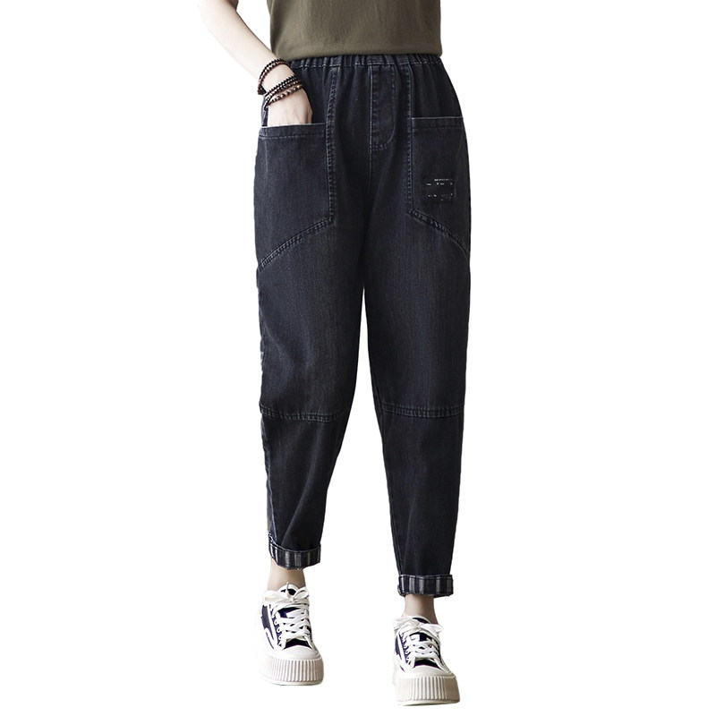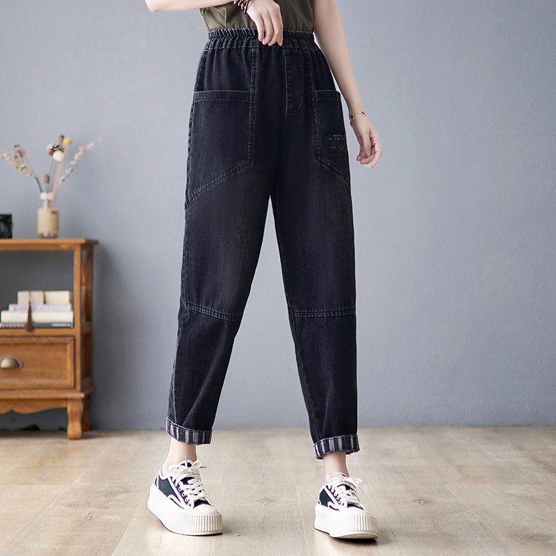 Осенние джинсы, ретро черные штаны для отдыха, коллекция 2023, оверсайз, эластичная талия