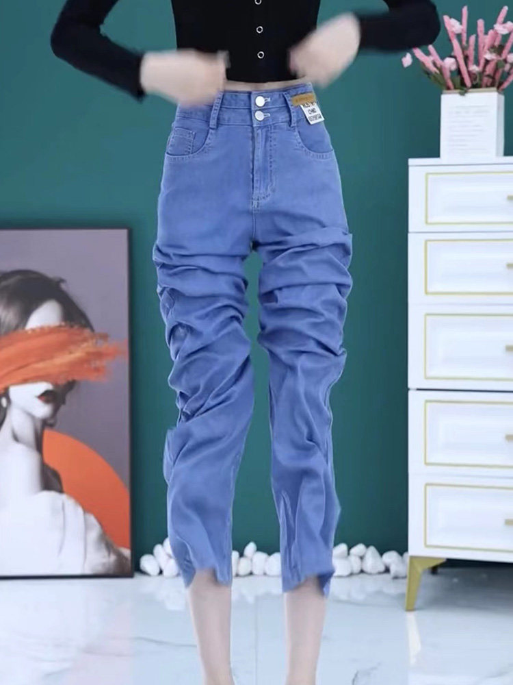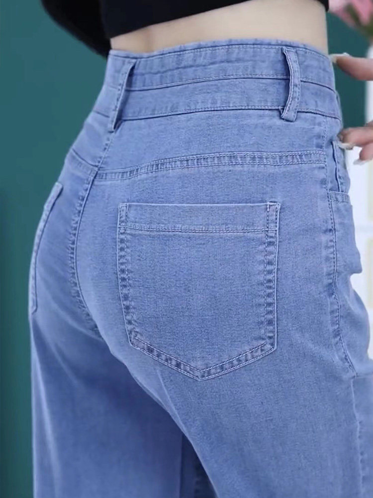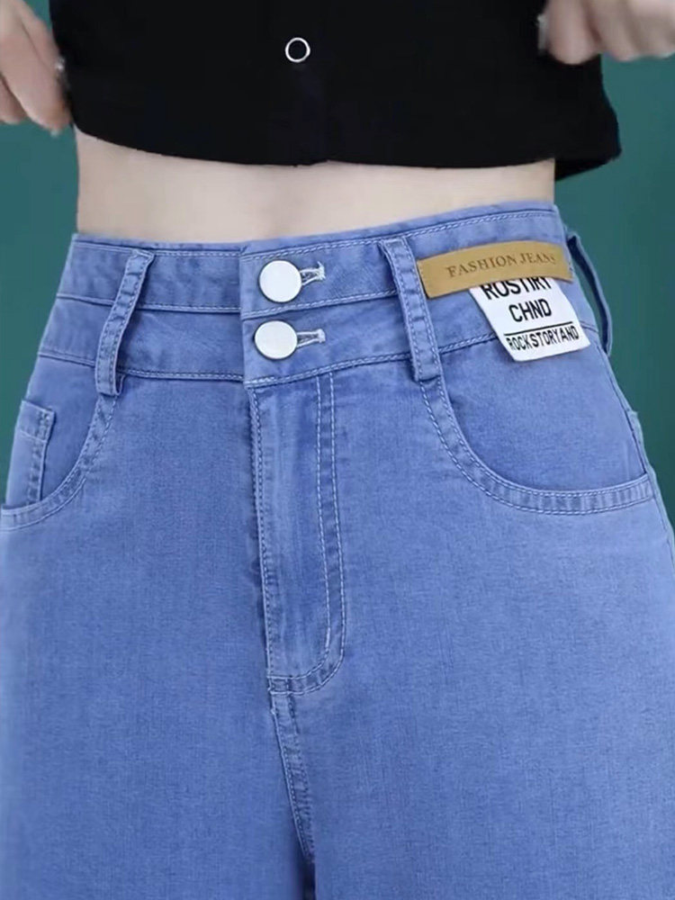 Джинсы, летние шелковые приталенные штаны, свободный крой, высокая талия, стиль