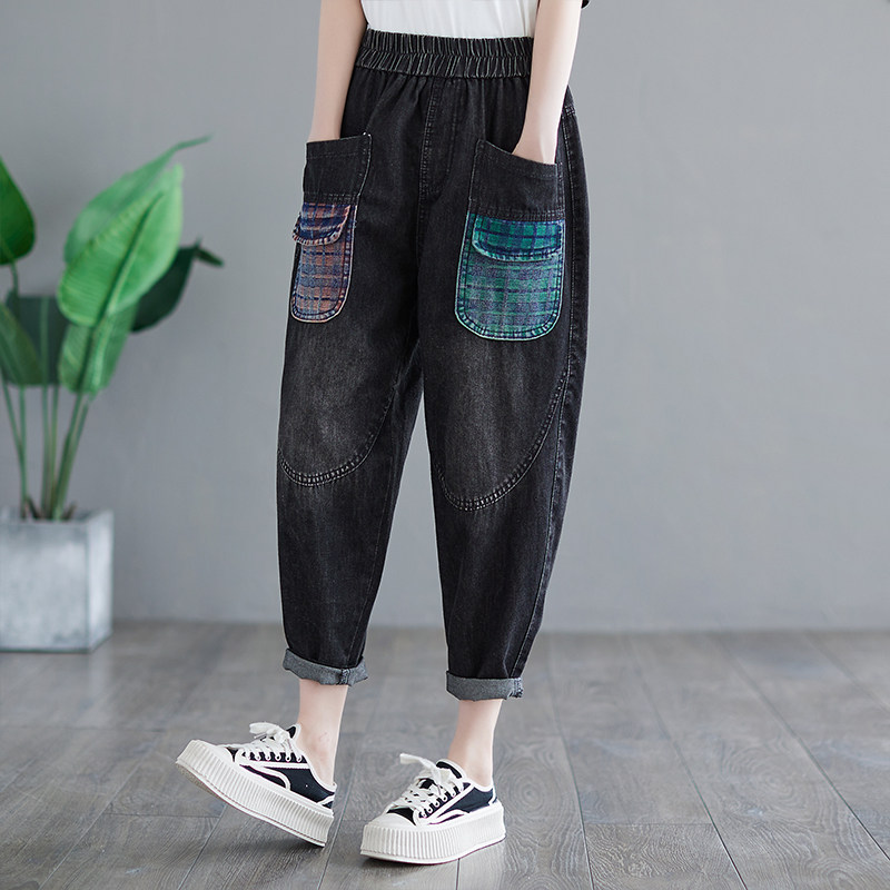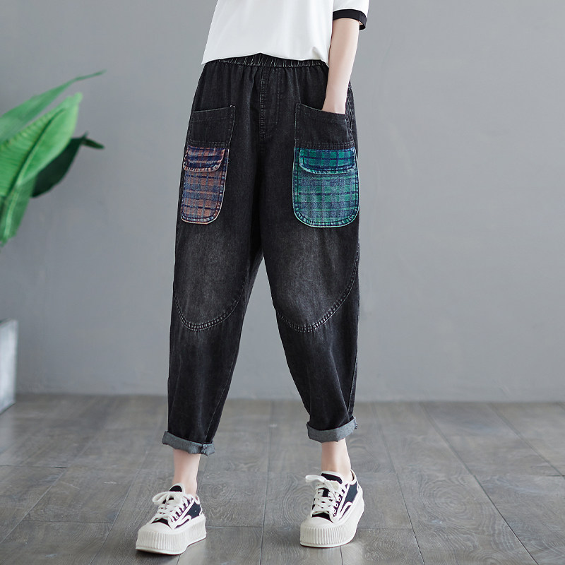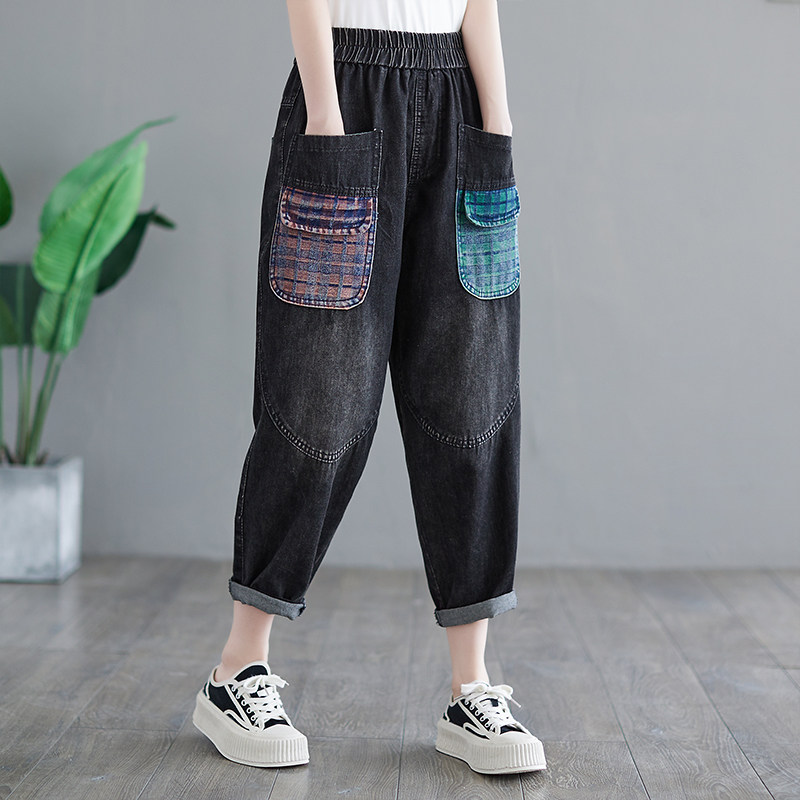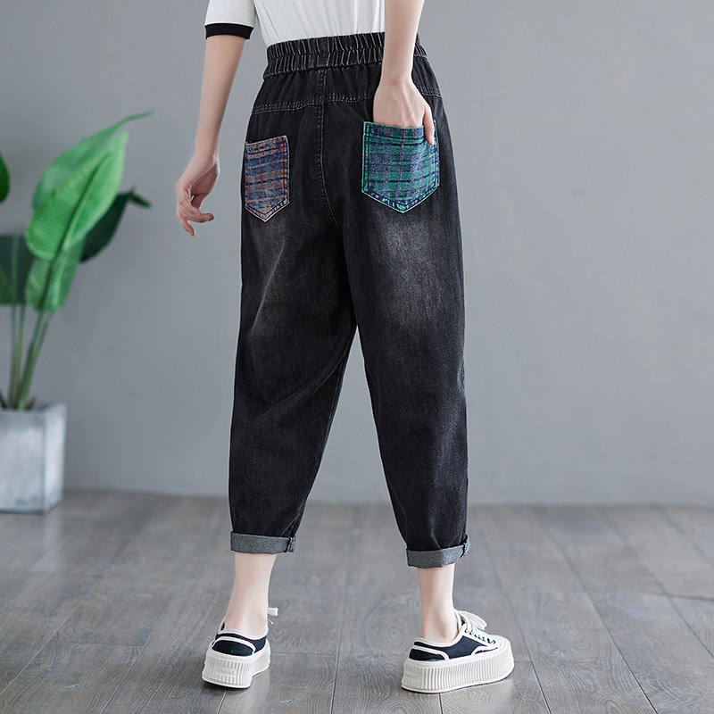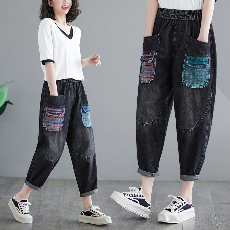 Летние ретро джинсы, приталенные штаны, большой размер, в западном стиле, эластичная талия