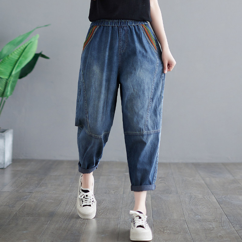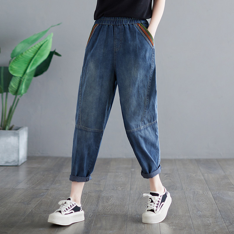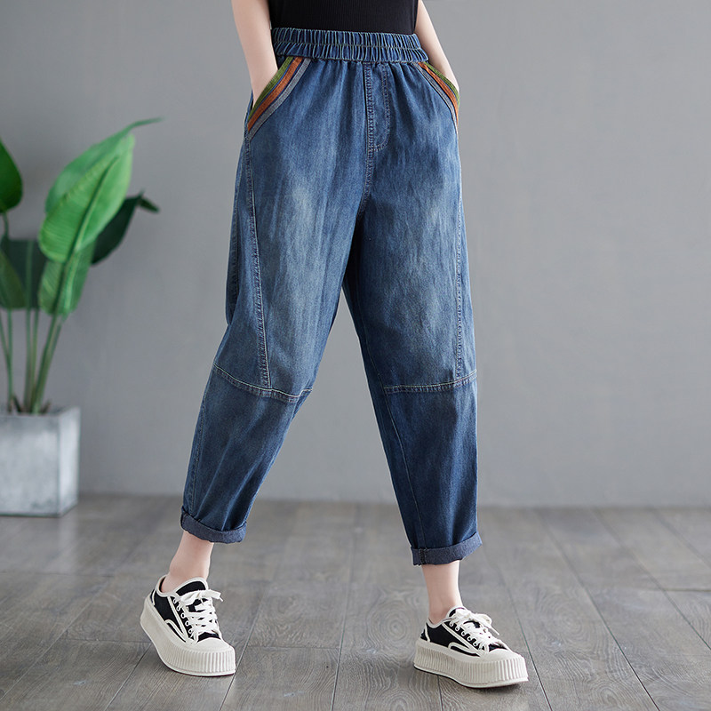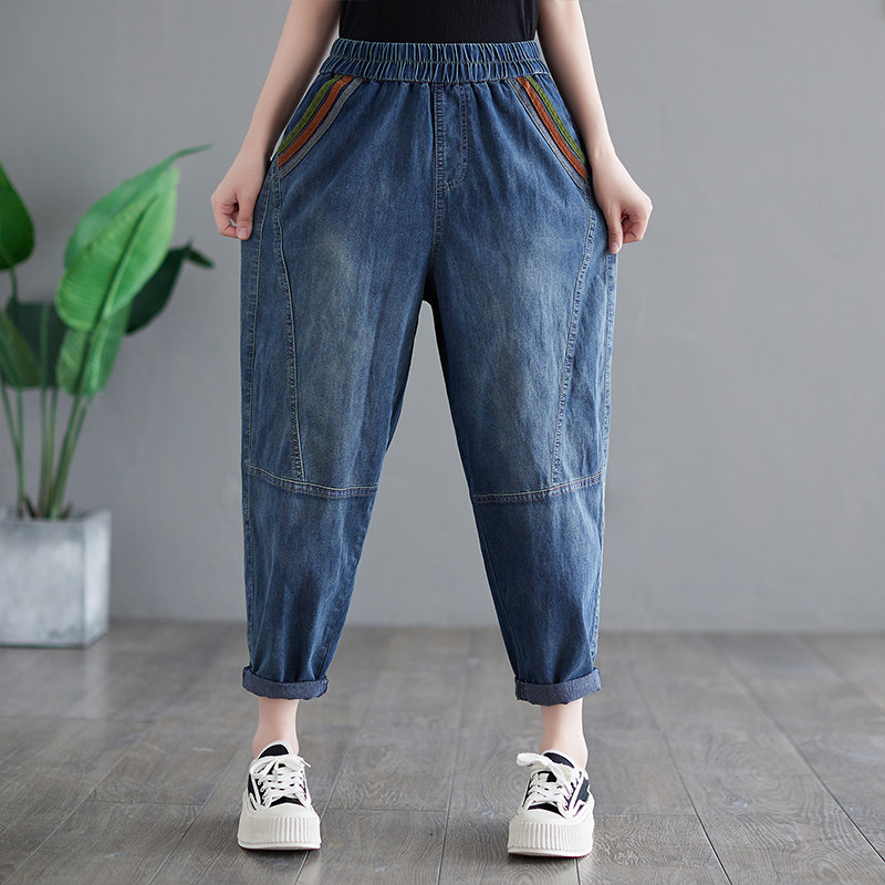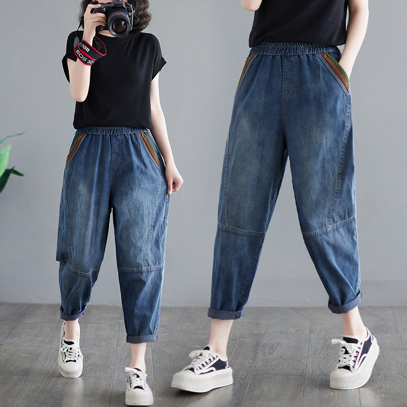 Летние джинсы, штаны, высокая талия, большой размер, свободный крой, по фигуре