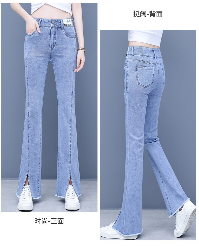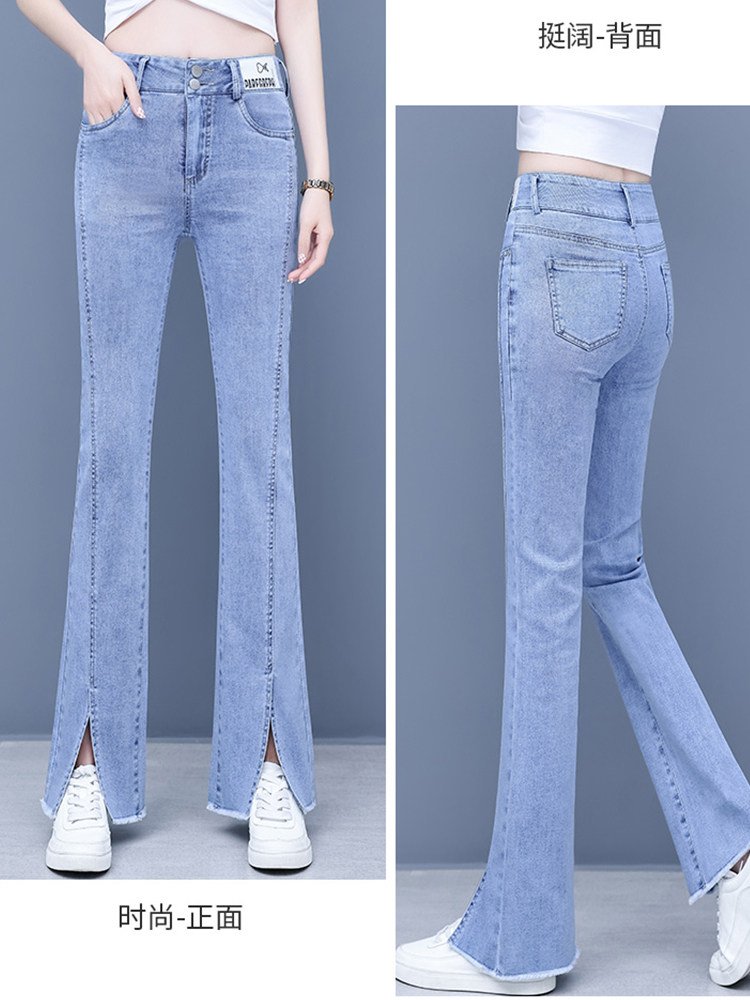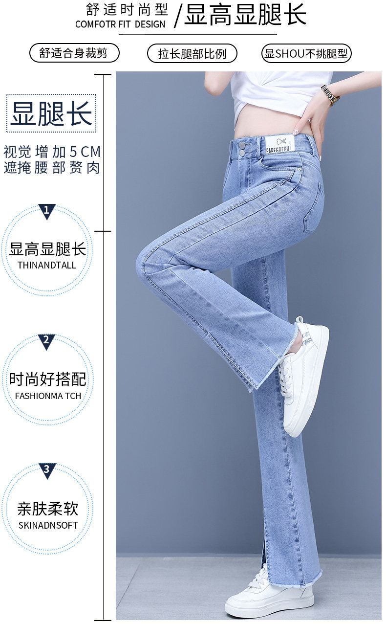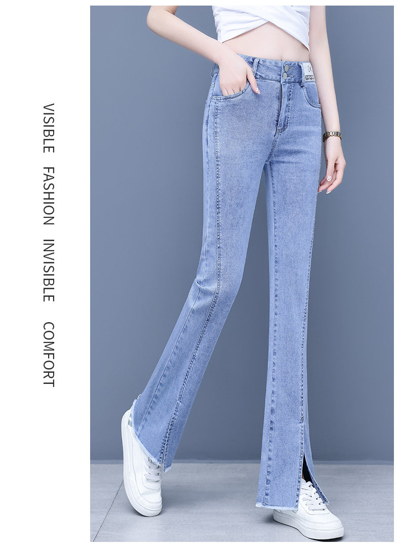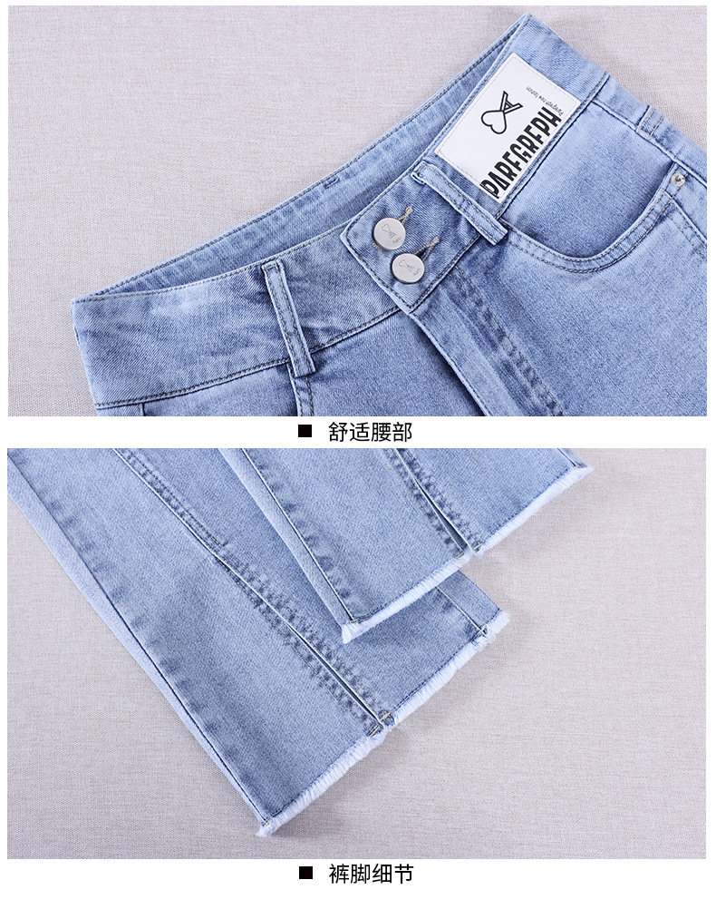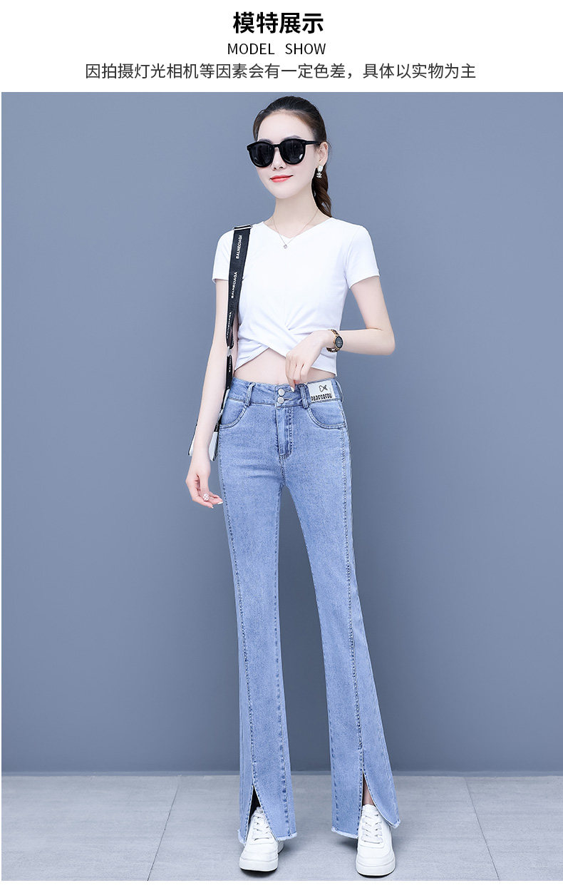Джинсы, приталенные летние штаны, штаны-клёш, высокая талия, в корейском стиле, свободный прямой крой