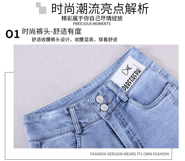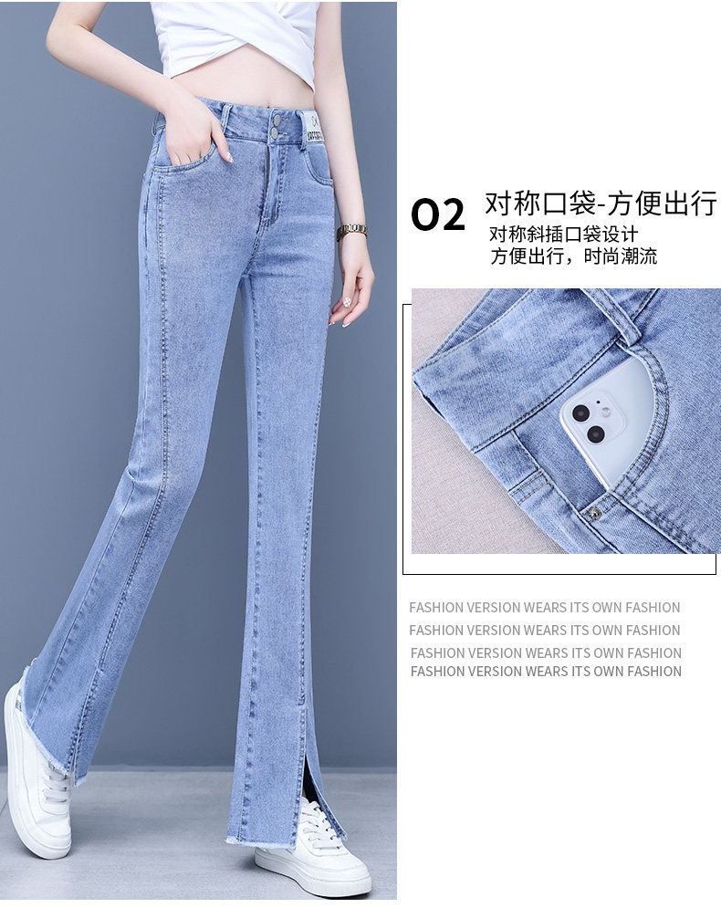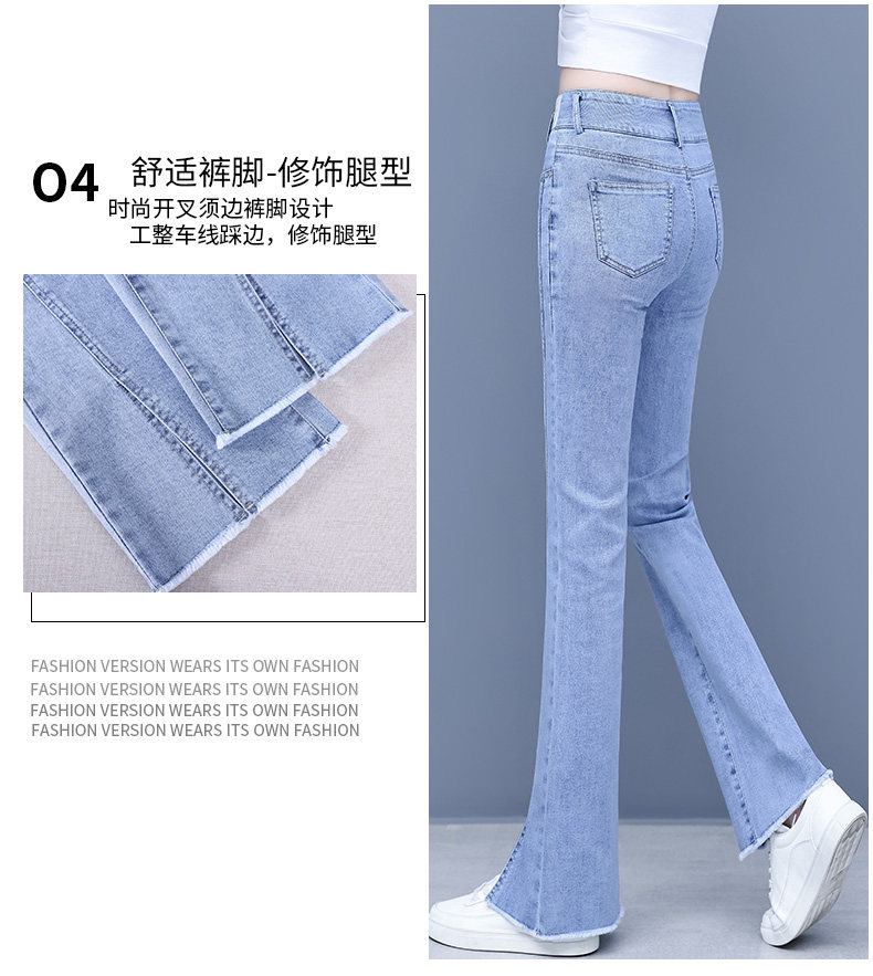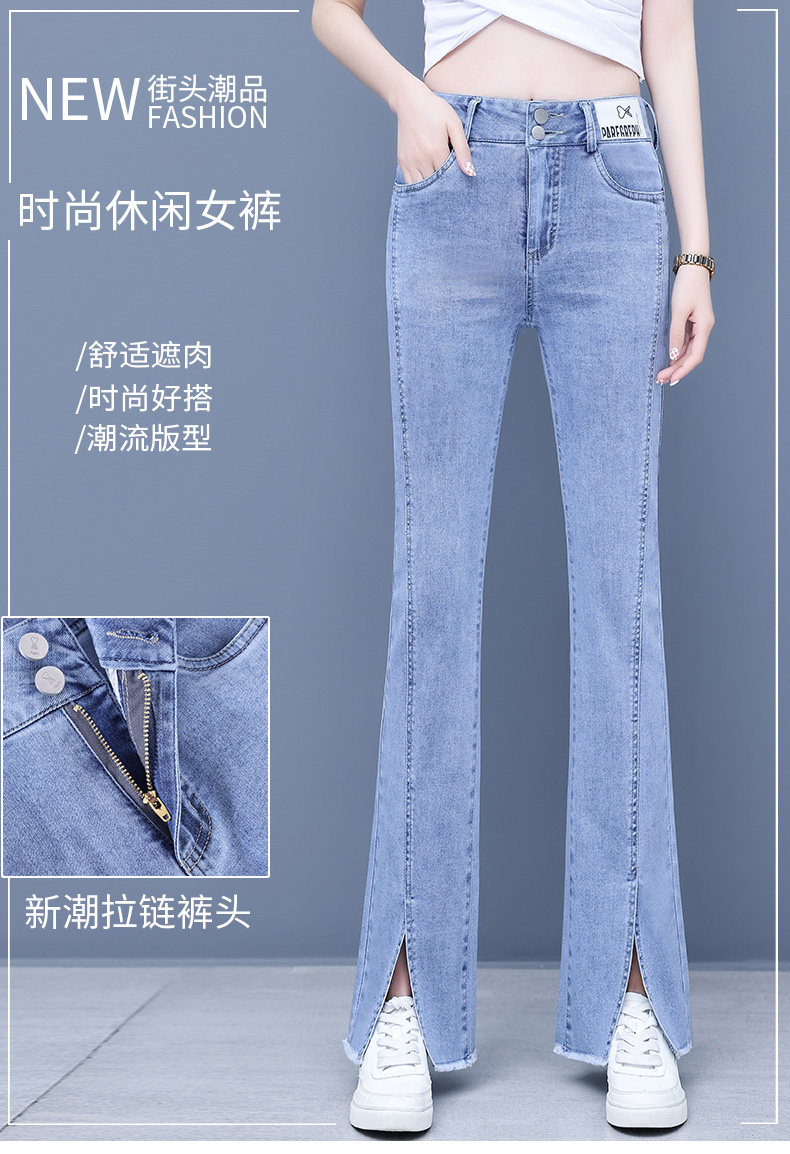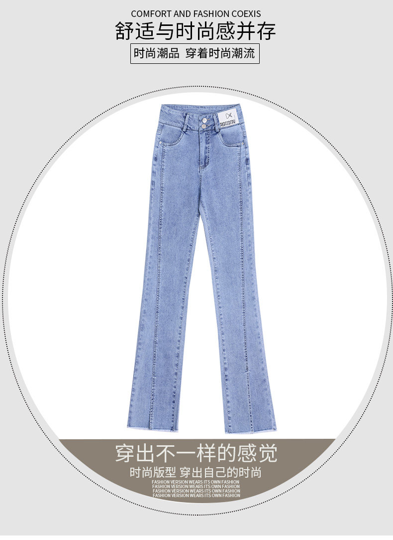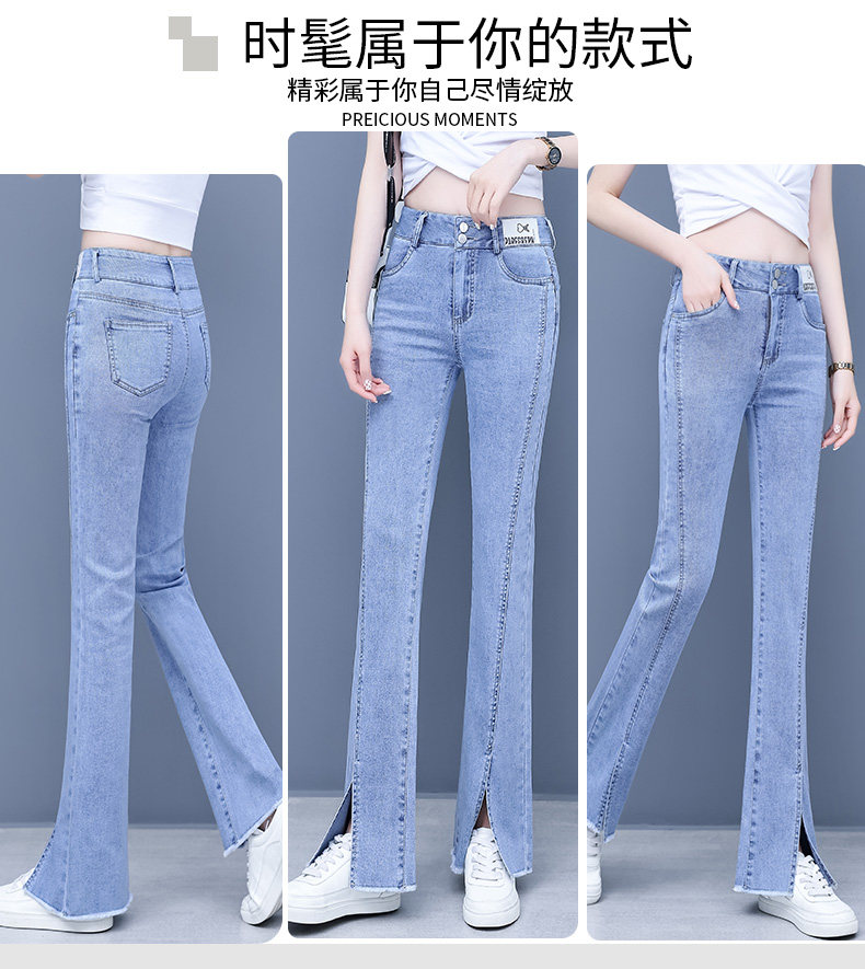 Джинсы, приталенные летние штаны, штаны-клёш, высокая талия, в корейском стиле, свободный прямой крой