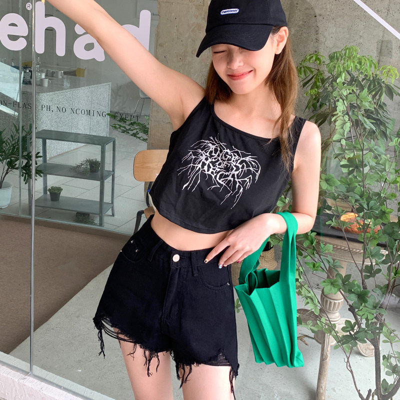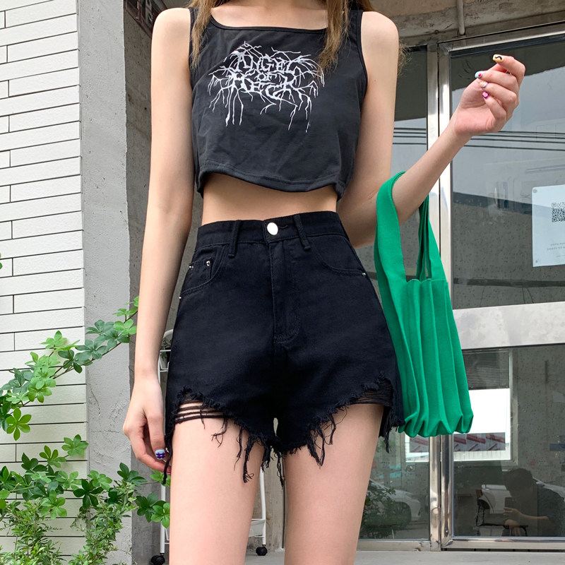Черная джинсовая юбка, шорты, летние штаны, высокая талия, свободный крой, А-силуэт, по фигуре