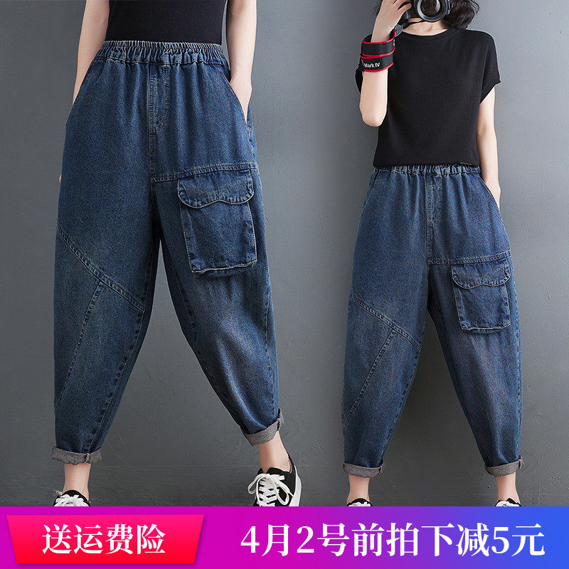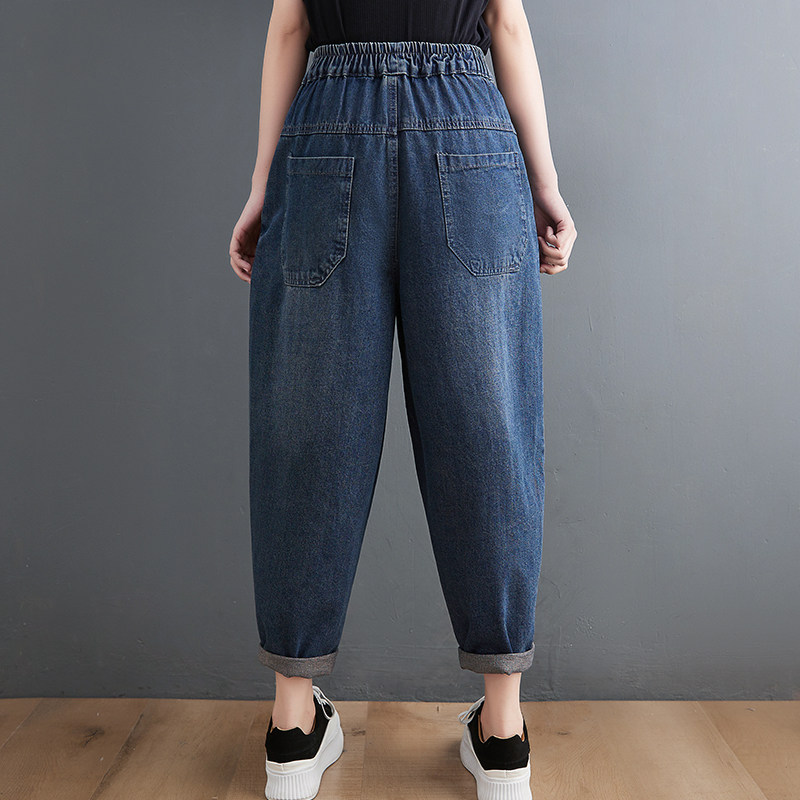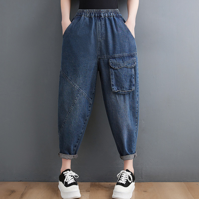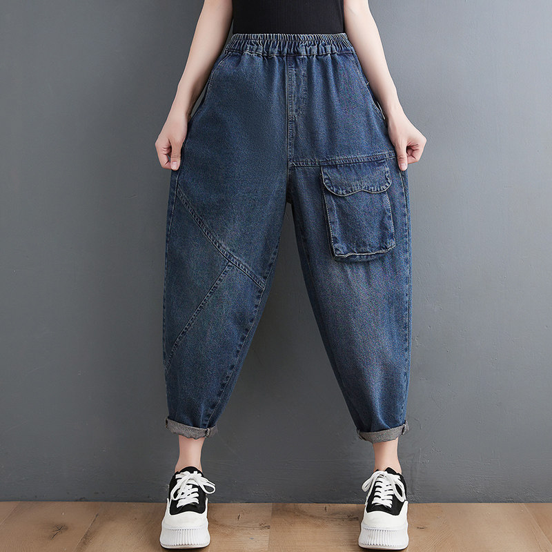 Ретро джинсы, штаны, эластичная талия, свободный крой, по фигуре