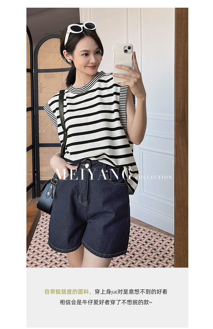 美洋 Meiyang [очистка распродажа, чтобы забрать] Средний летний год -джинсовые шорты, яркие линии прямые повседневные штаны