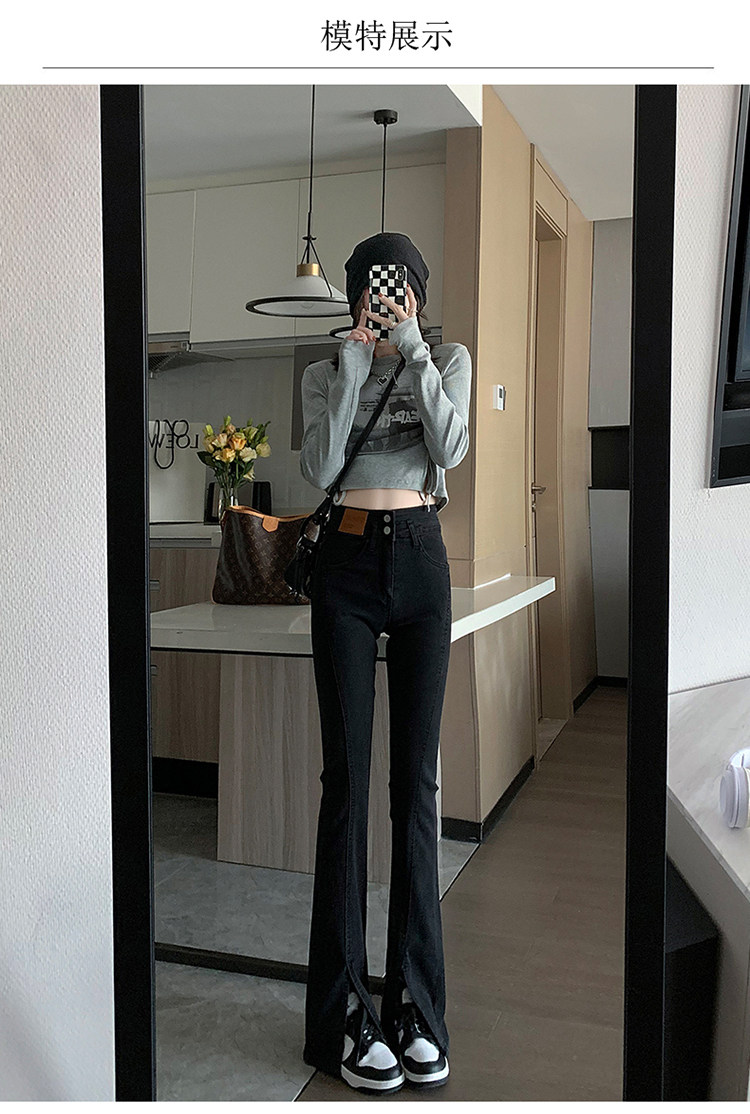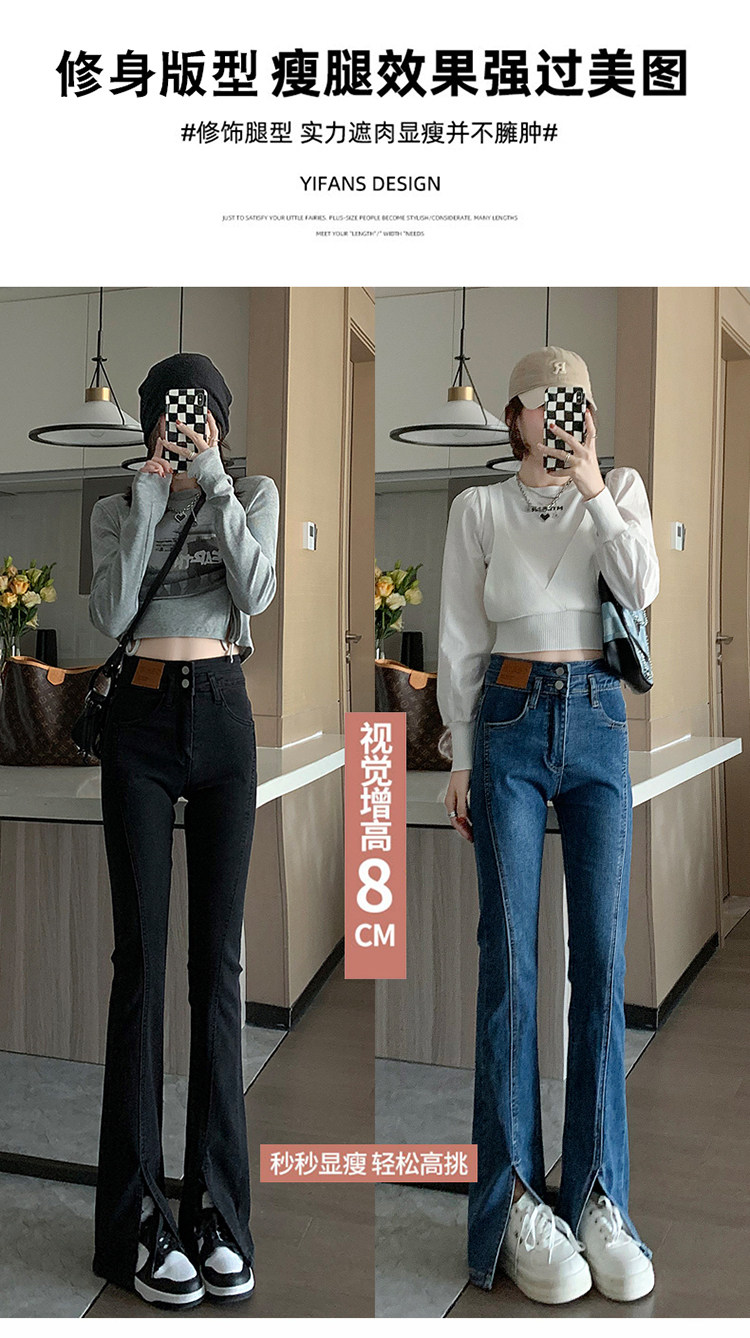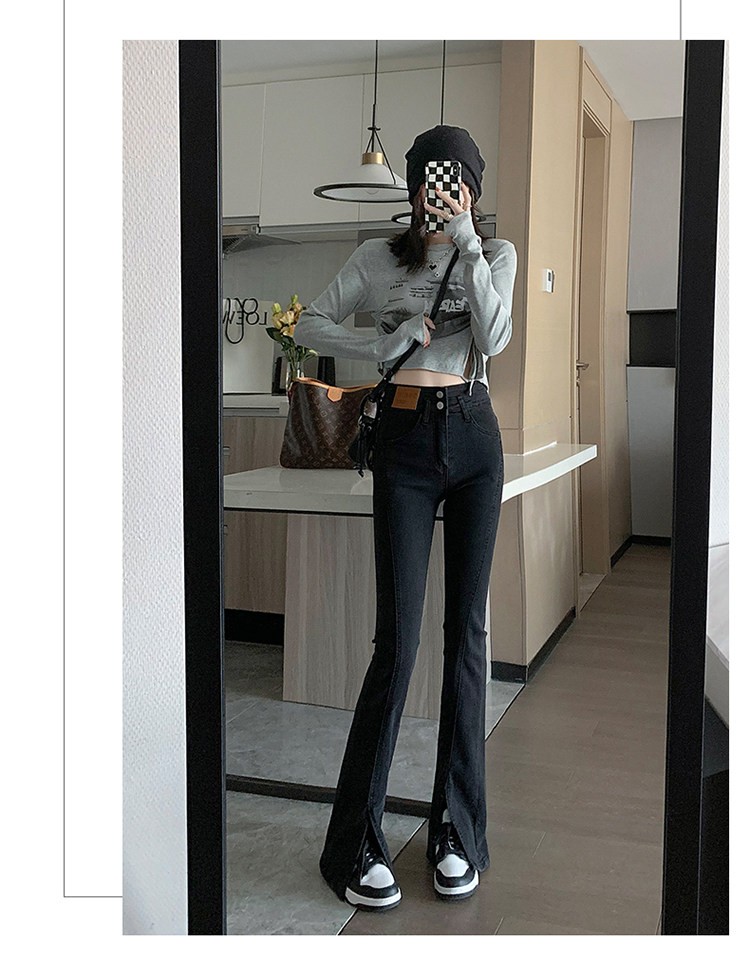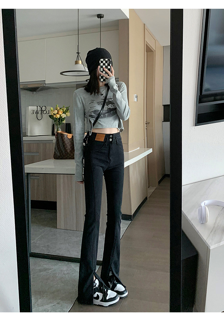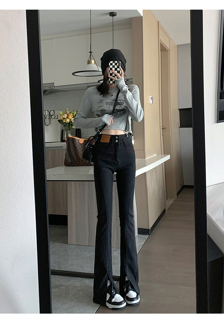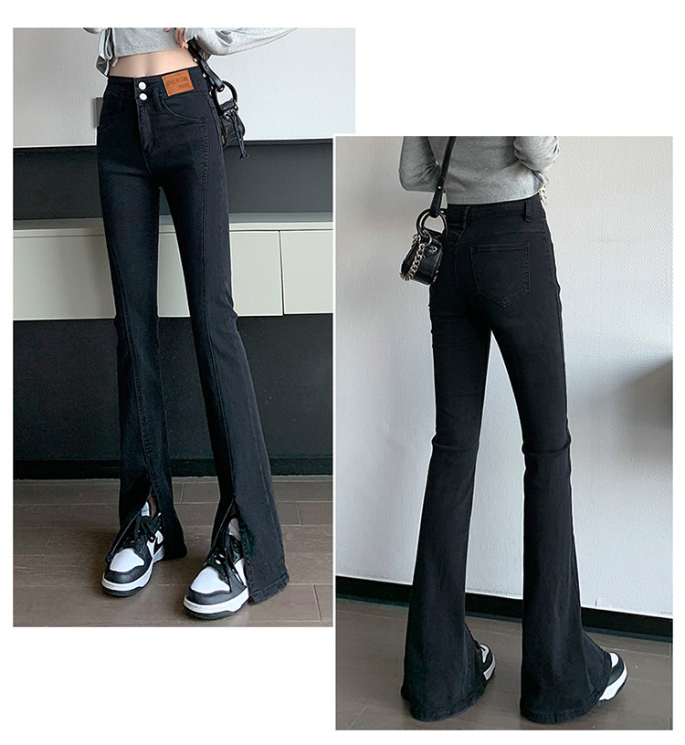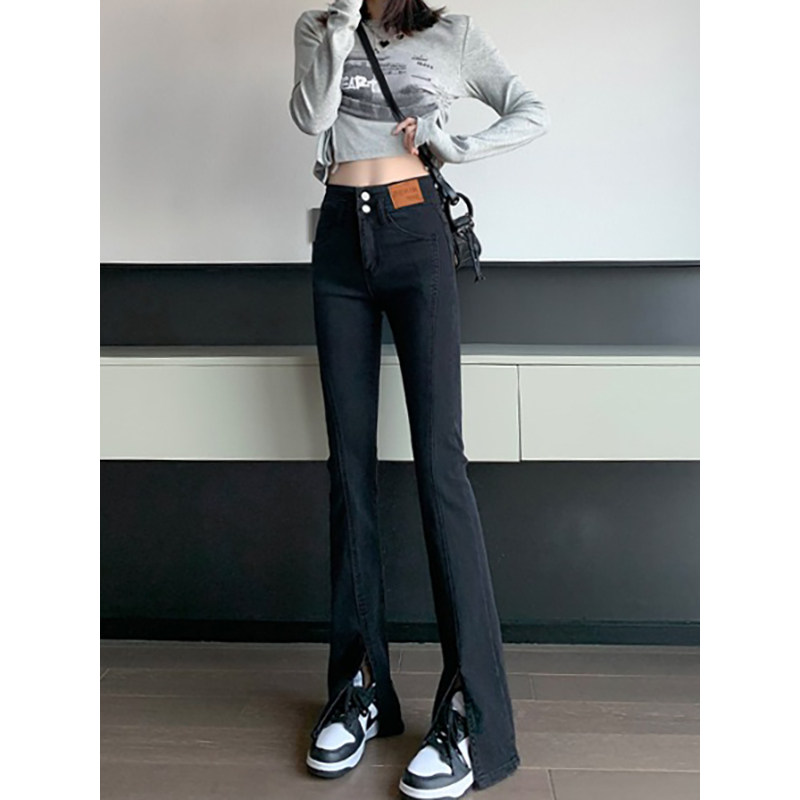 Черные джинсовые джинсы, штаны, штаны-клёш, высокая талия, подходит для подростков, по фигуре, облегающий крой