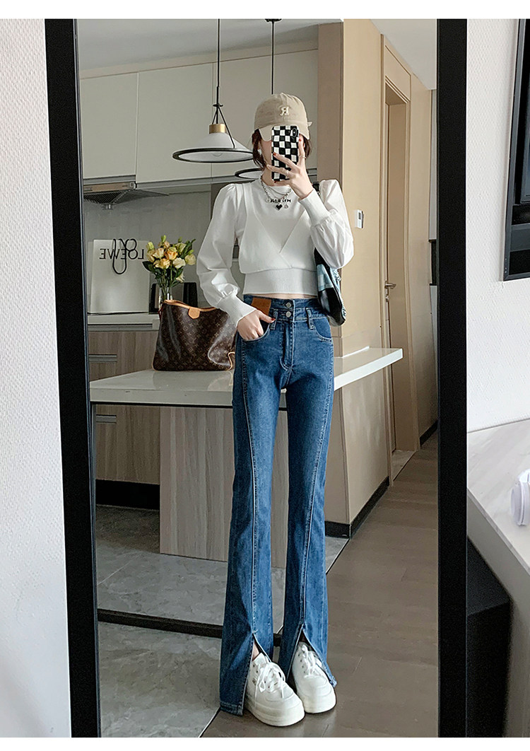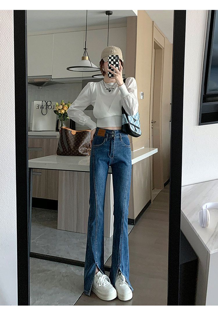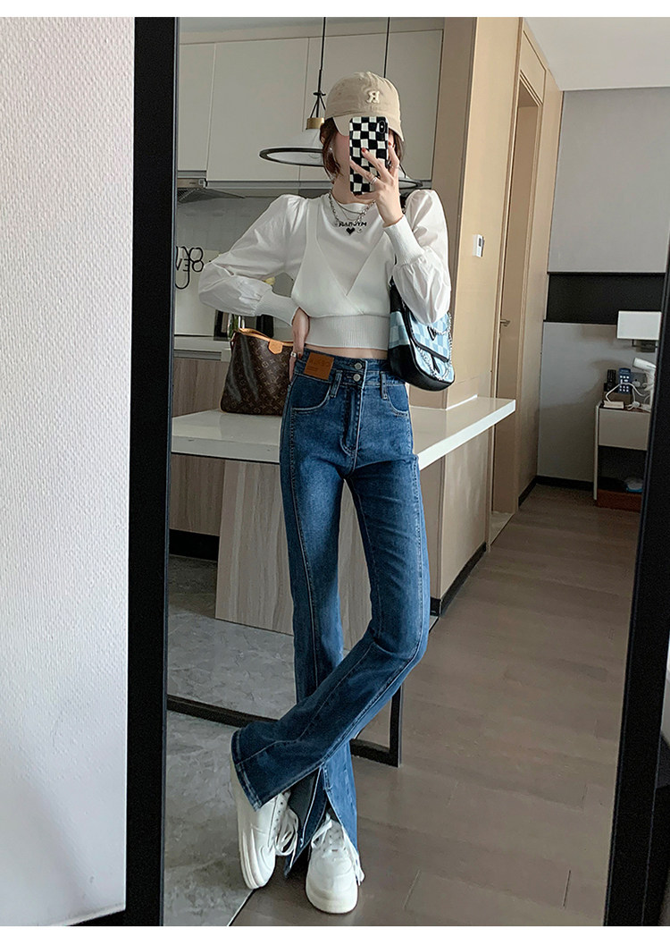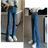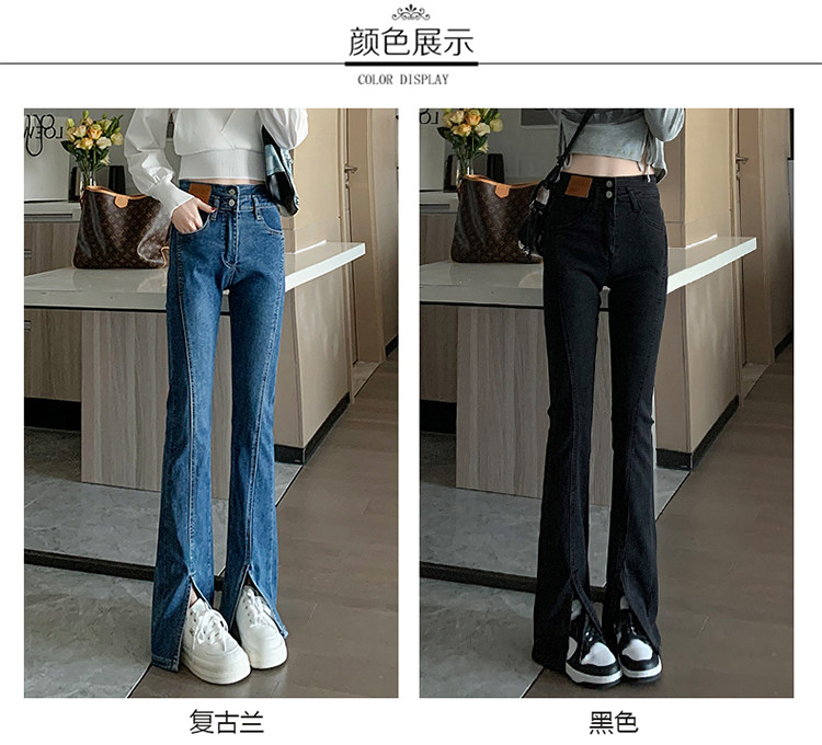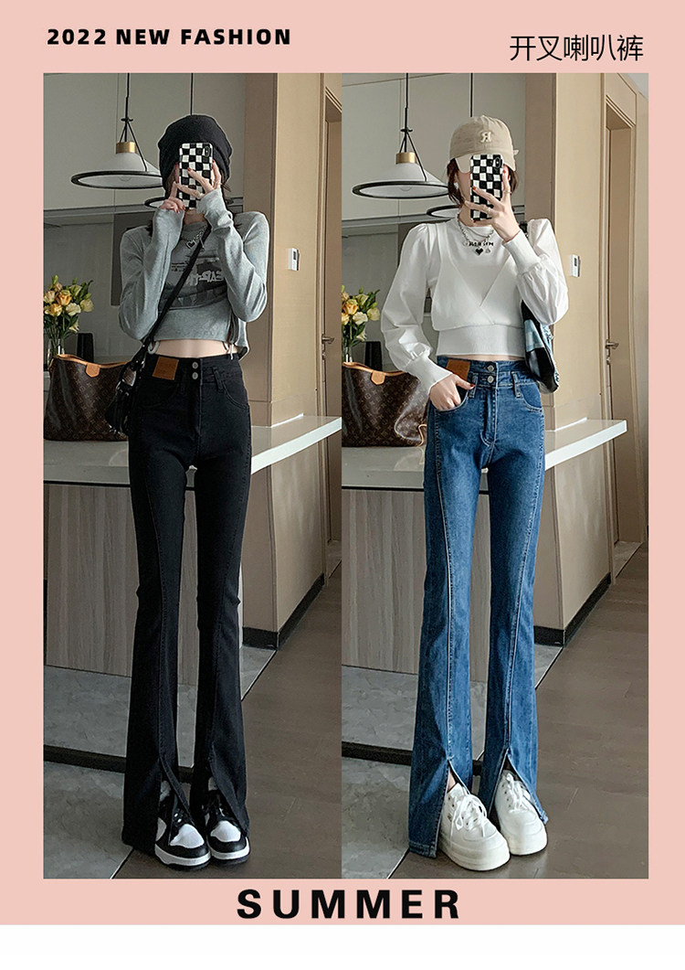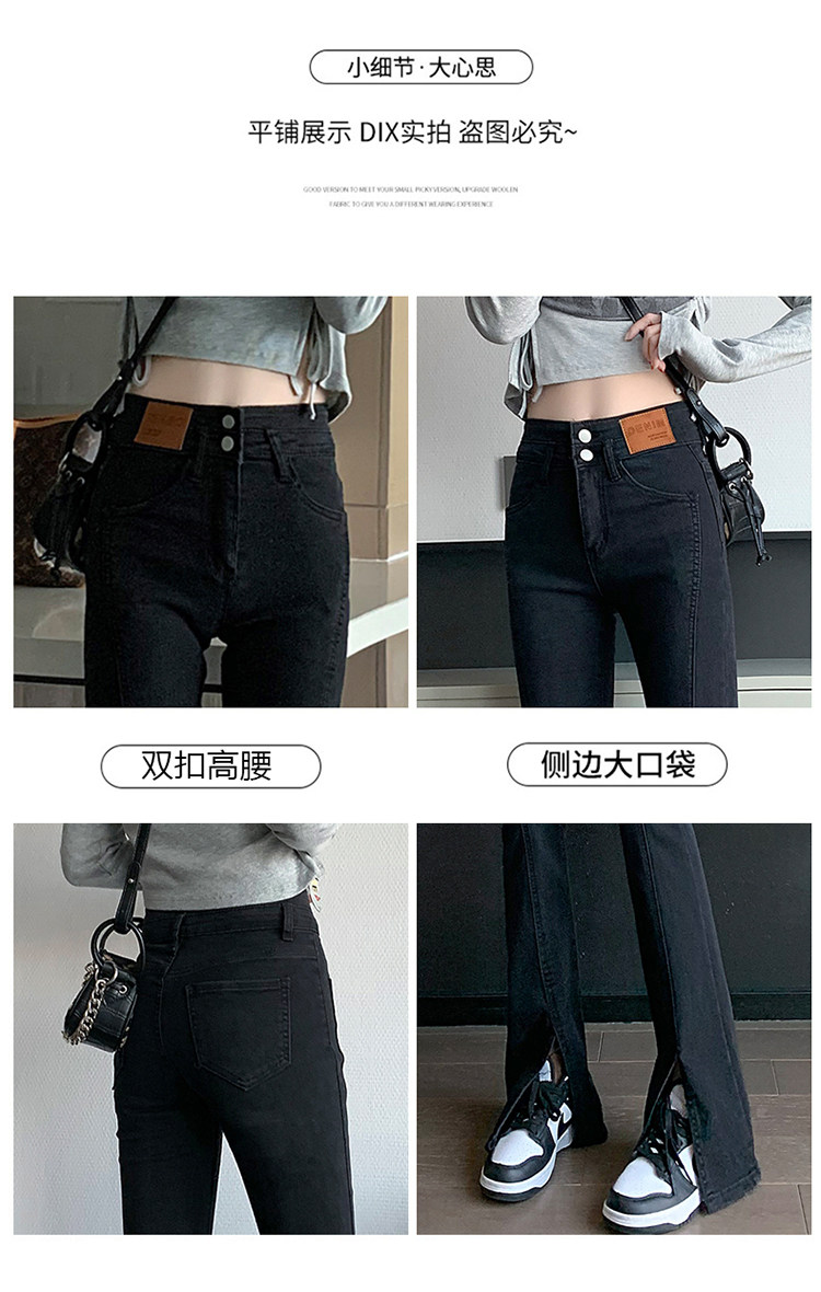 Черные джинсовые джинсы, штаны, штаны-клёш, высокая талия, подходит для подростков, по фигуре, облегающий крой