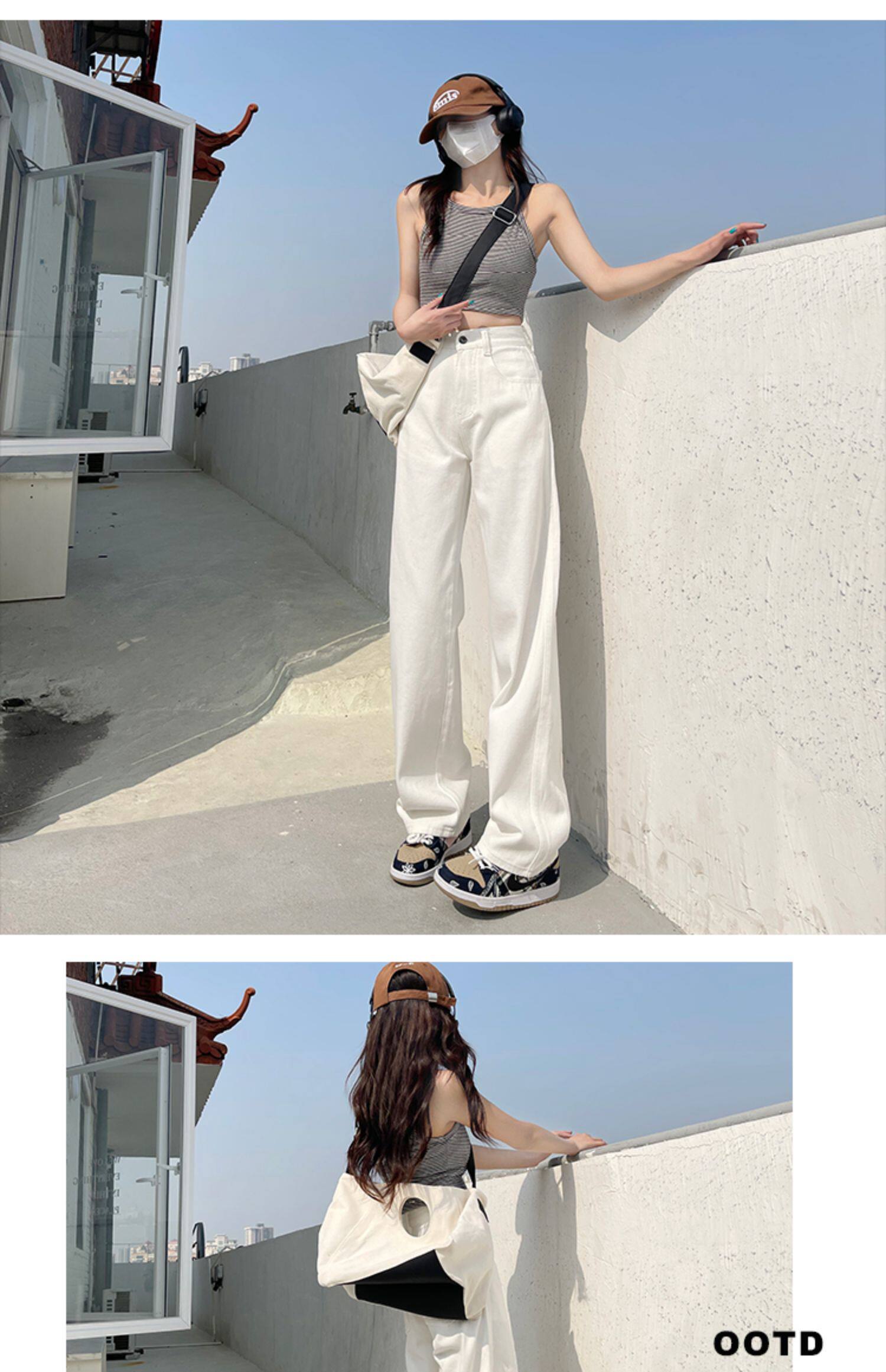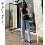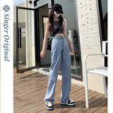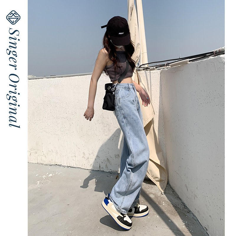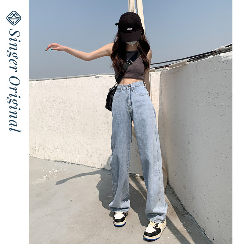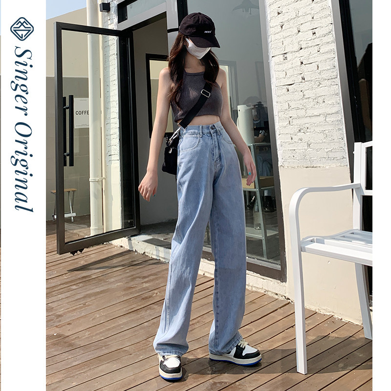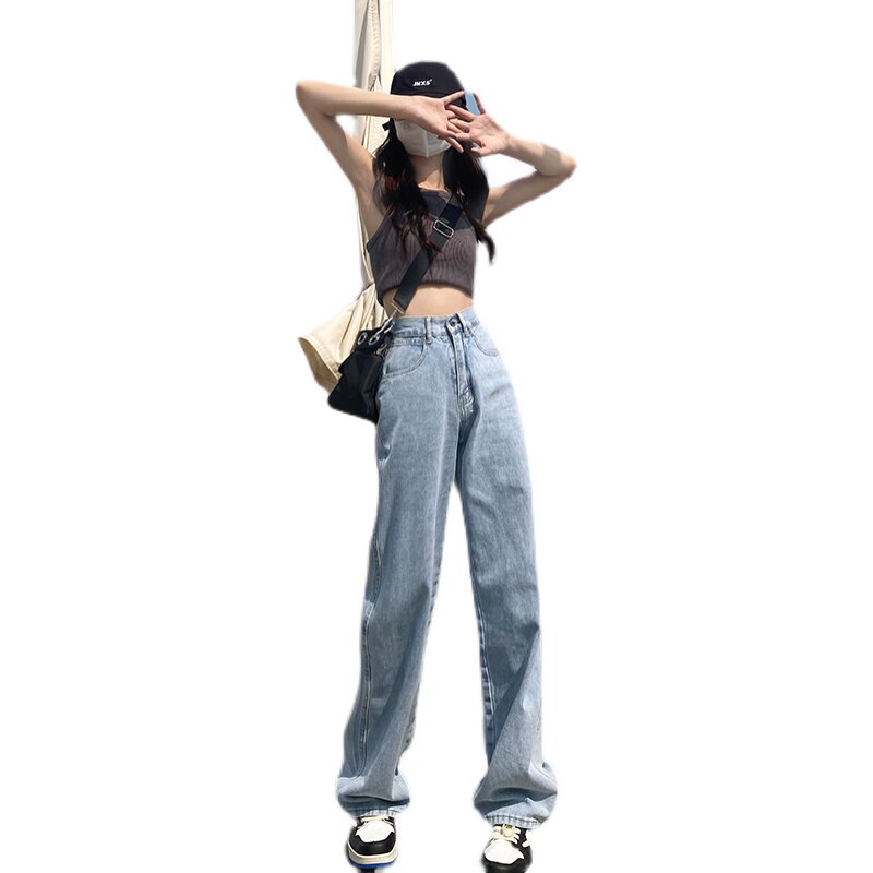 Светлые весенние джинсы, летние штаны, высокая талия, подходит для подростков, свободный прямой крой