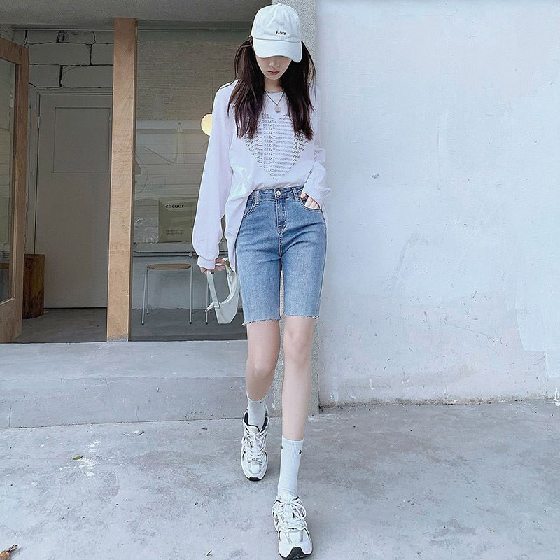 Джинсовая юбка, летние шорты, штаны, синие эластичные румяна, высокая талия, популярно в интернете, облегающий крой