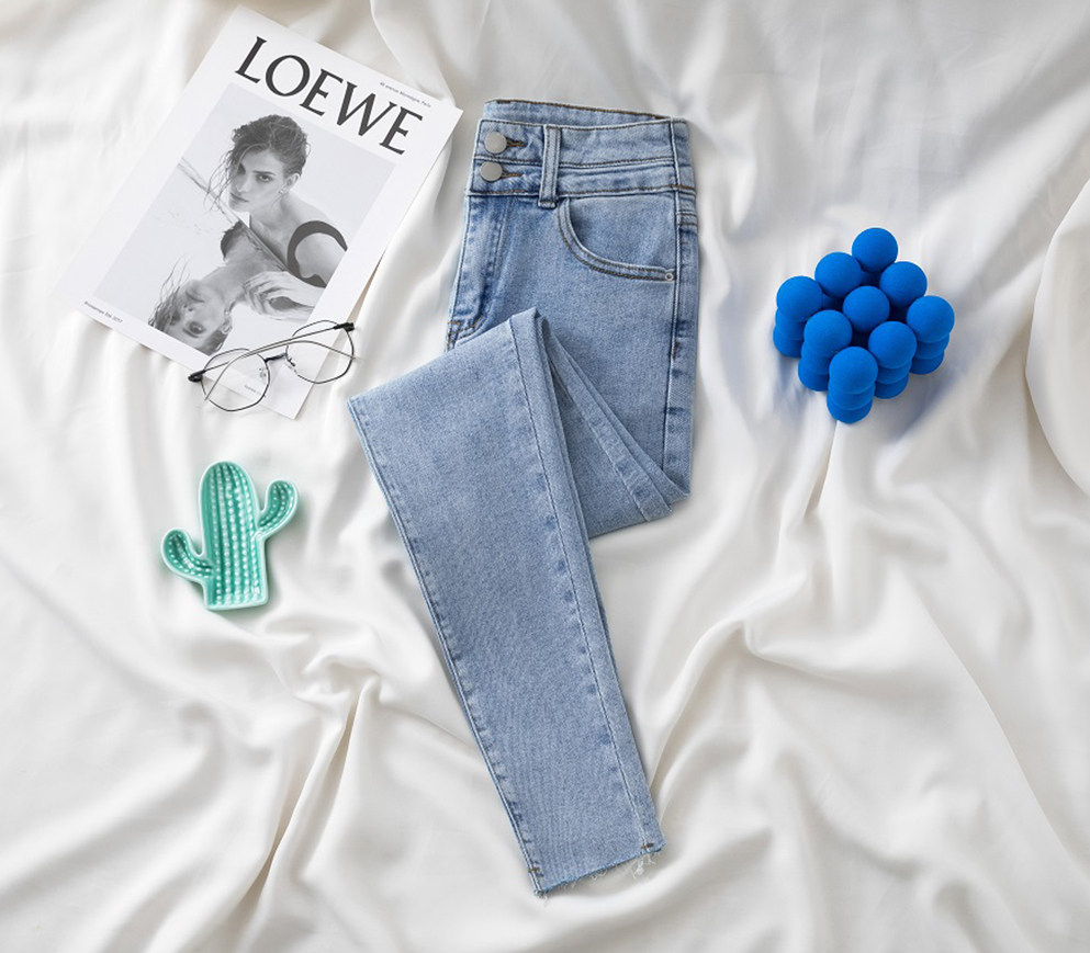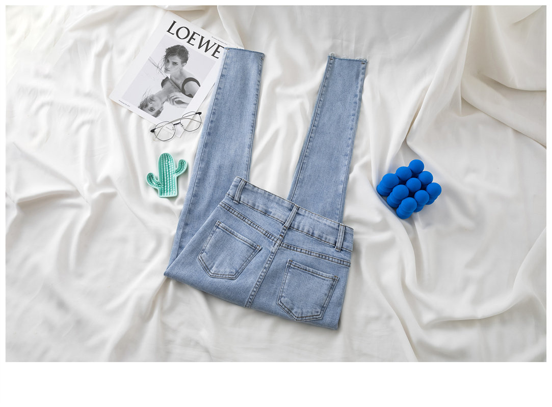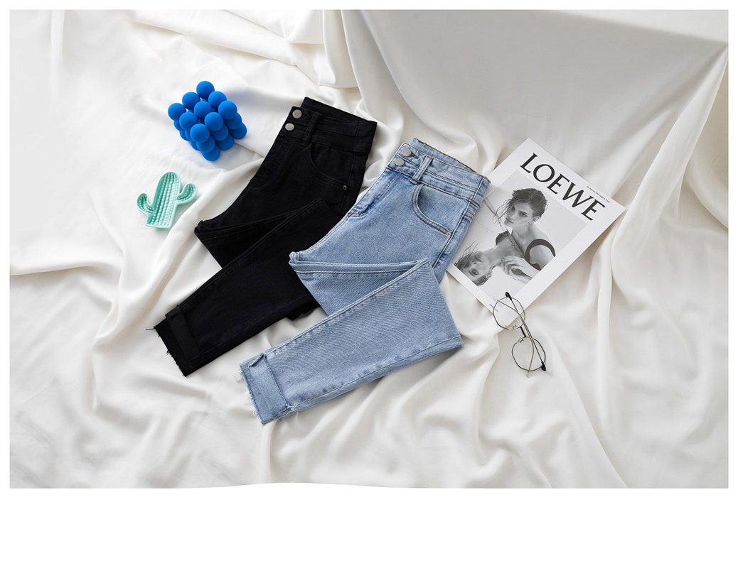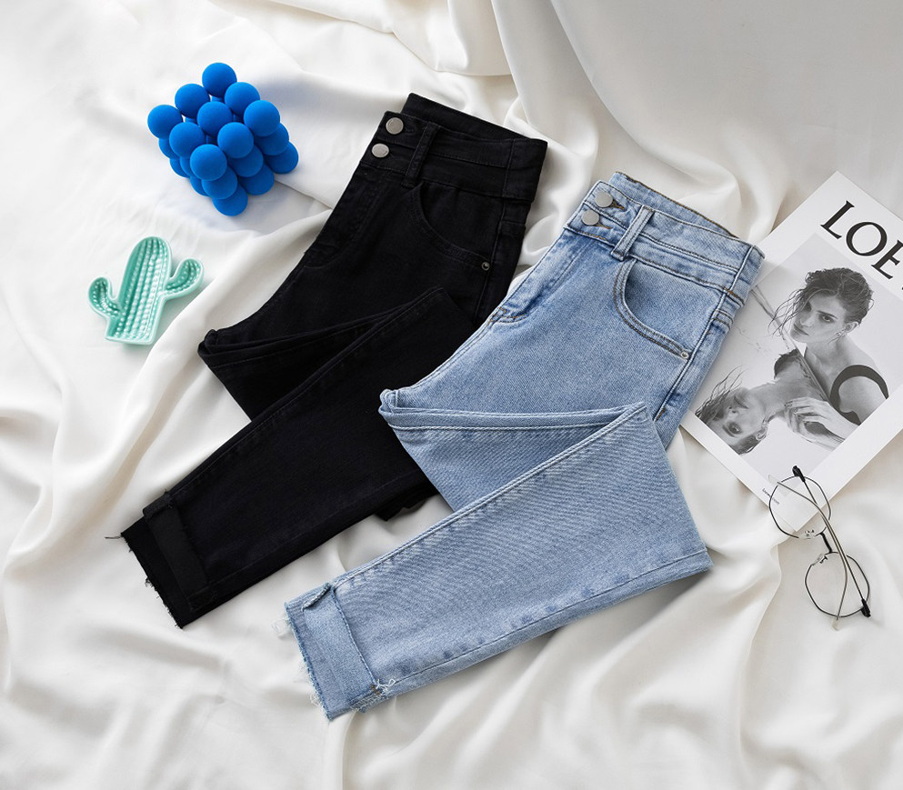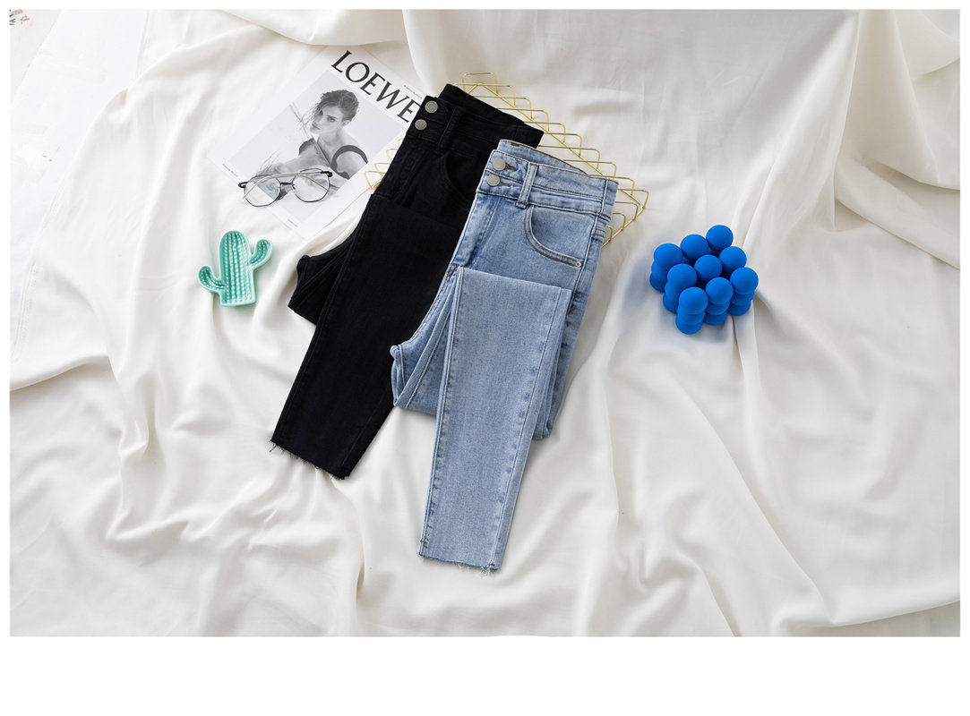 Джинсы, эластичные штаны, приталенный универсальный карандаш, высокая талия, новая коллекция, в обтяжку, в корейском стиле, популярно в интернете