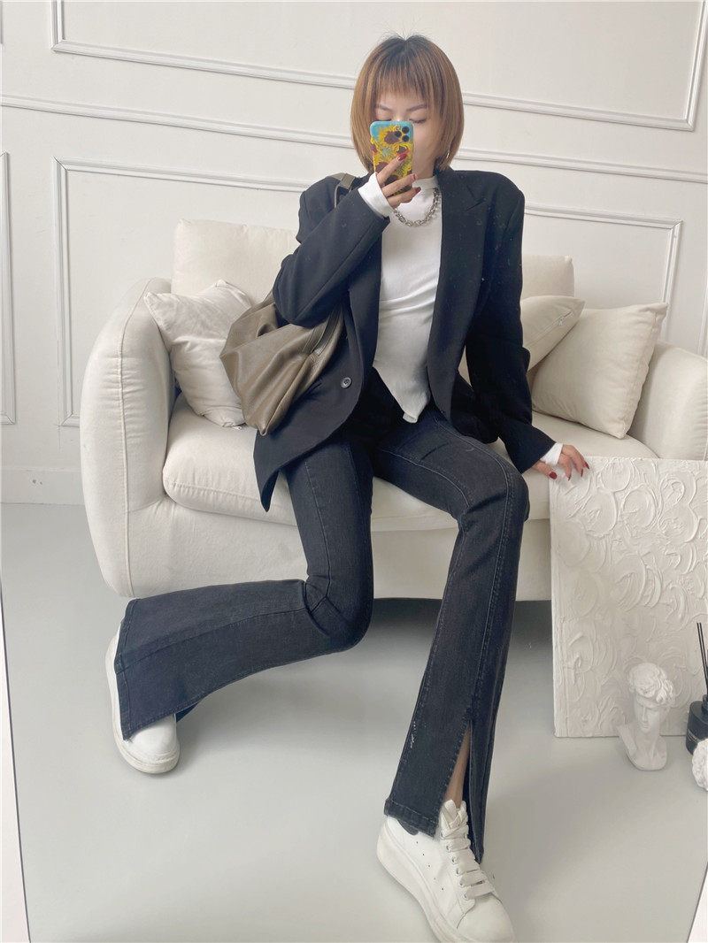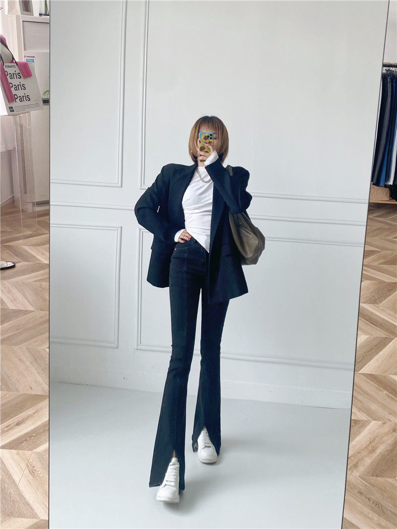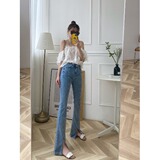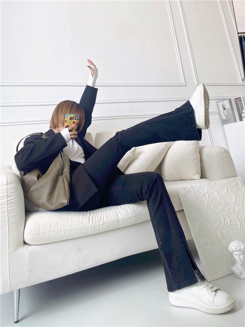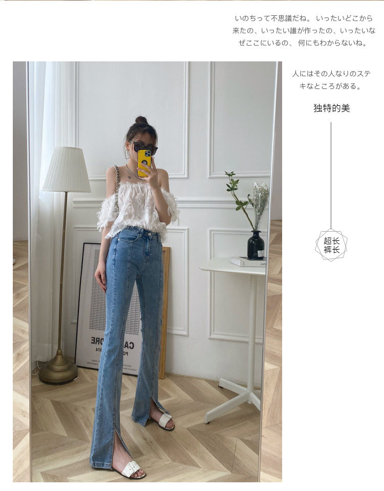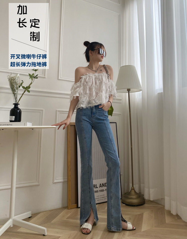 Сверхдлинный эластичный приталенный комбинезон, длинный мегафон, джинсовые джинсы, штаны, высокая талия, по фигуре