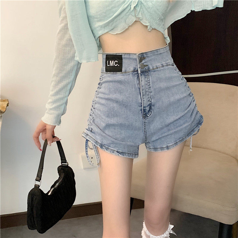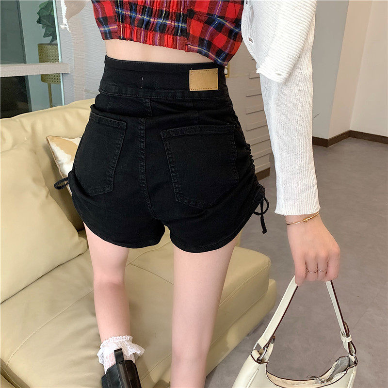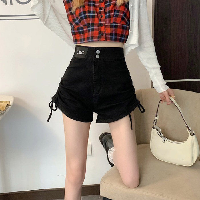 Черная джинсовая юбка, шорты, летние штаны, высокая талия, на шнурках, свободный крой, коллекция 2022, по фигуре, А-силуэт