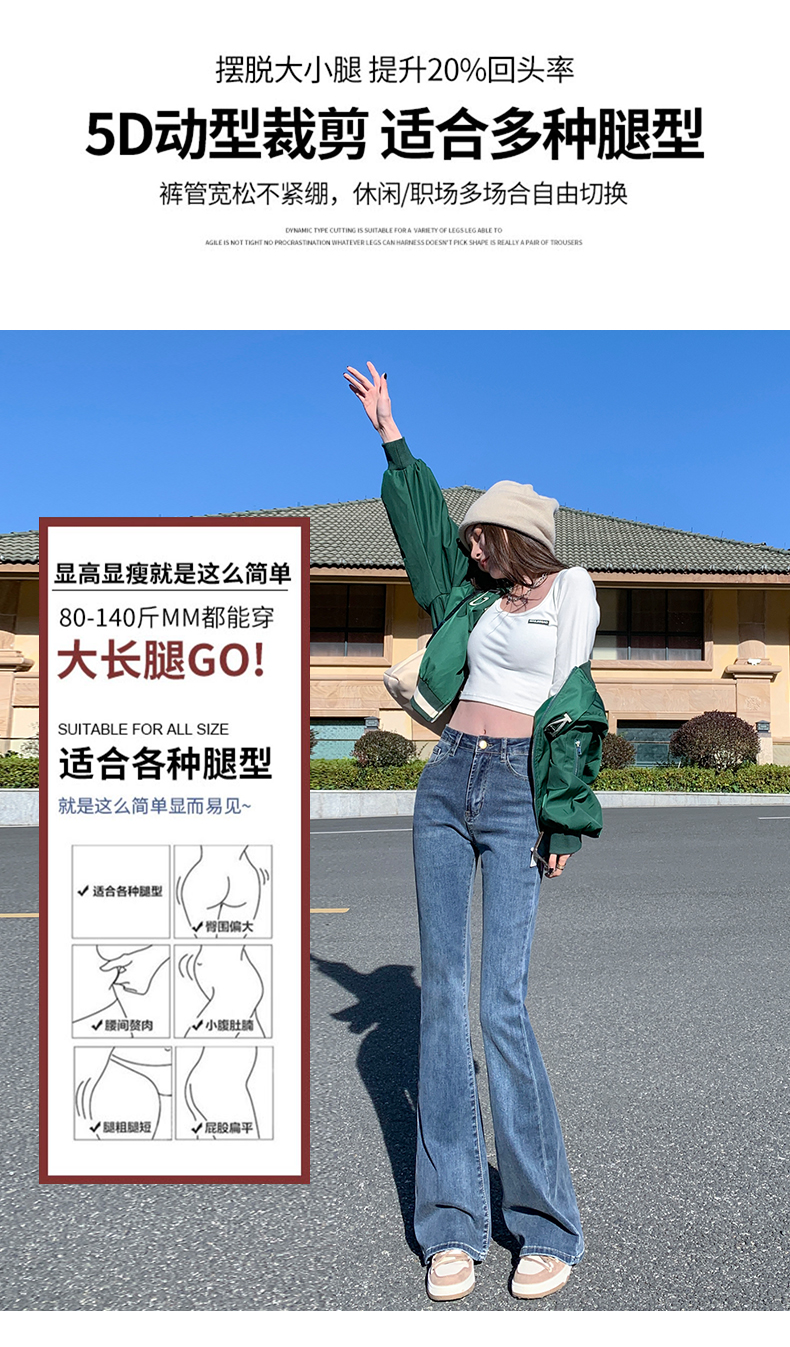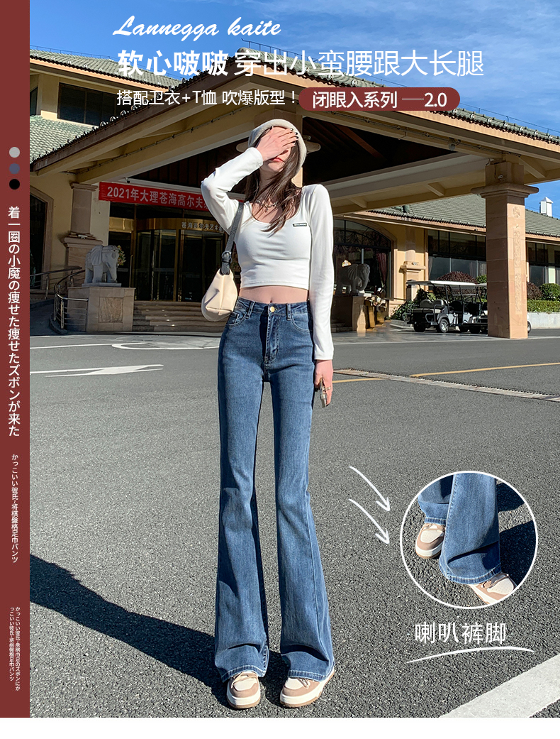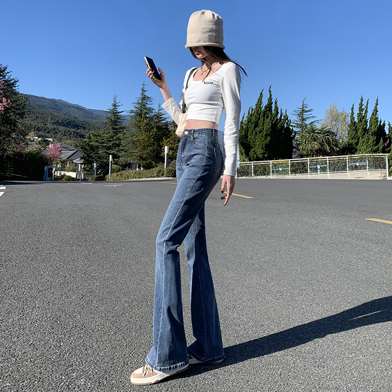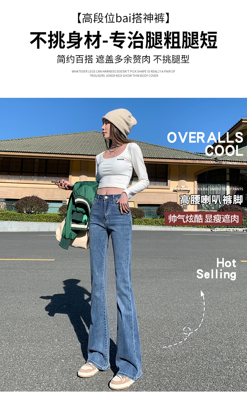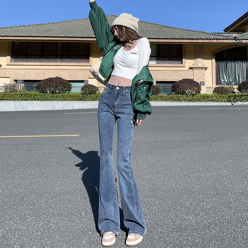 Джинсы, осенние штаны, приталенные универсальные штаны-клёш, 2024 года, высокая талия, свободный крой, подходит для подростков