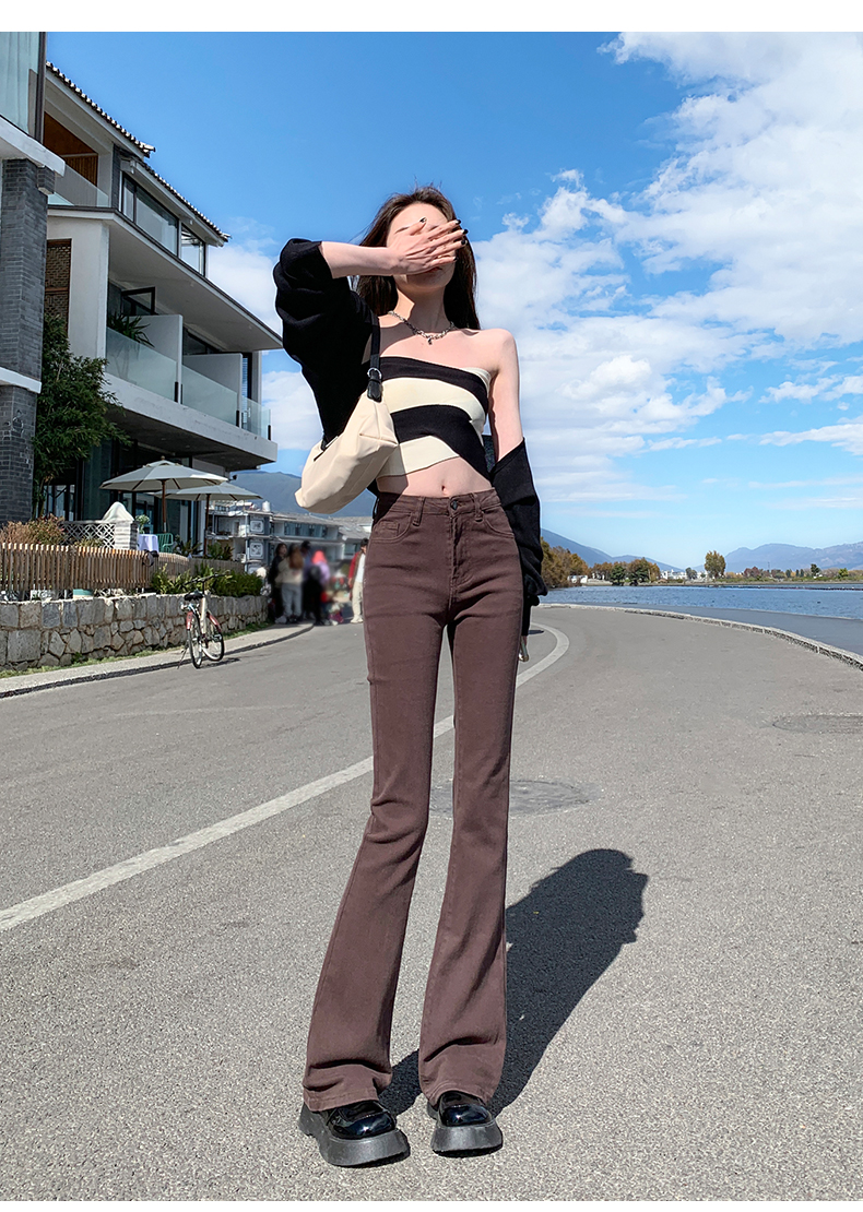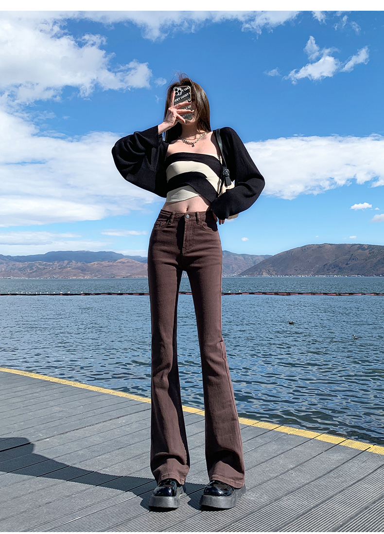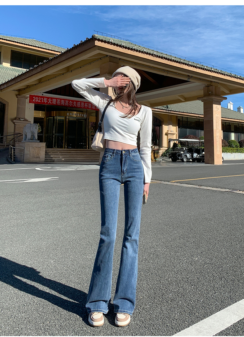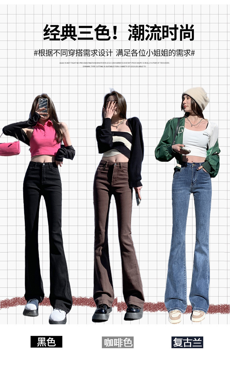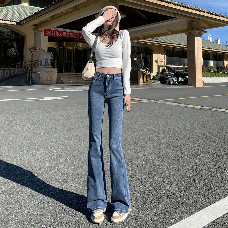 Джинсы, осенние штаны, приталенные универсальные штаны-клёш, 2024 года, высокая талия, свободный крой, подходит для подростков