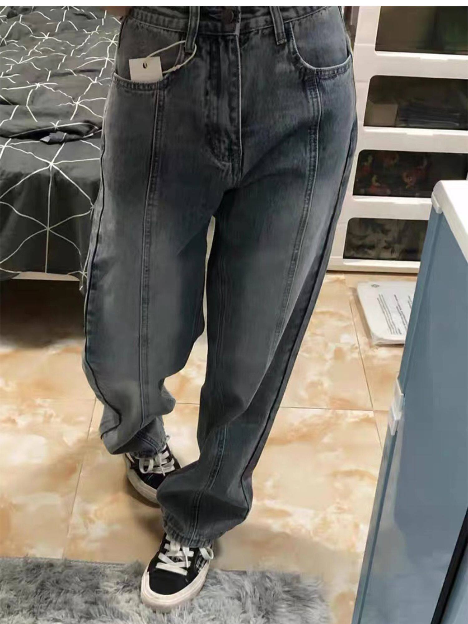 Tide, штаны, прямые свободные джинсы, 2025 года, оверсайз, большой размер, подходит для полных девушек