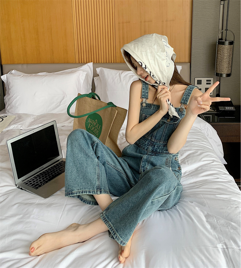 Синий джинсовый весенний комбинезон, приталенные штаны, высокая талия, свободный крой