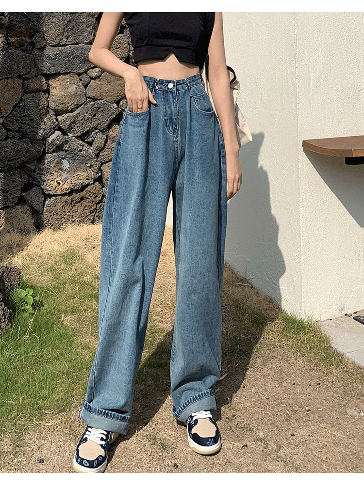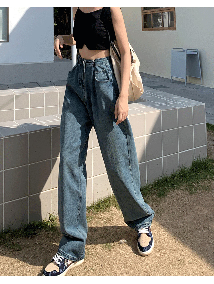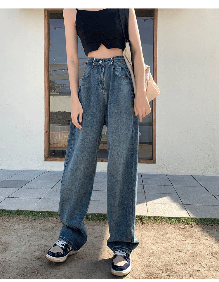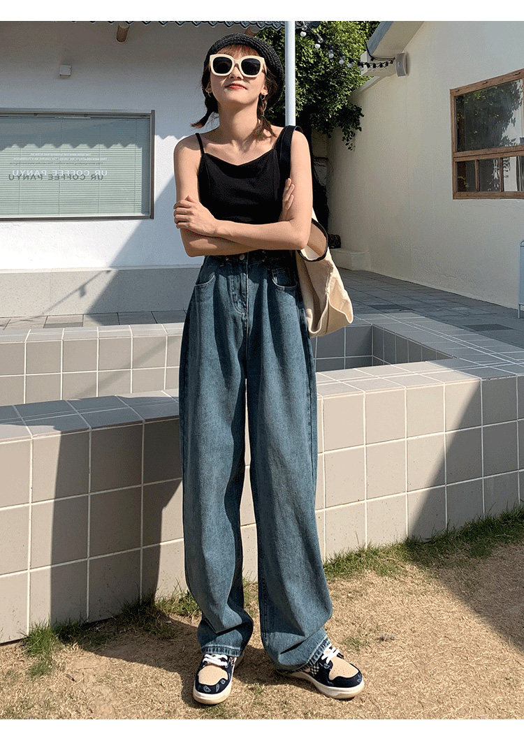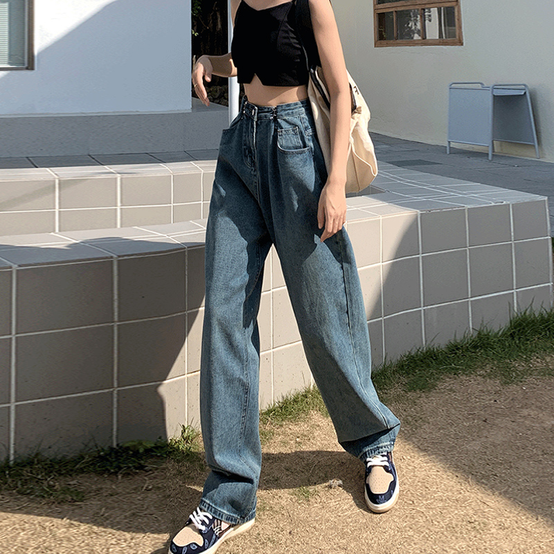 Летние ретро джинсовые джинсы, в корейском стиле, высокая талия, свободный прямой крой