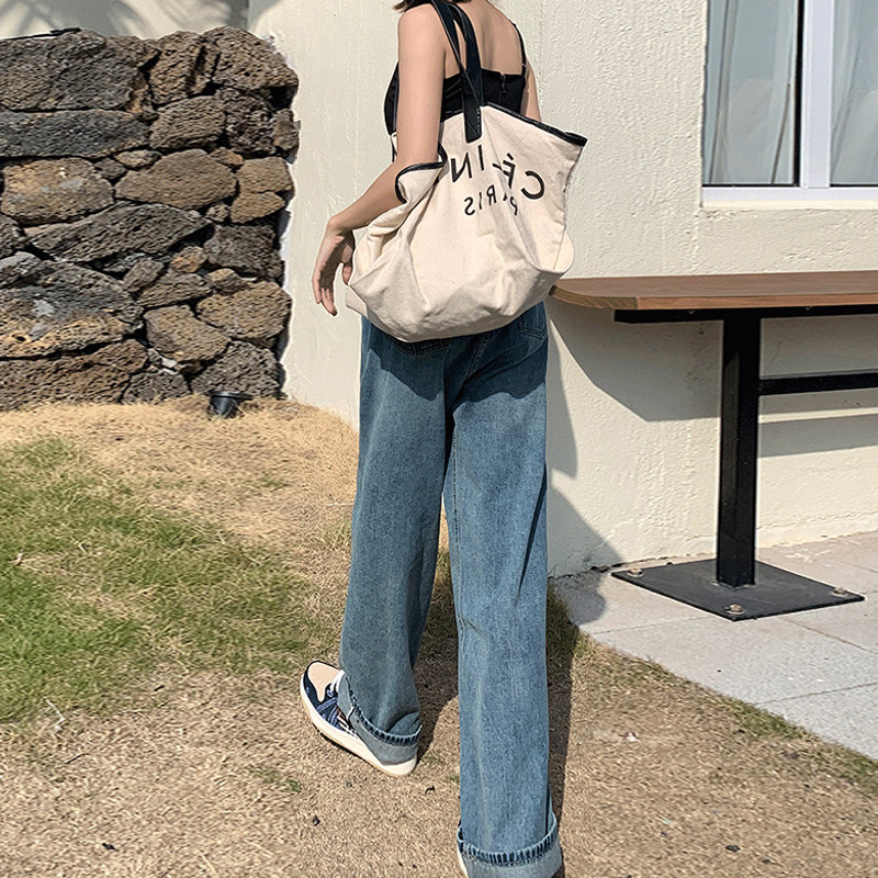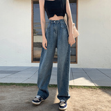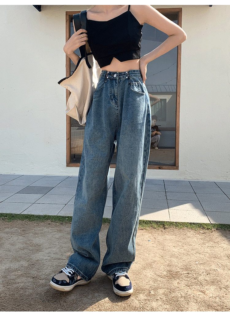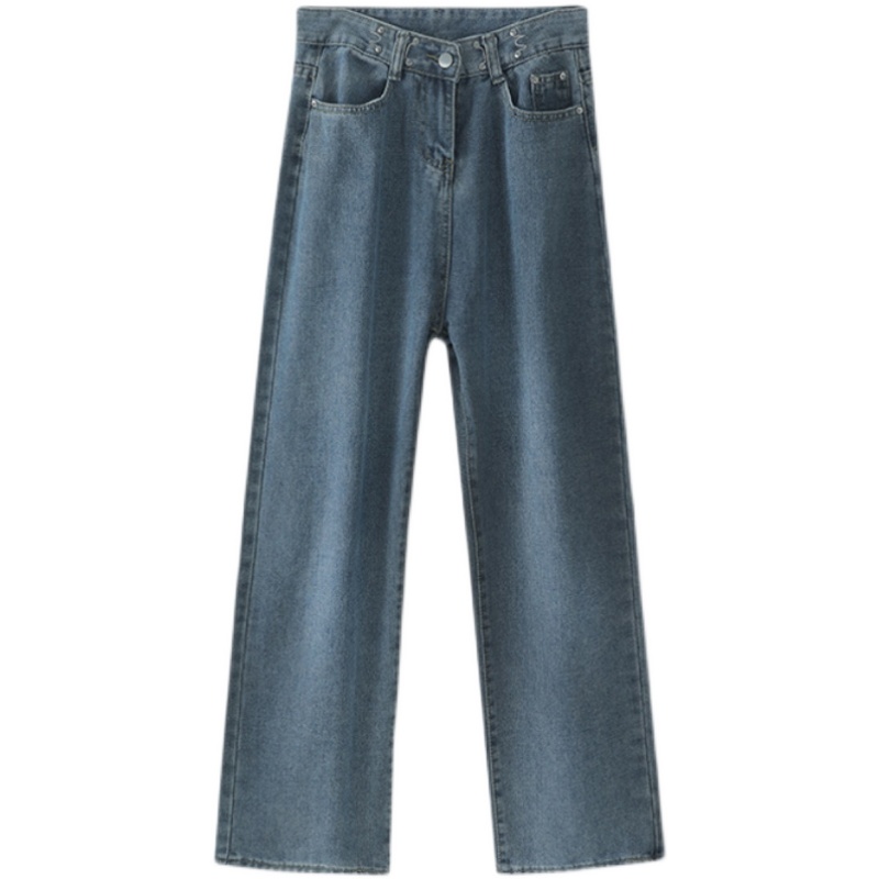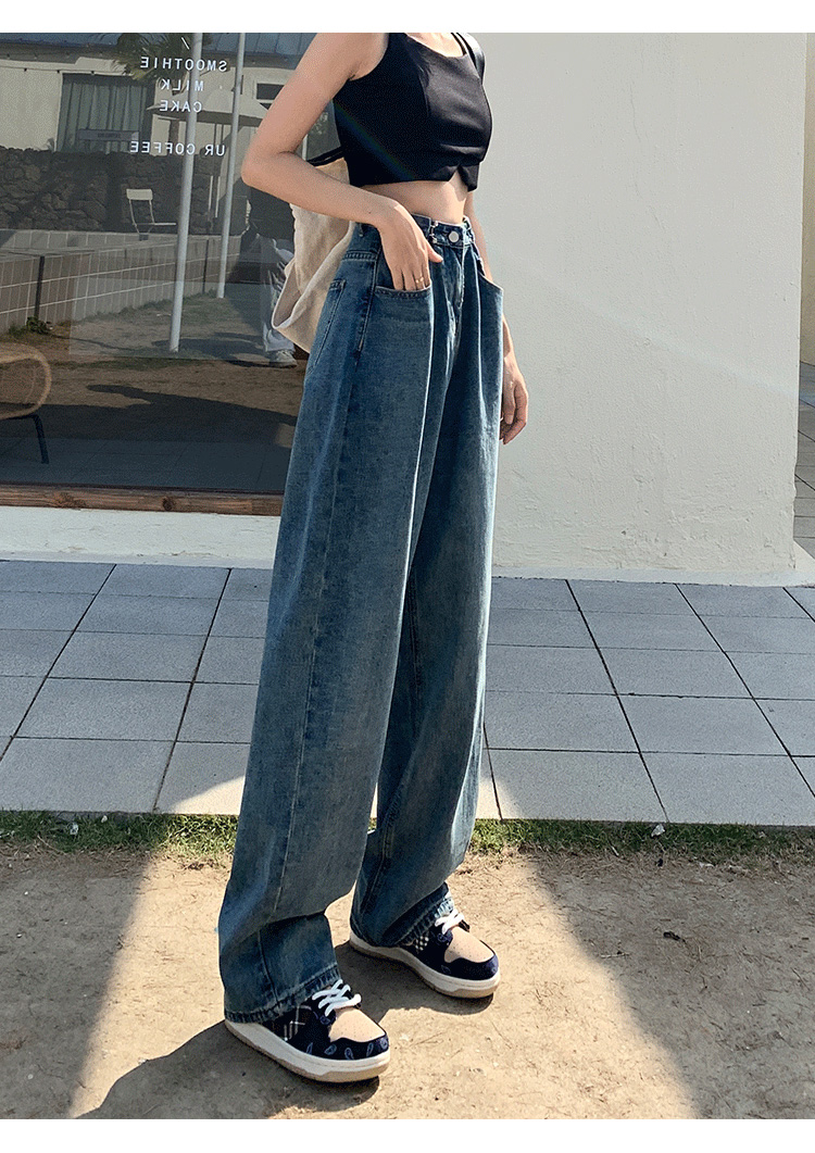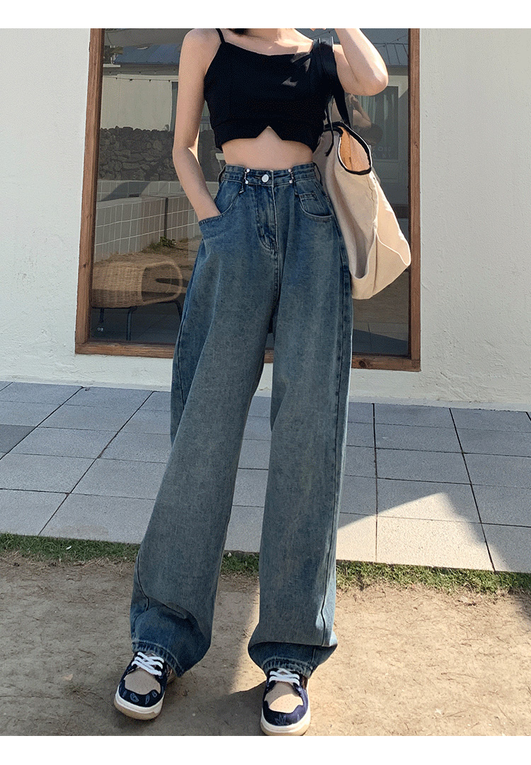 Летние ретро джинсовые джинсы, в корейском стиле, высокая талия, свободный прямой крой