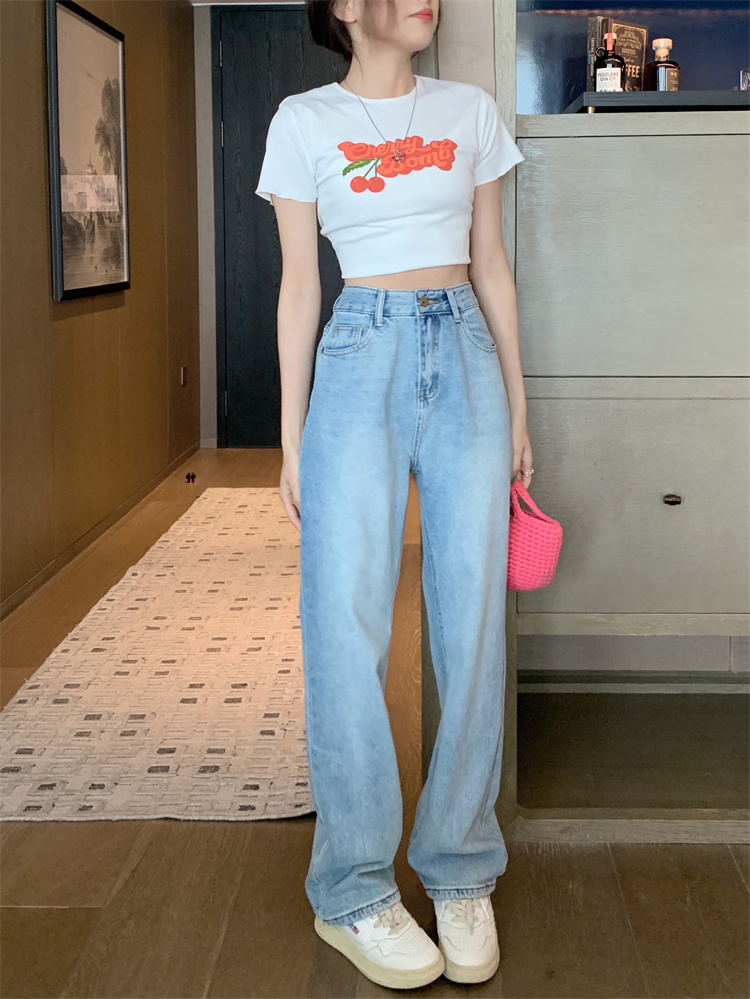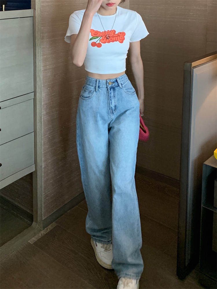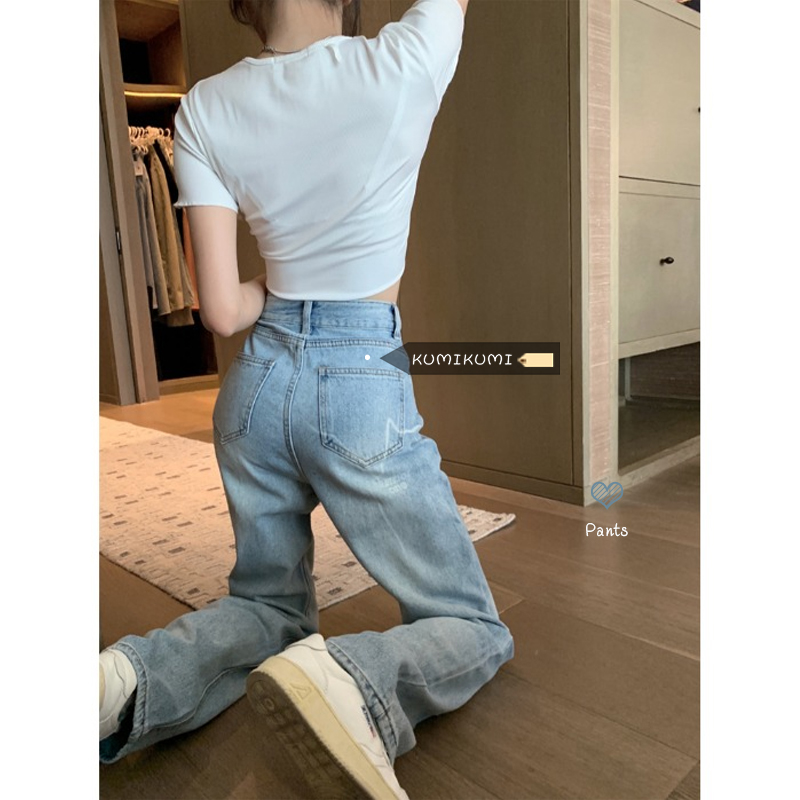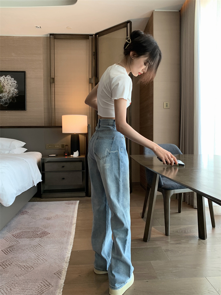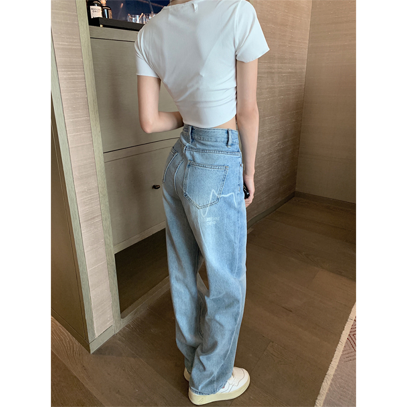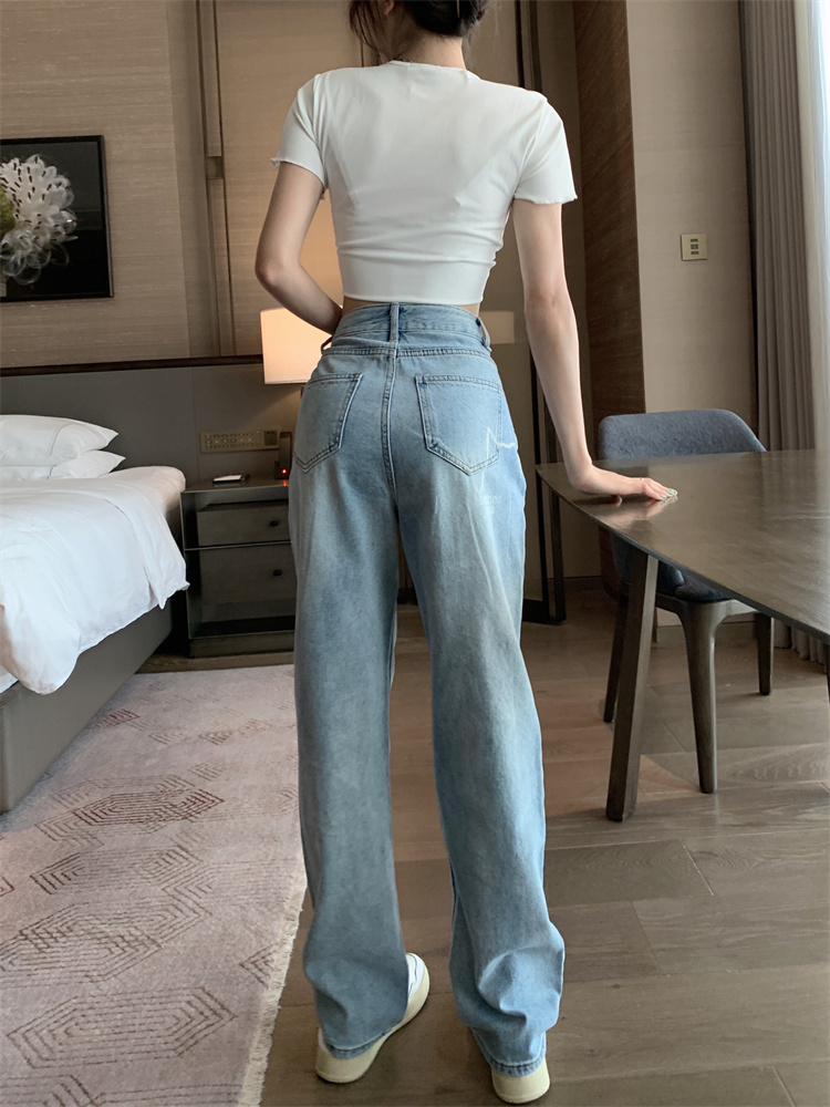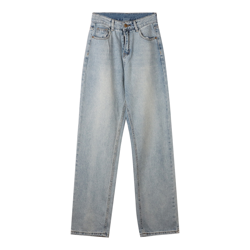 Ретро синие весенние джинсы, штаны, в американском стиле, высокая талия, свободный прямой крой