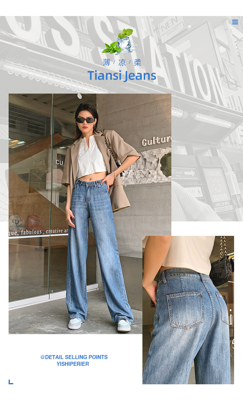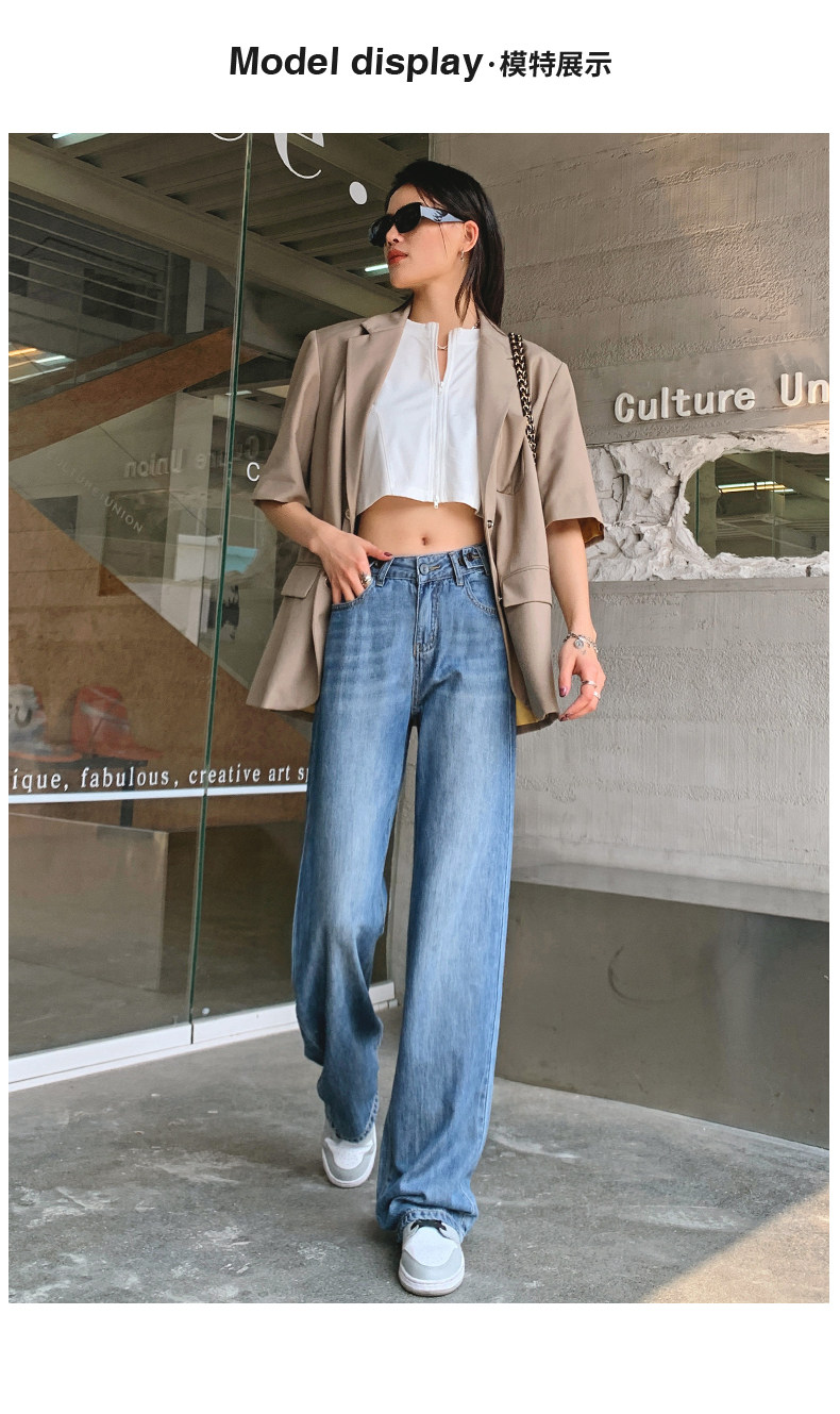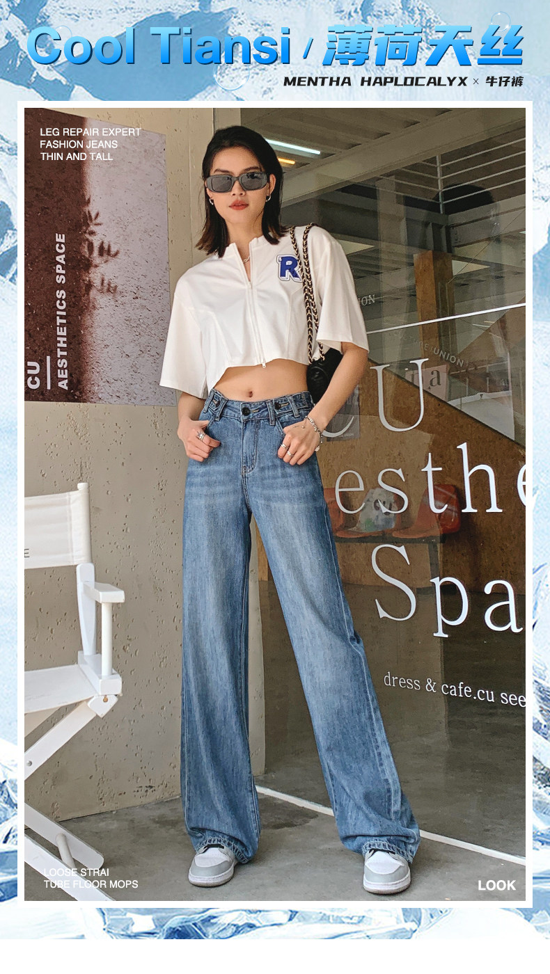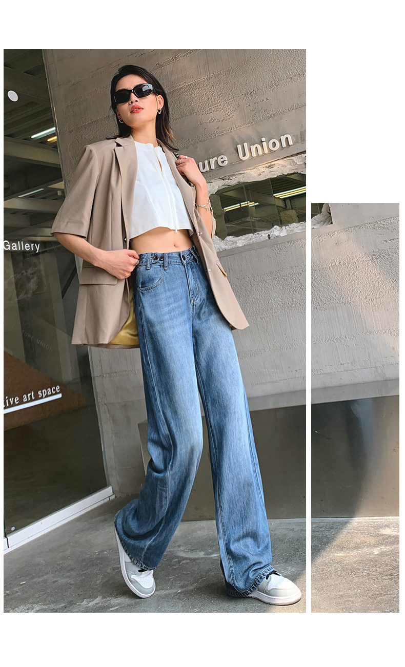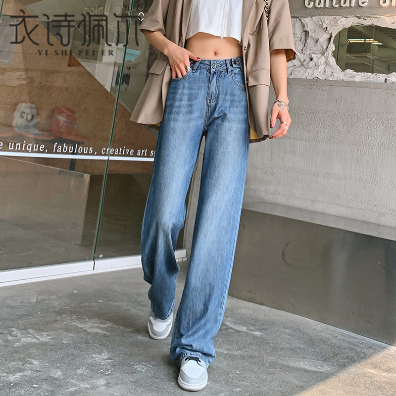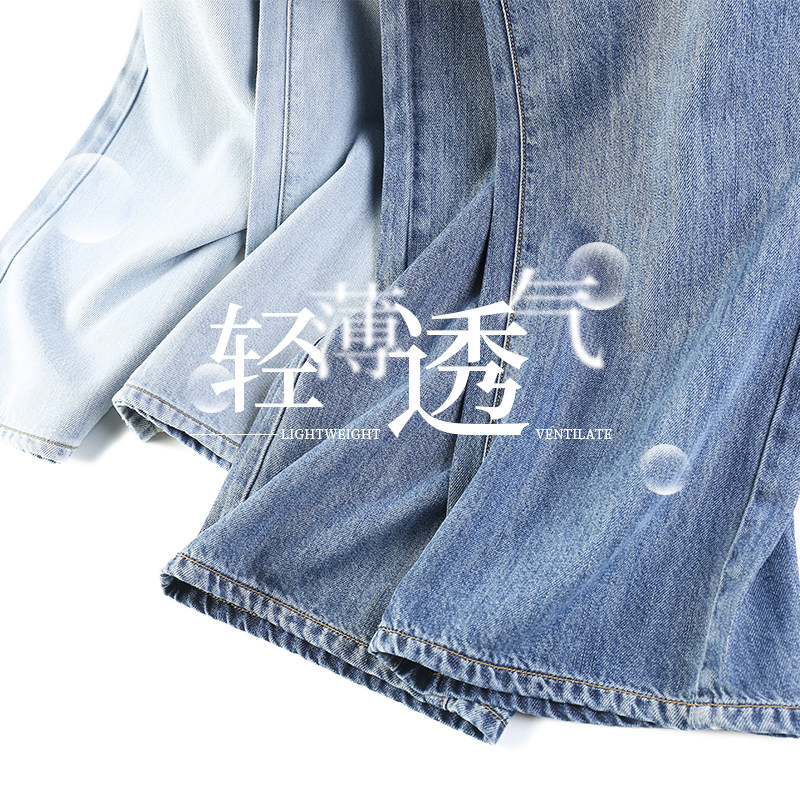 Тонкие джинсовые летние шелковые штаны, высокая талия, свободный прямой крой