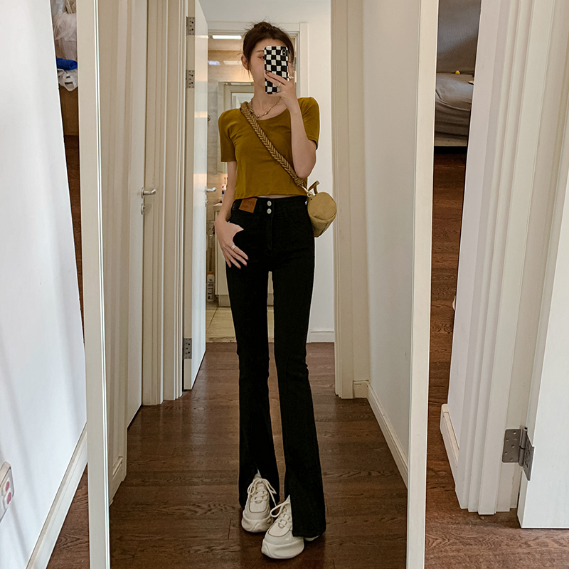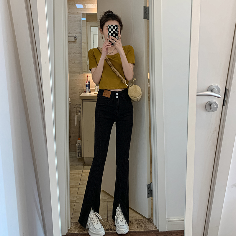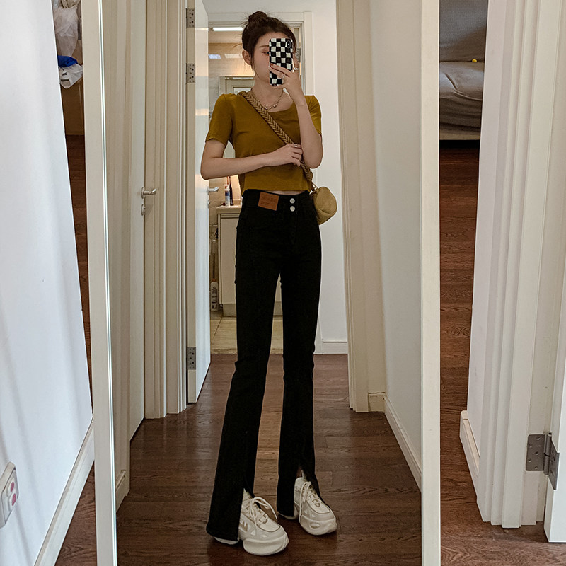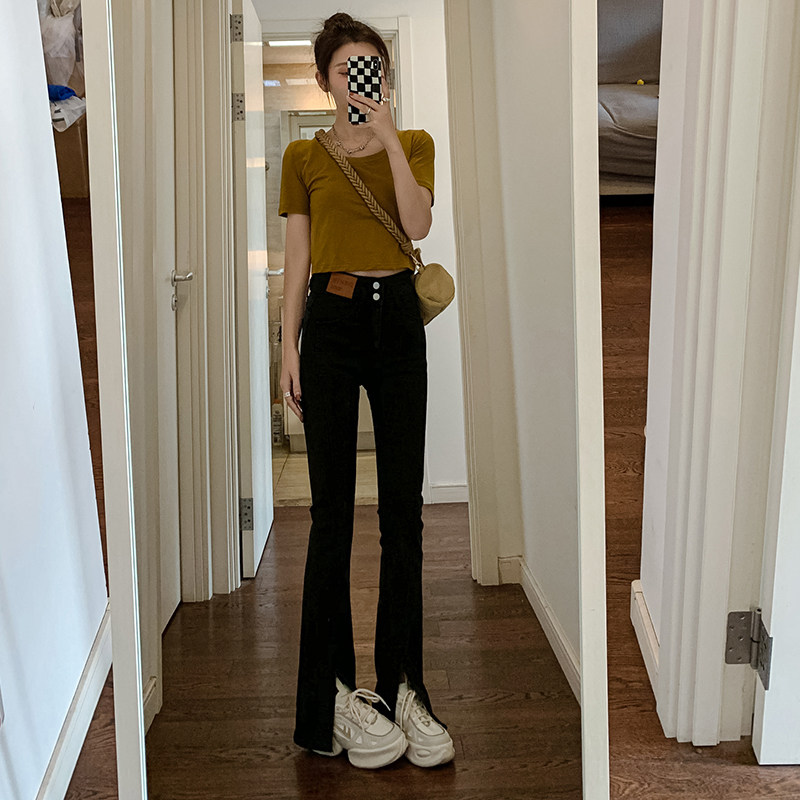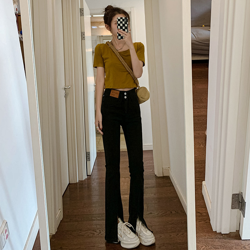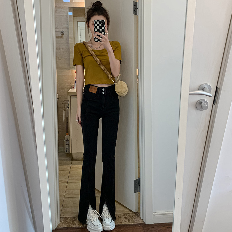 Летние черные штаны-клёш, сексуальные штаны, джинсовые джинсы, коллекция 2023, новая коллекция, подходит для подростков, высокая талия