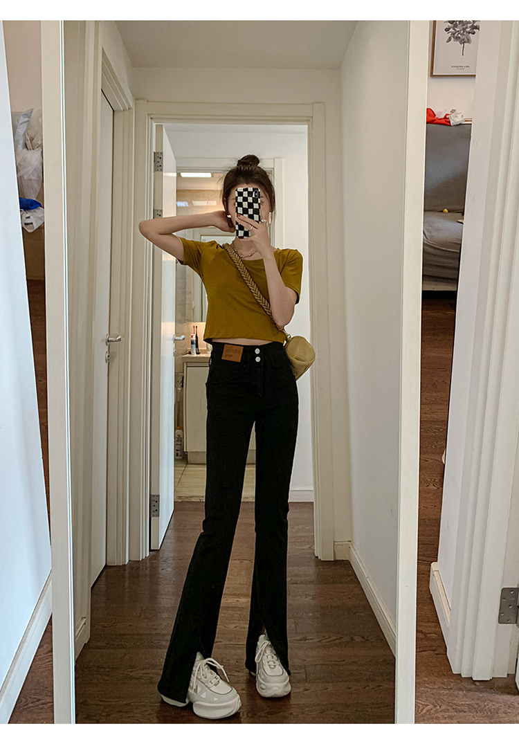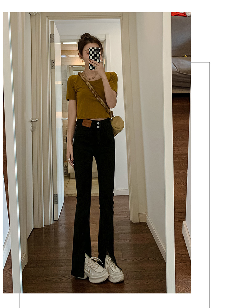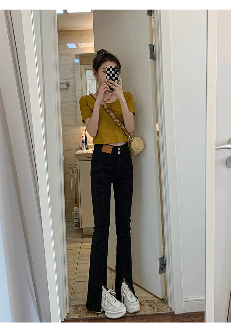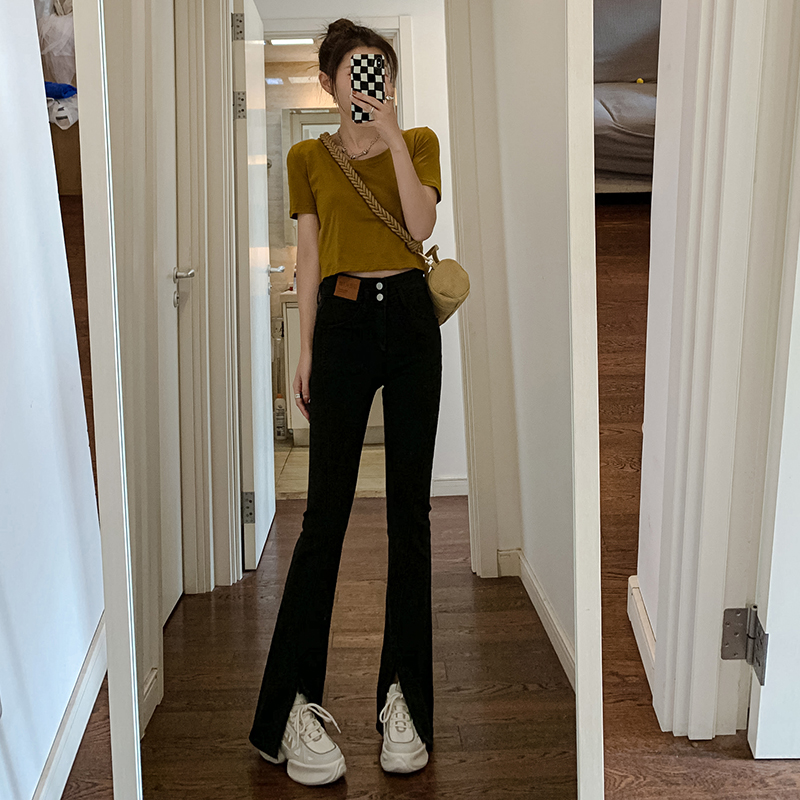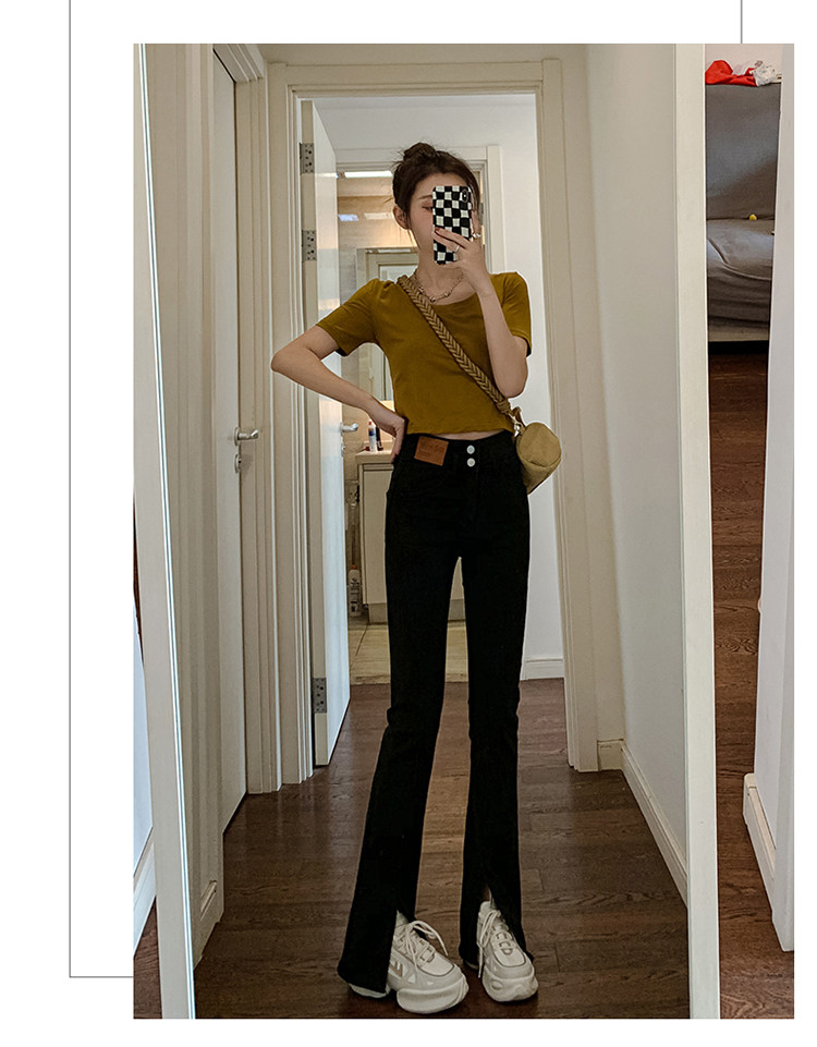 Летние черные штаны-клёш, сексуальные штаны, джинсовые джинсы, коллекция 2023, новая коллекция, подходит для подростков, высокая талия