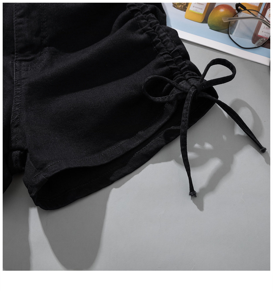 Штаны, летние джинсы, на шнурках, высокая талия, в корейском стиле, А-силуэт