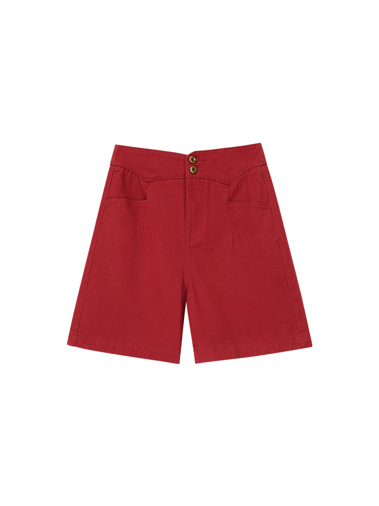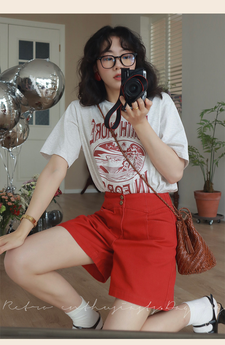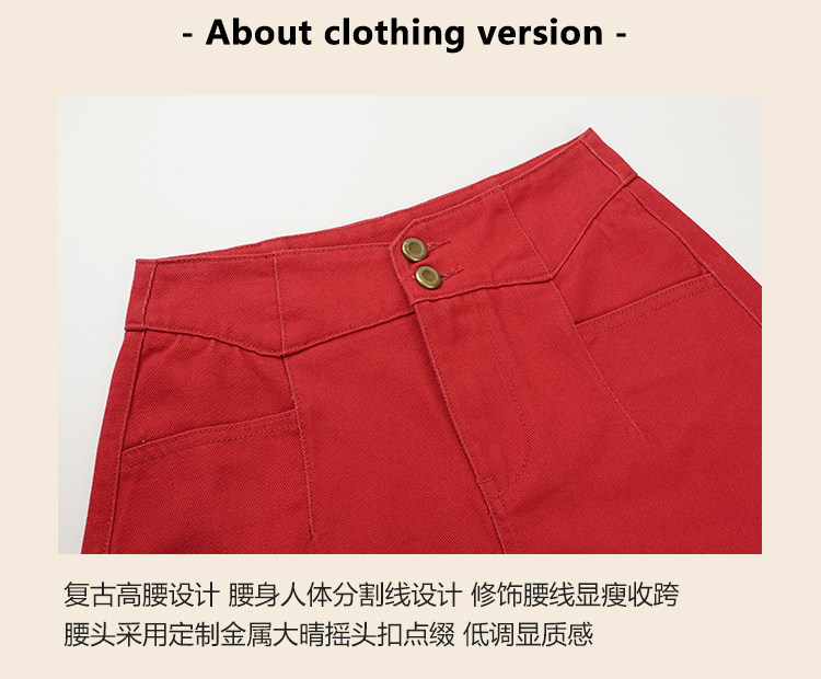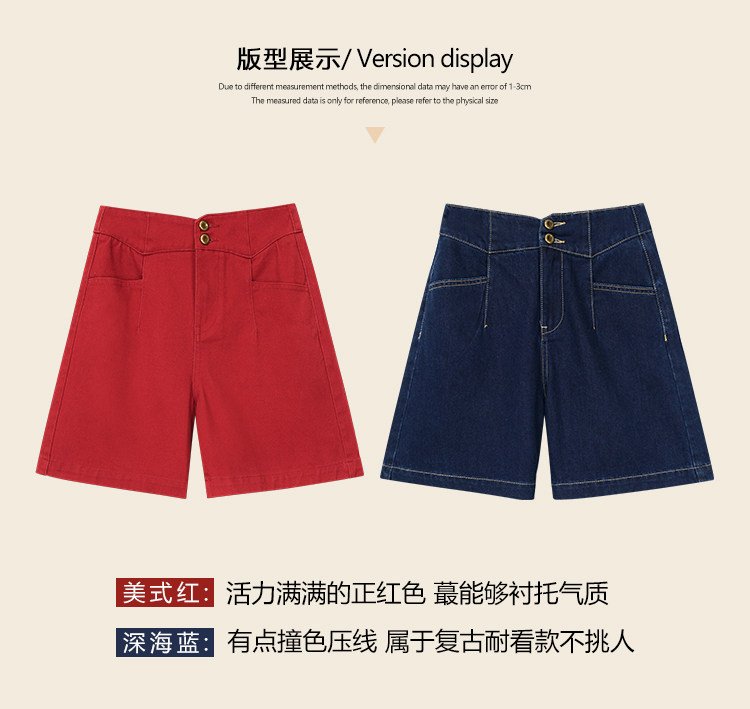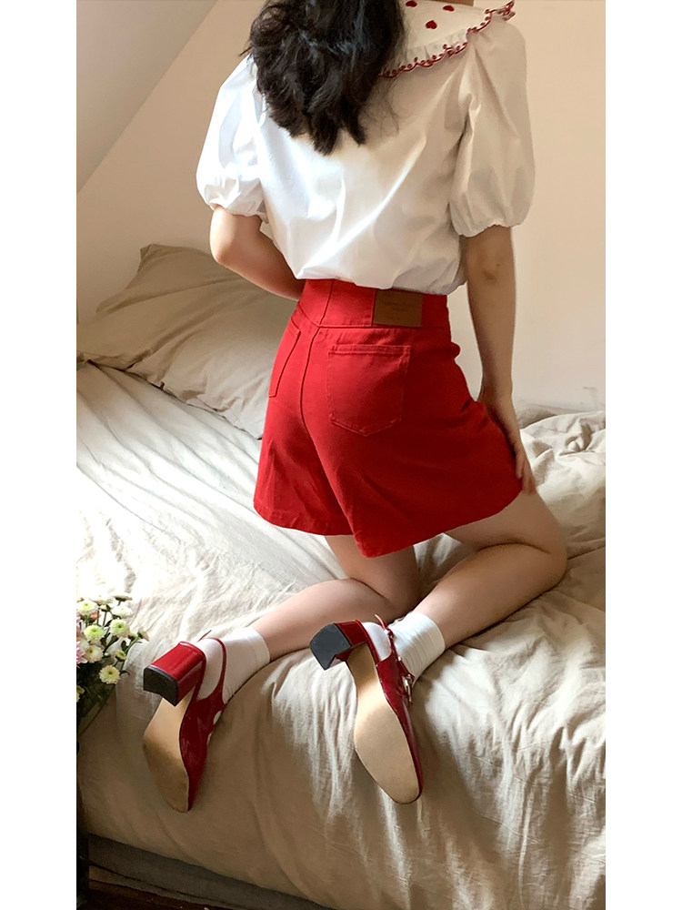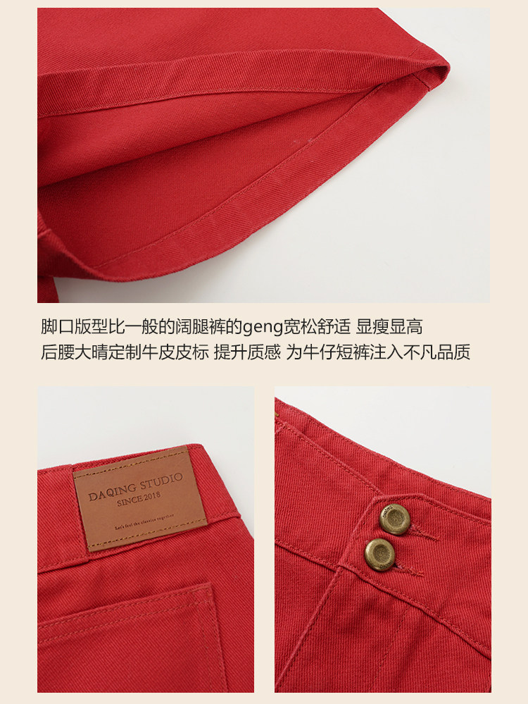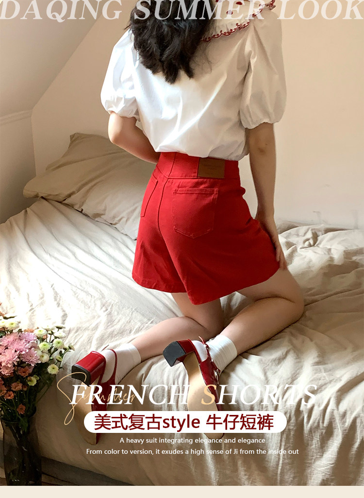 Ретро красные шорты, летние штаны, джинсовая юбка, высокая талия, свободный прямой крой