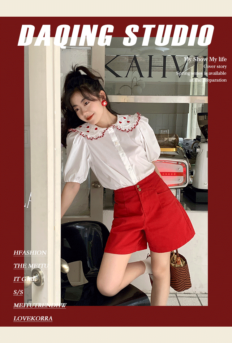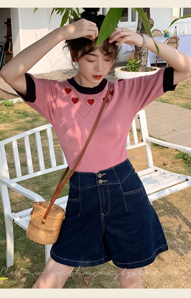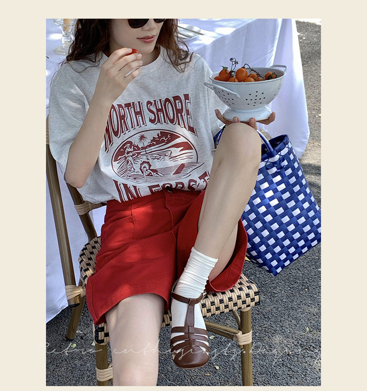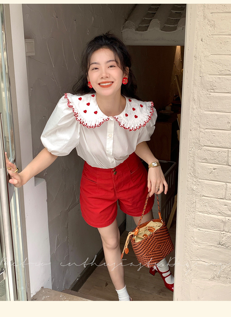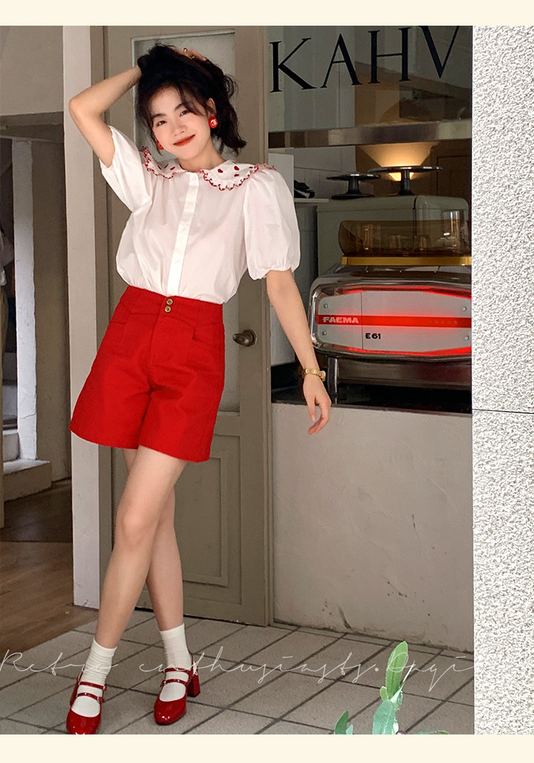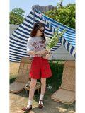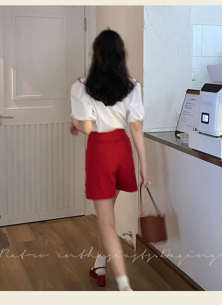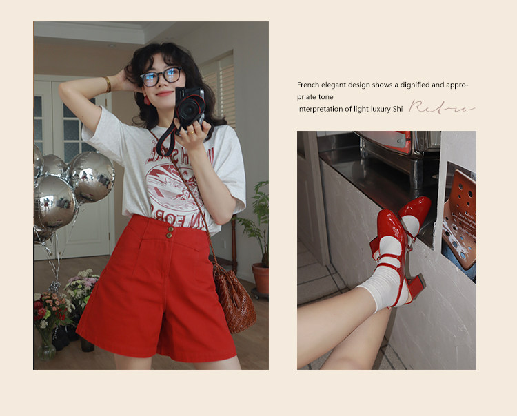Ретро красные шорты, летние штаны, джинсовая юбка, высокая талия, свободный прямой крой